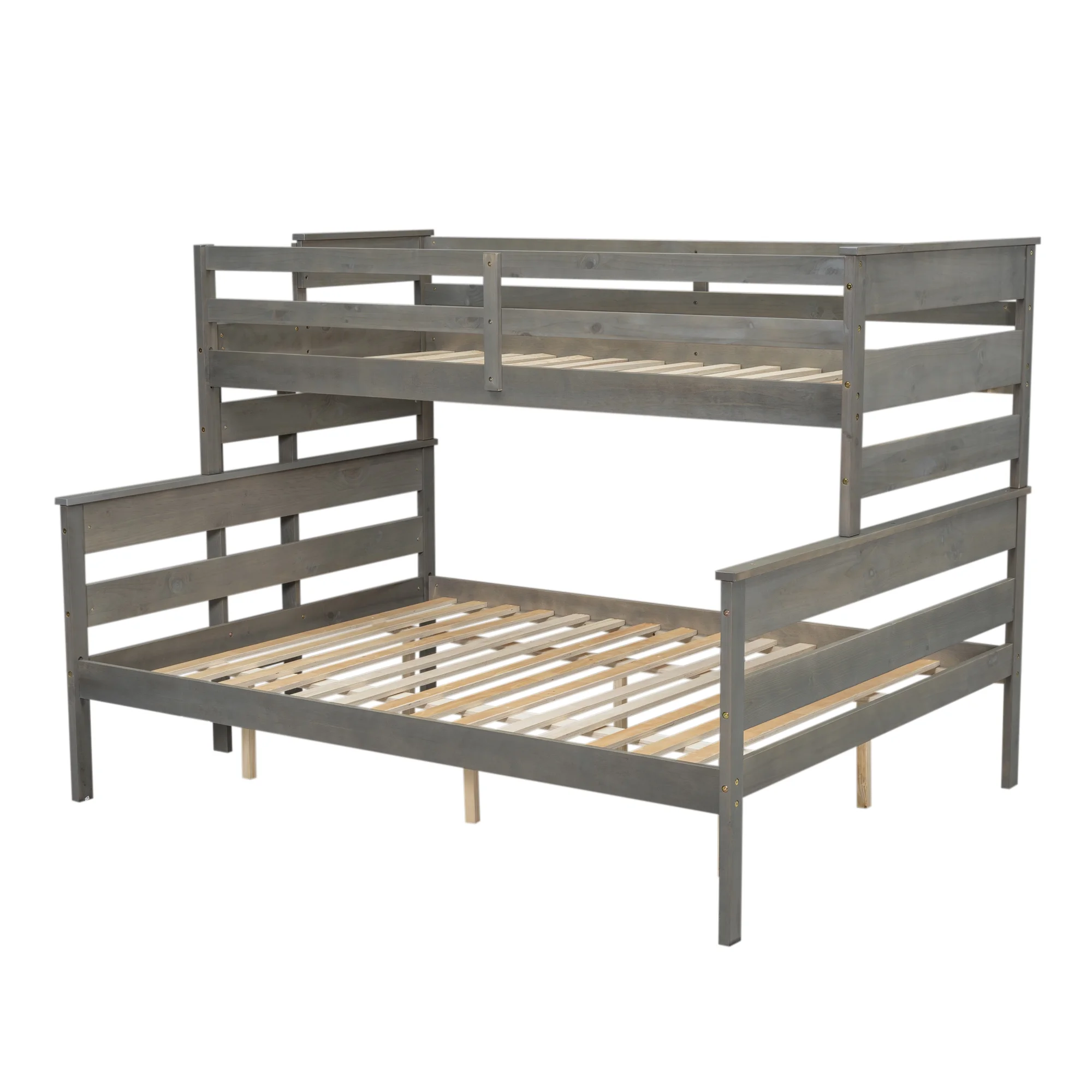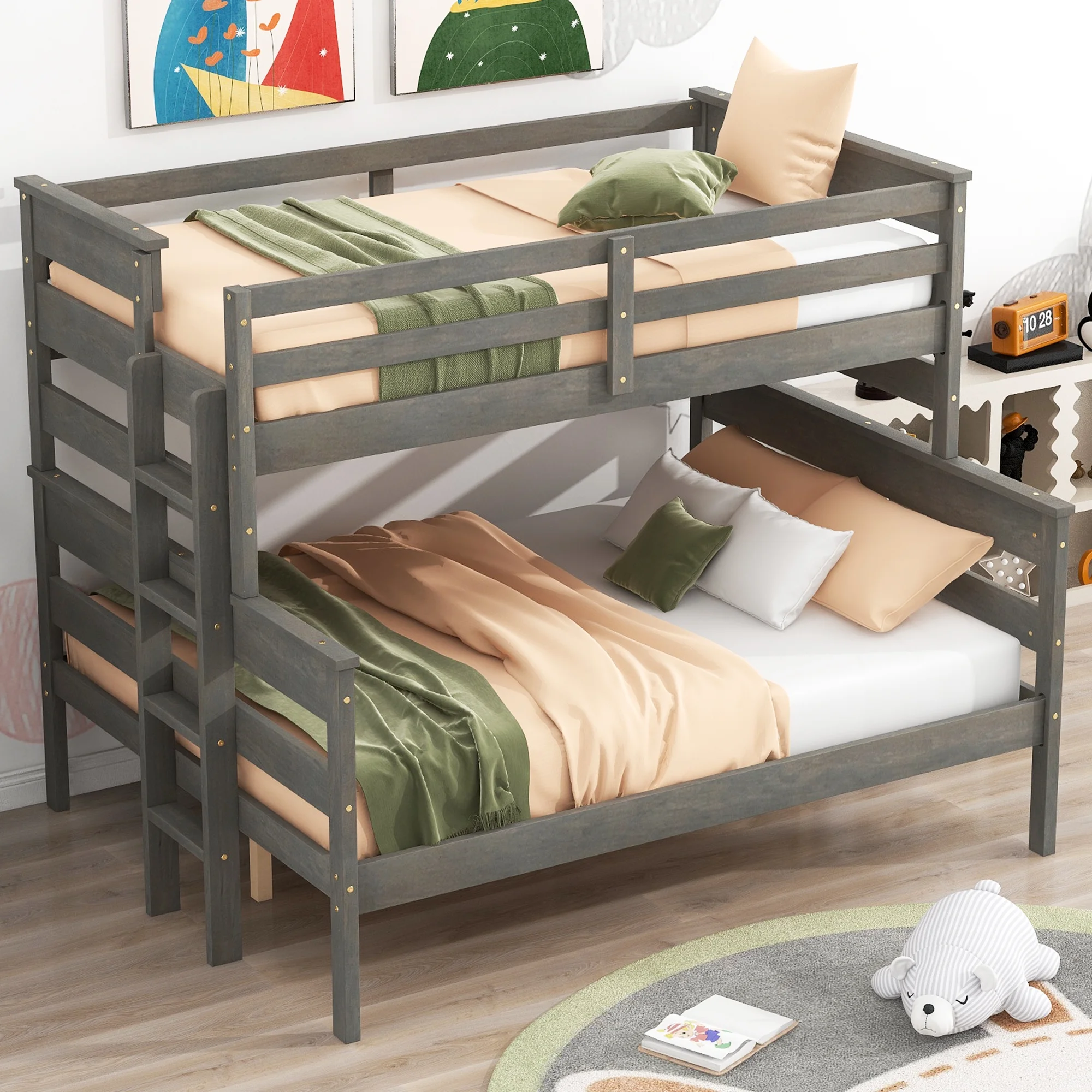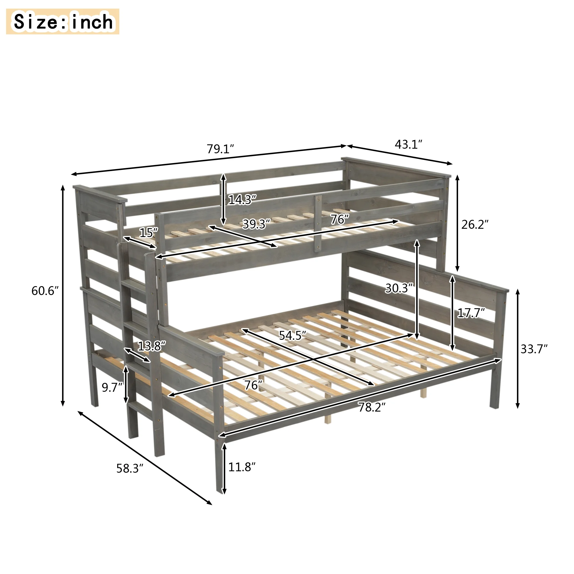 EUROCO Twin over Full Bunk Bed, Convertible 2 Beds for Kids Teens Adults with Ladder, Gray