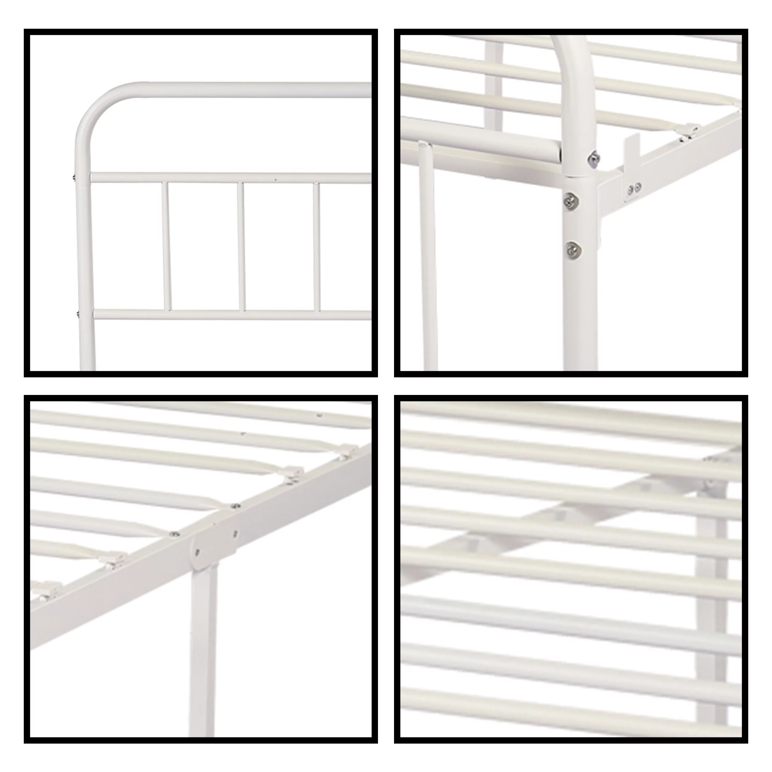 Twin-Over-Full Metal Bunk Bed, Easy Assembly, Enhanced Upper-Level Guardrail, White, Heavy Duty