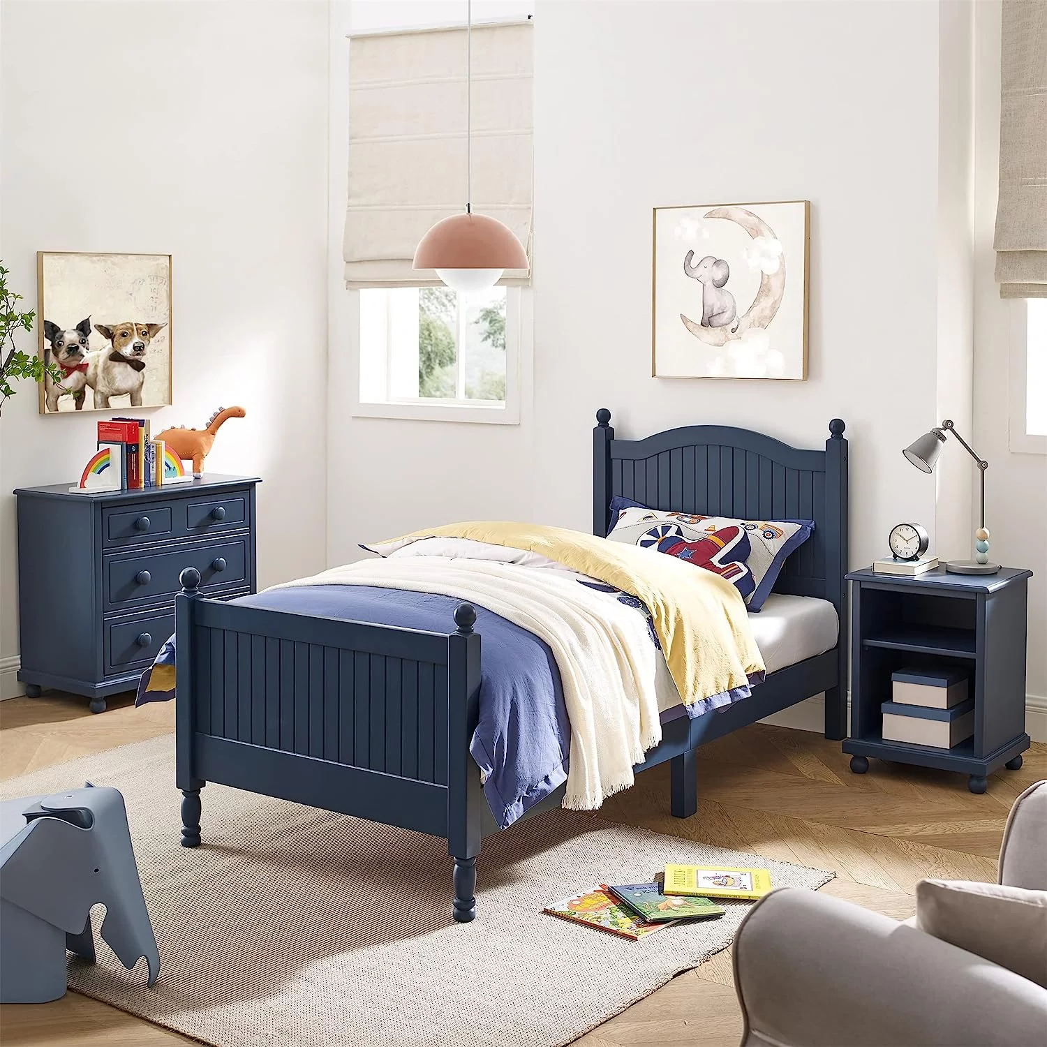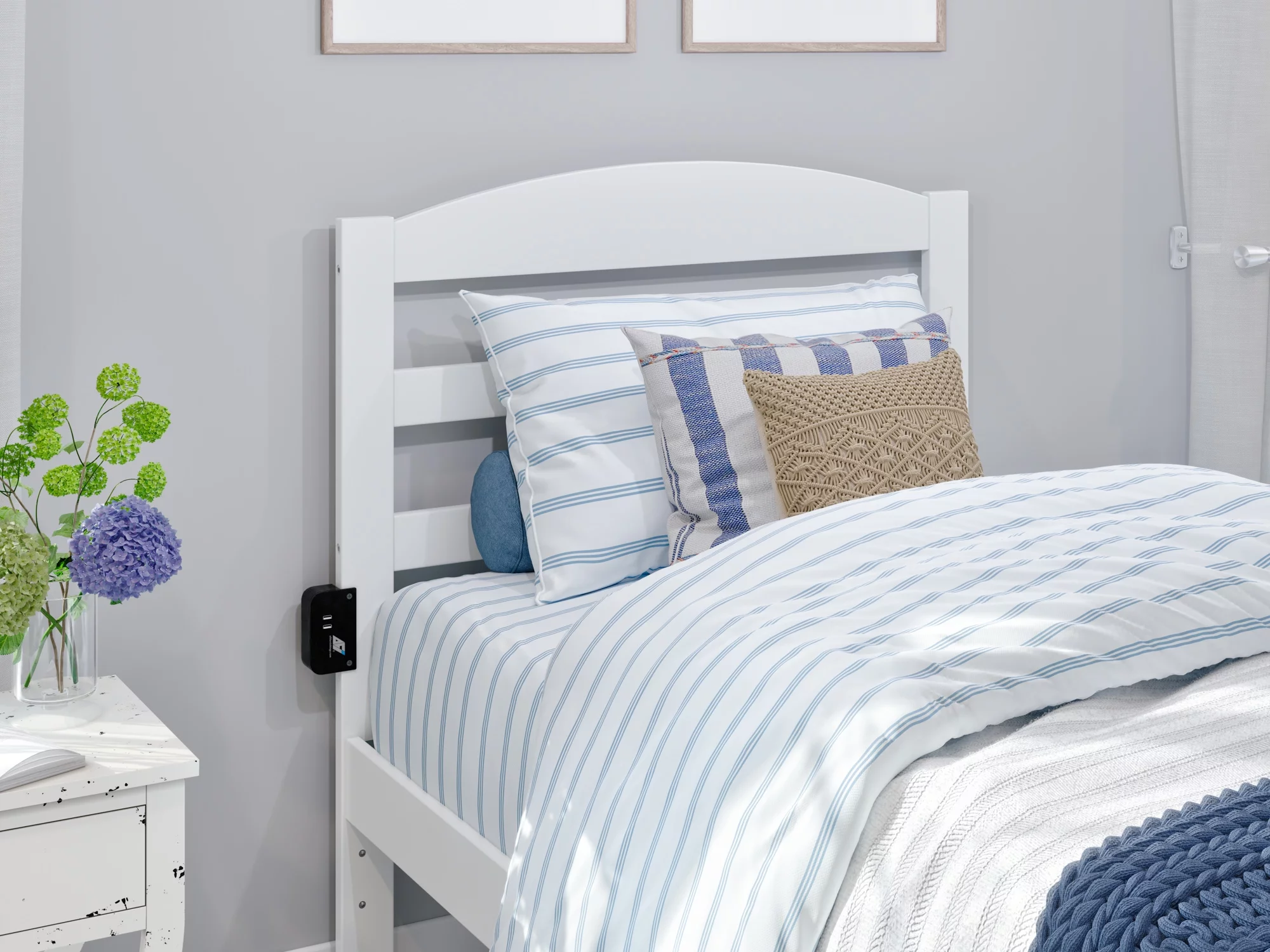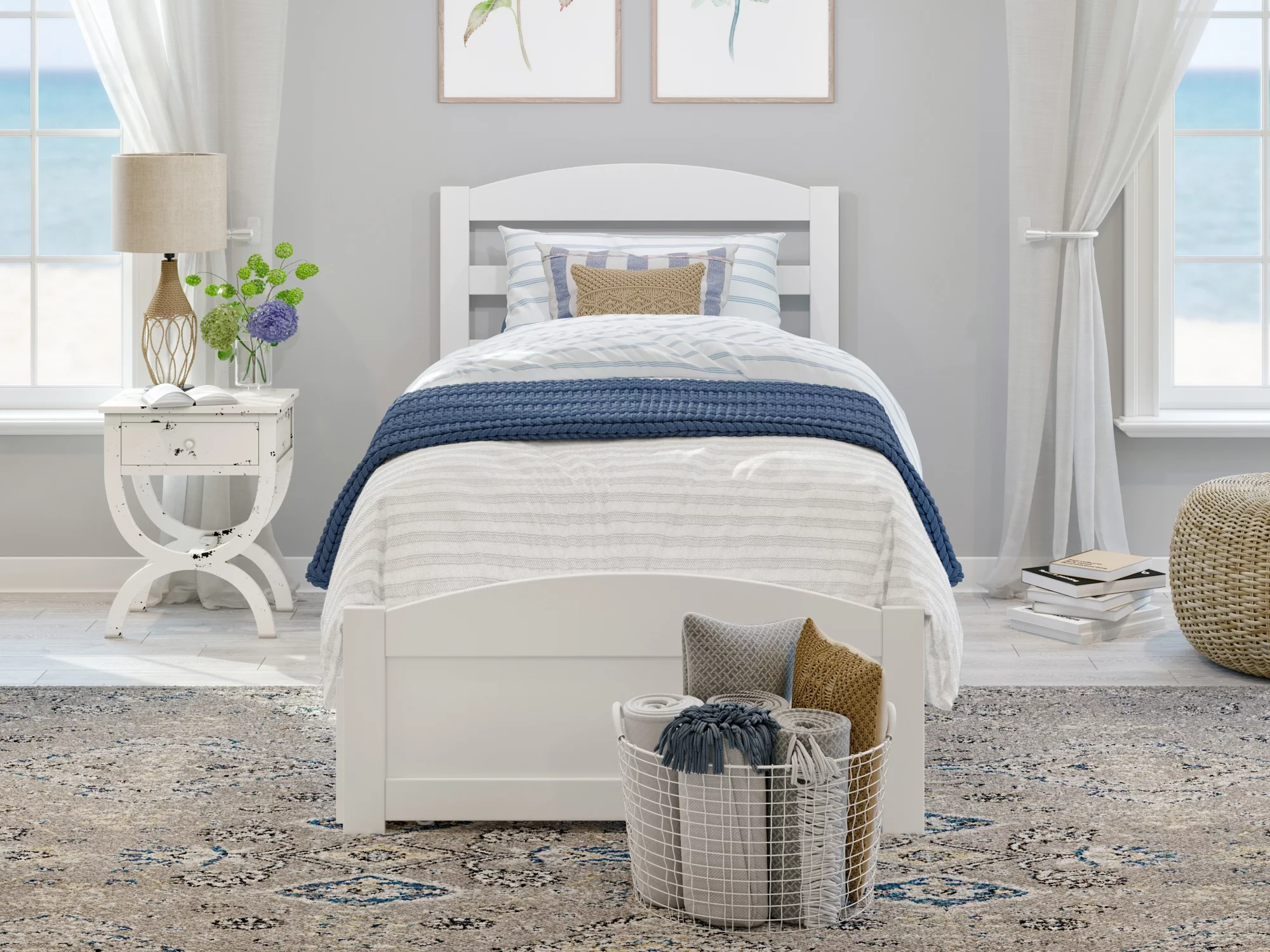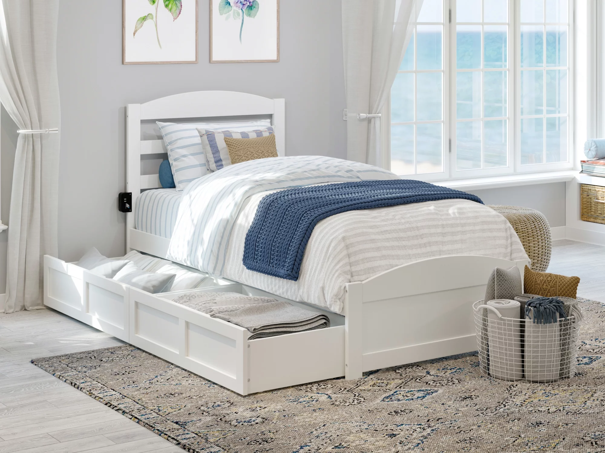 AFI NoHo Twin Wood Platform Bed with Headboard Footboard & 2 Storage Drawers, White