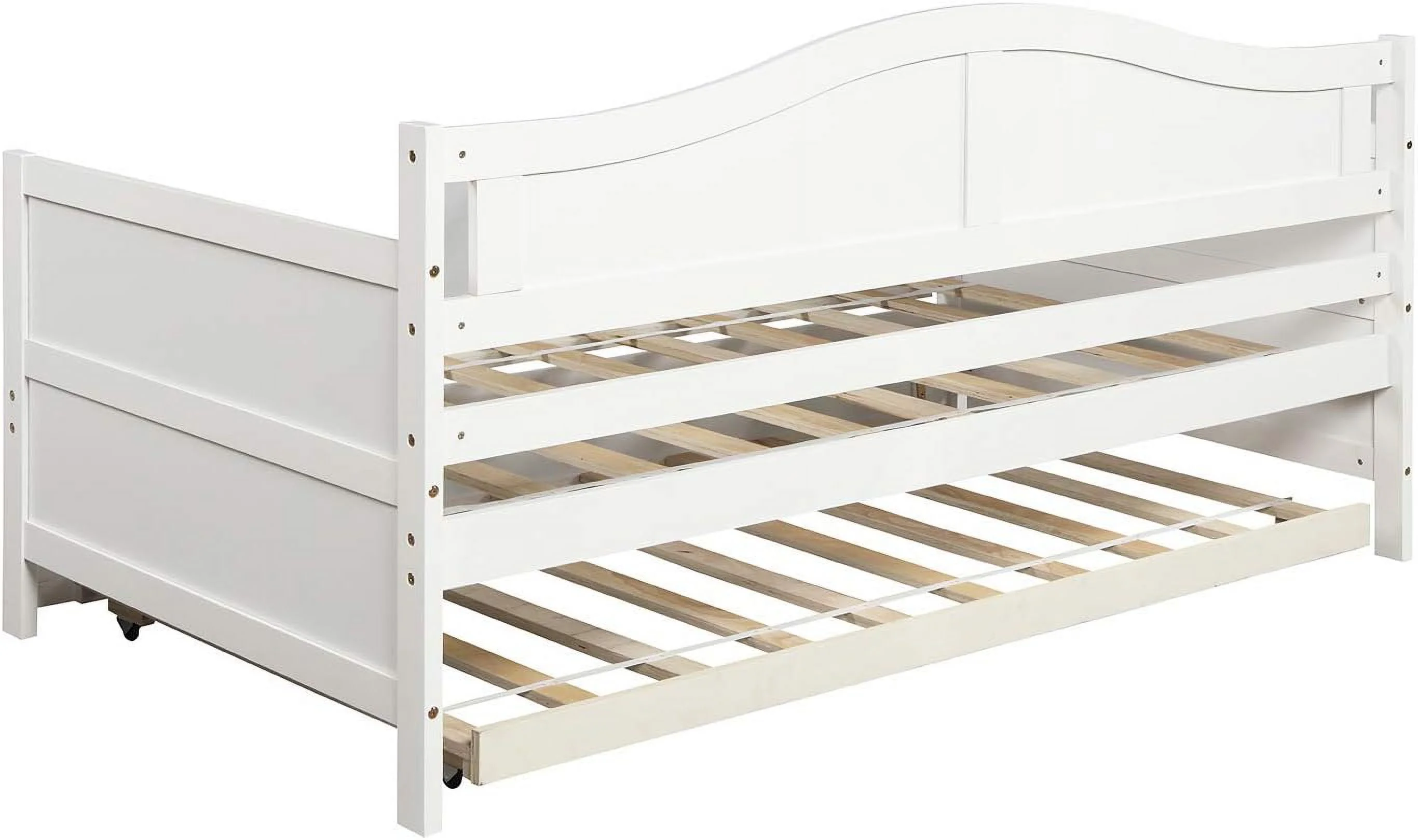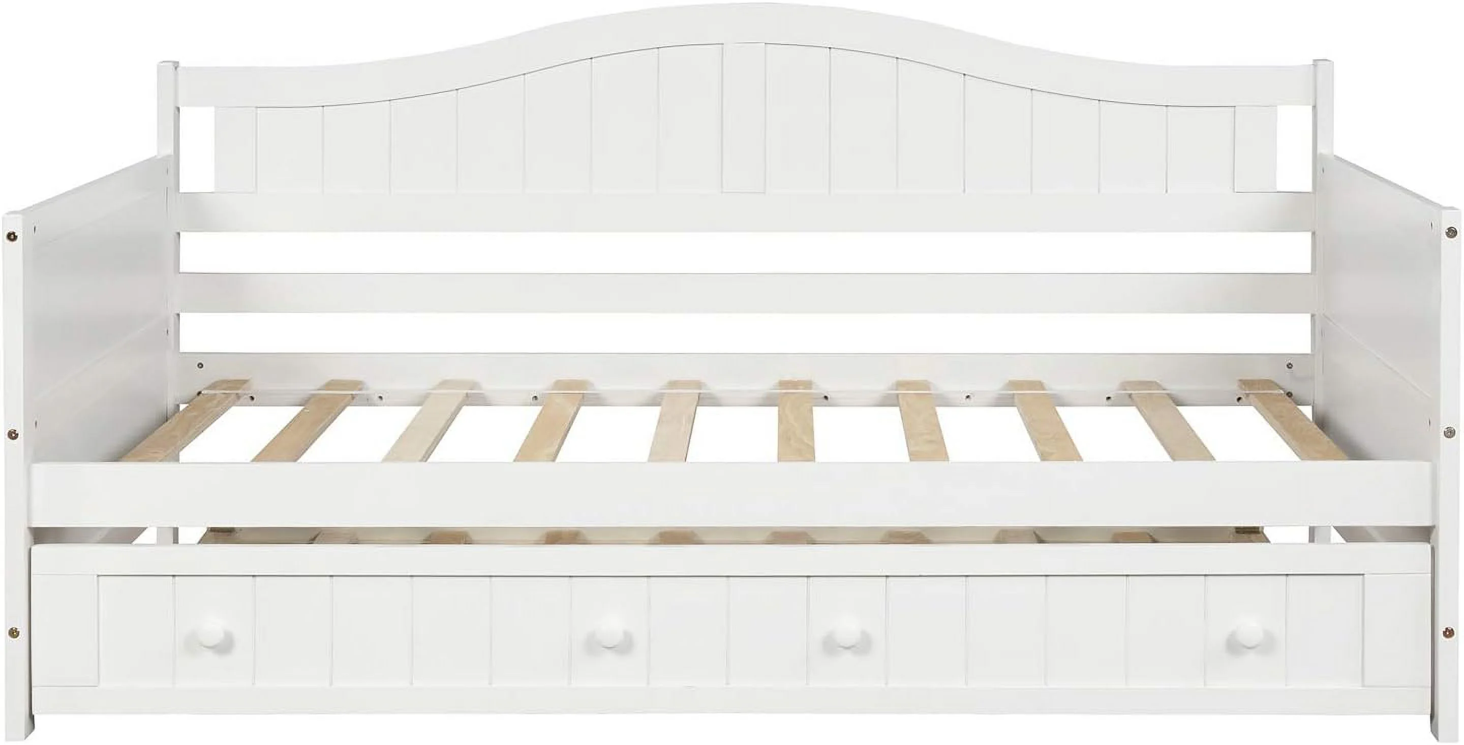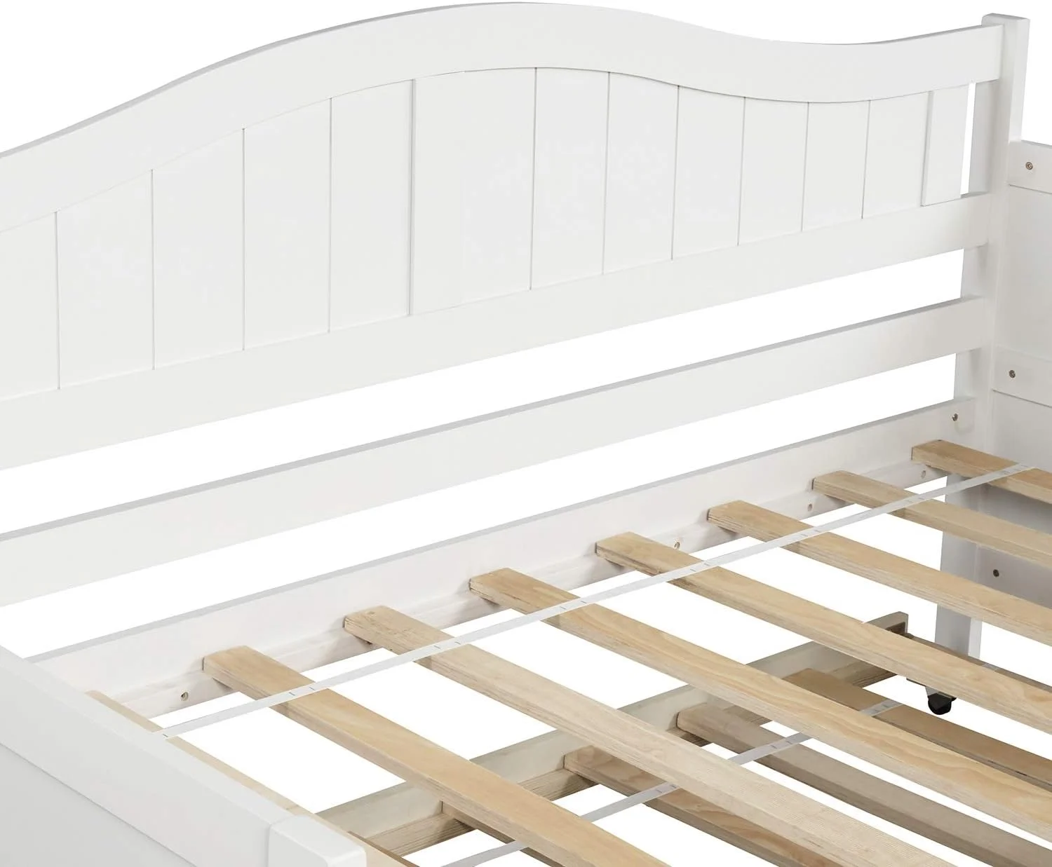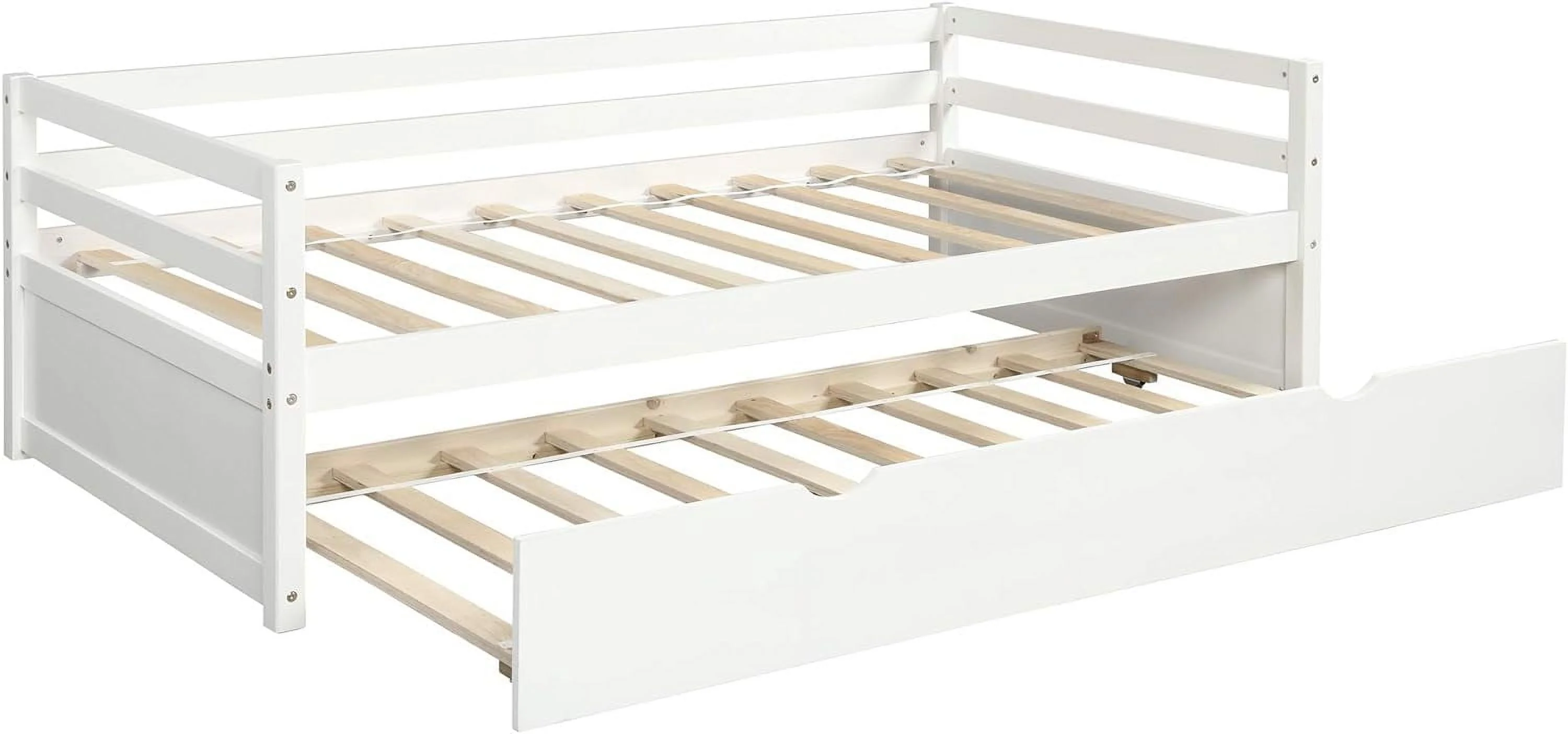 Daybed With Trundle, Woooden Bed Frame With Trundle, Sofa Bed Bed For Bedroom Living Room, No Box Spring Needed – White