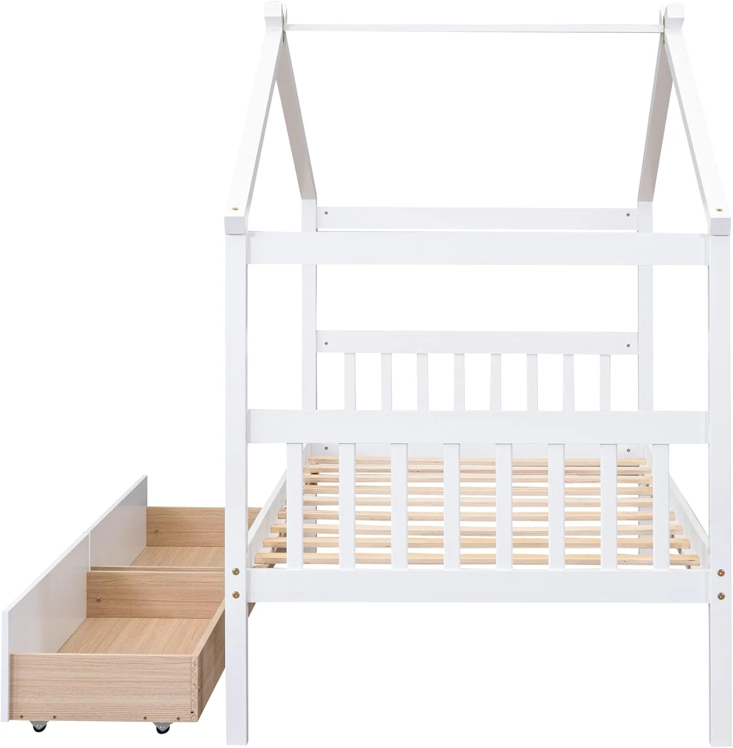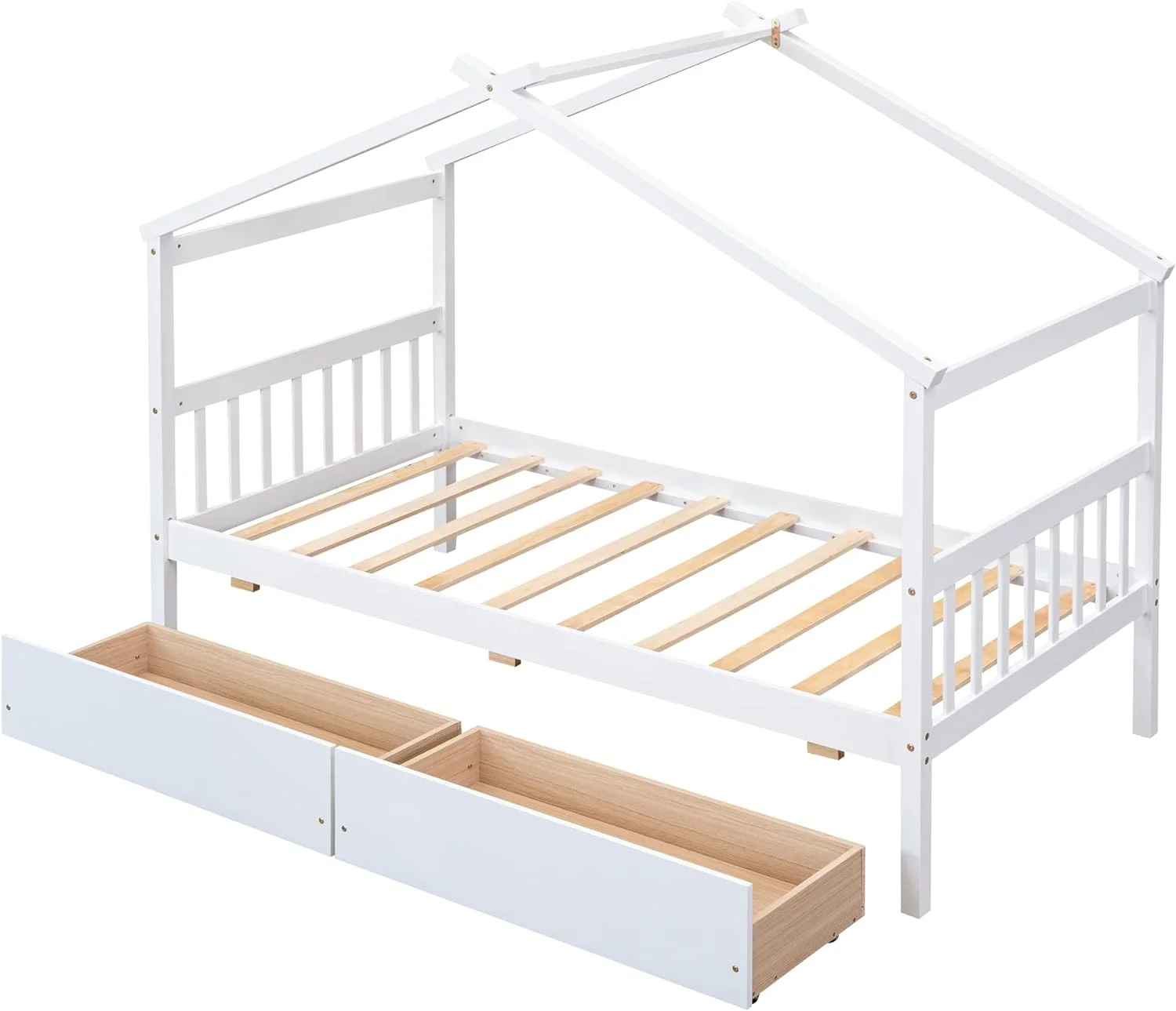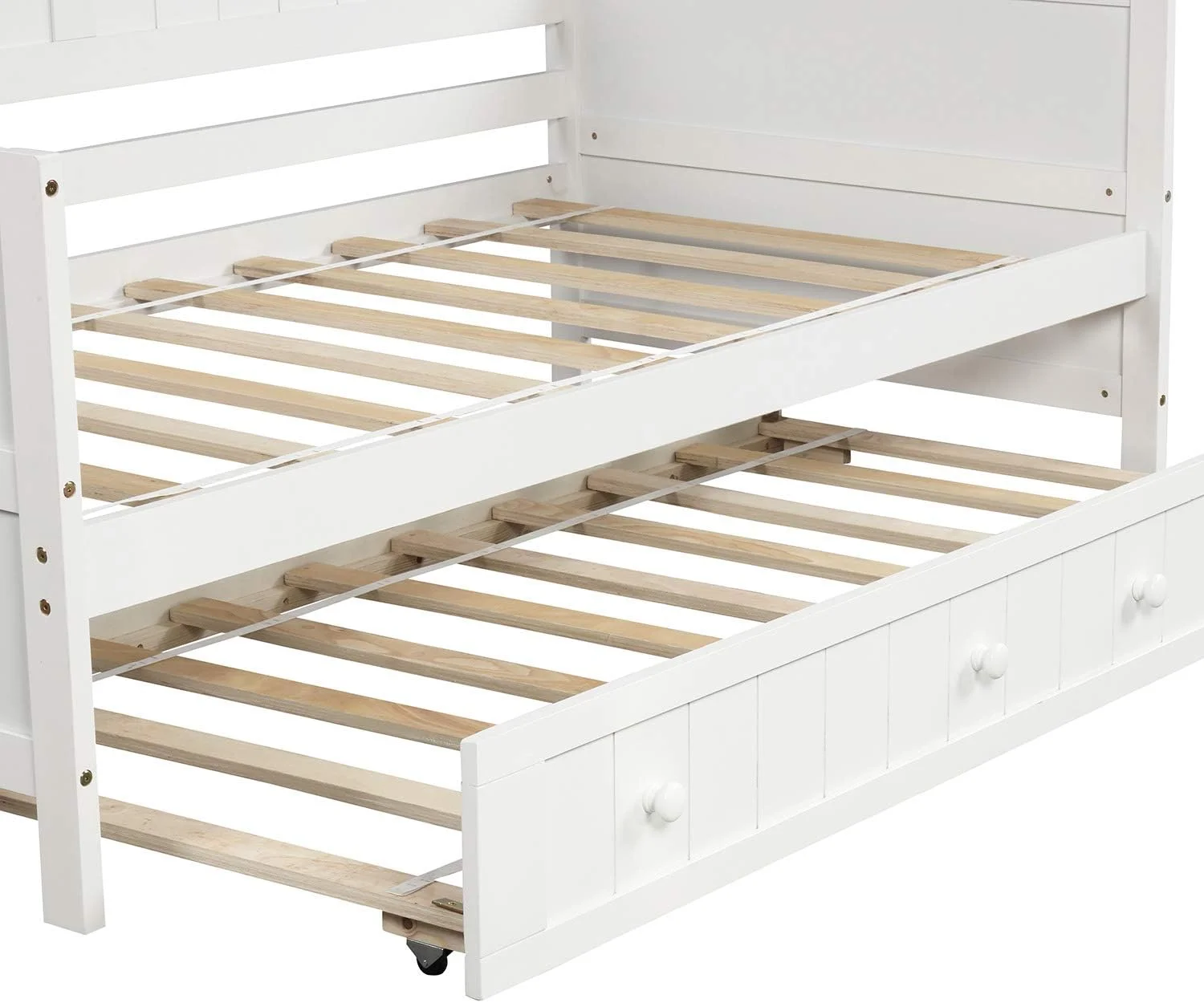 Daybed With Trundle, Woooden Bed Frame With Trundle, Sofa Bed Bed For Bedroom Living Room, No Box Spring Needed – White