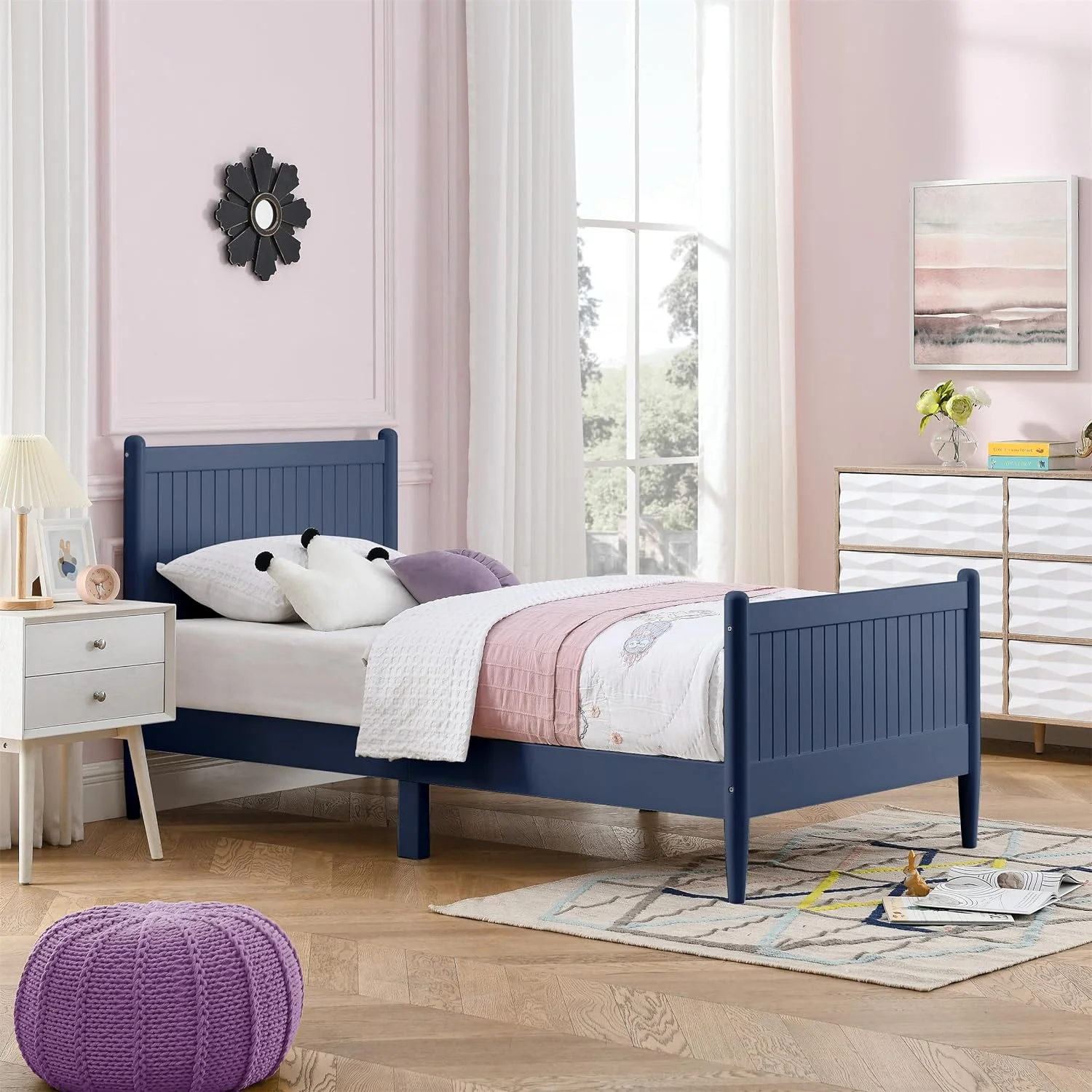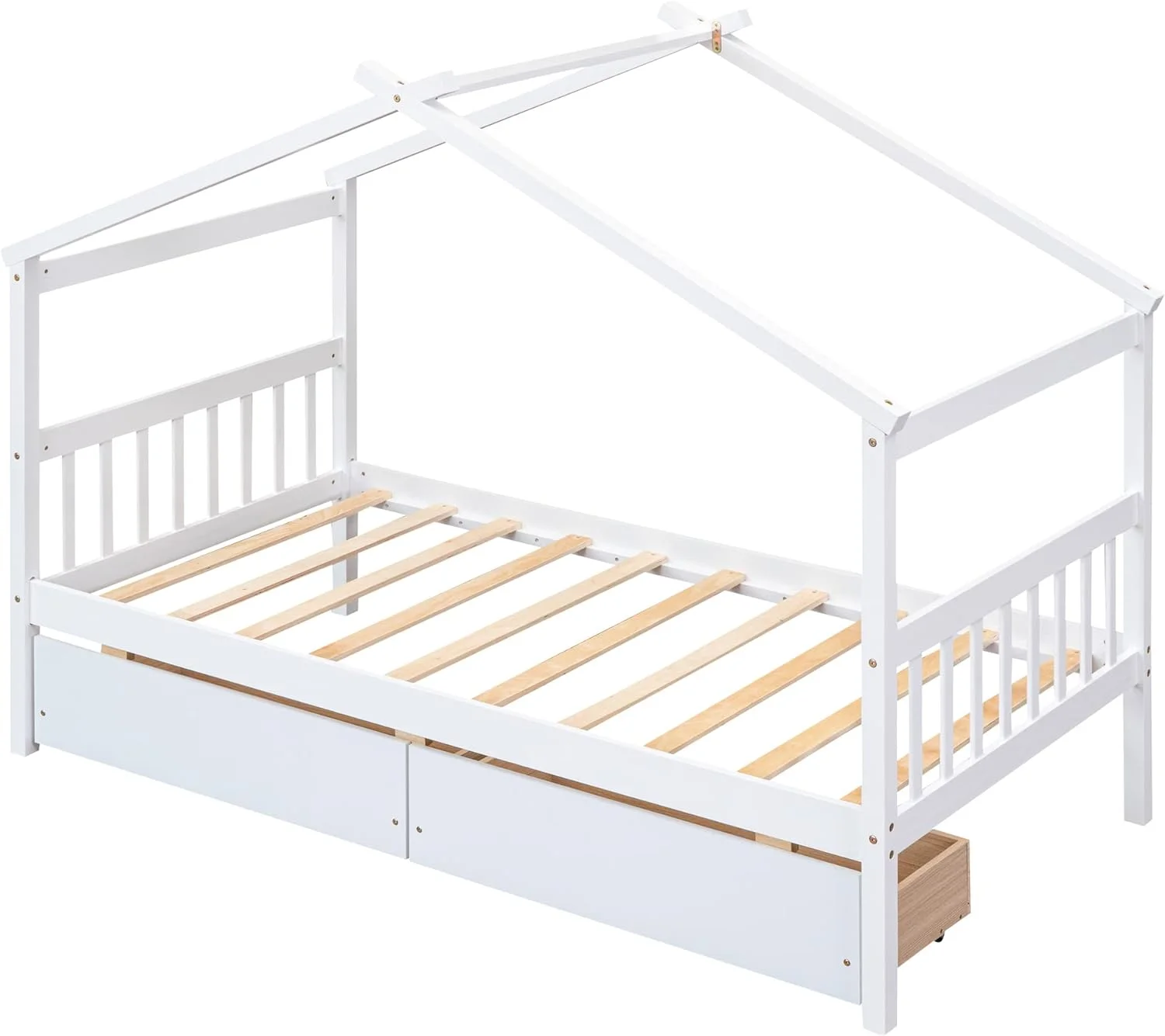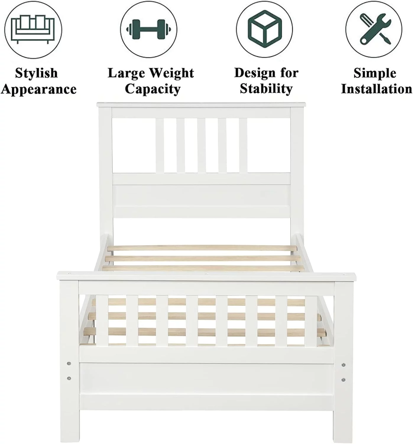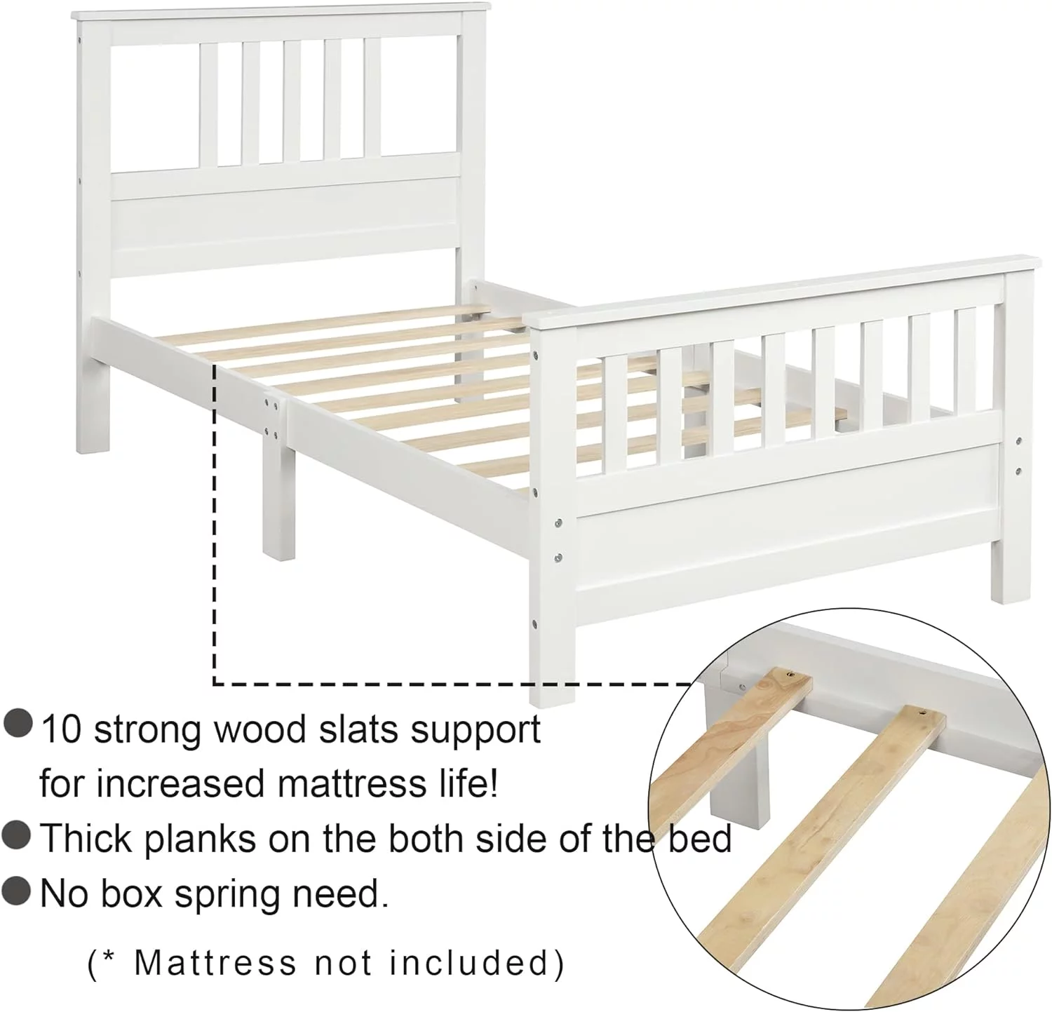 Daybed With Trundle, Woooden Bed Frame With Trundle, Sofa Bed Bed For Bedroom Living Room, No Box Spring Needed – White
