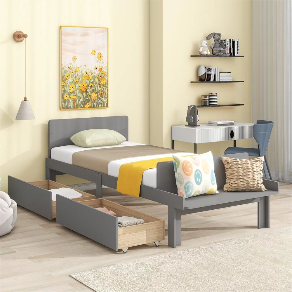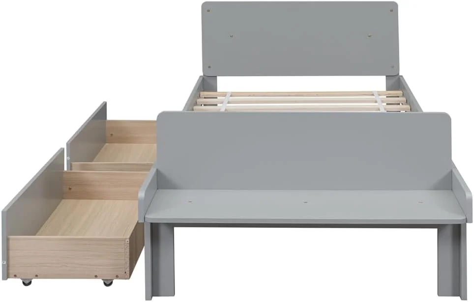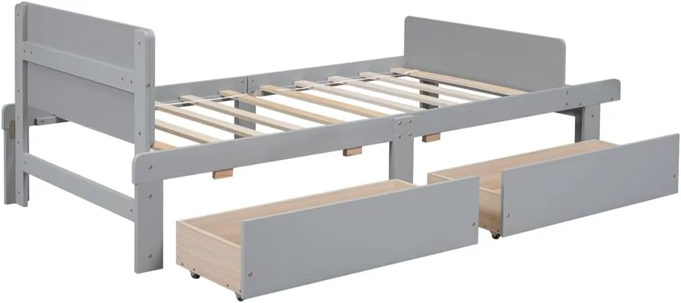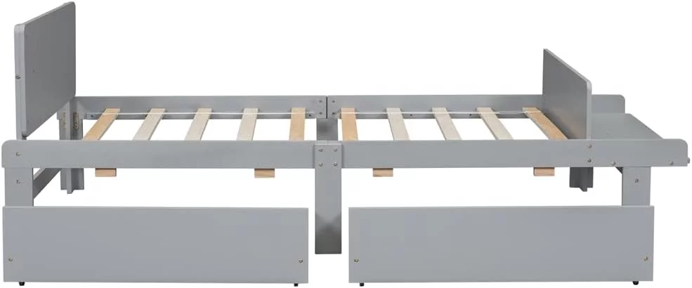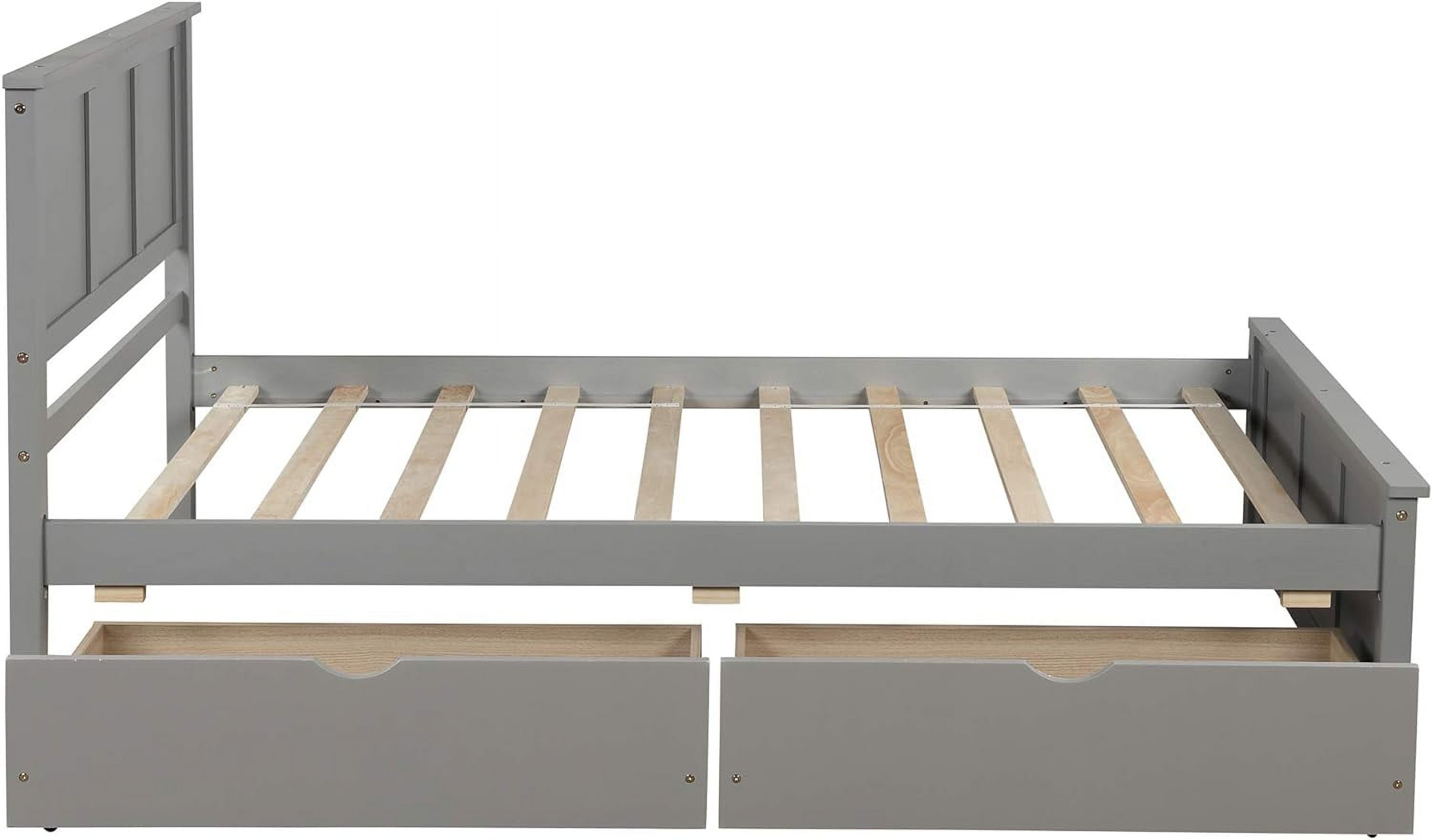 Size Platform Bed With Storage Drawers, Wooden Bed Frame With Headboard And Footboard, No Box Spring Need, Grey