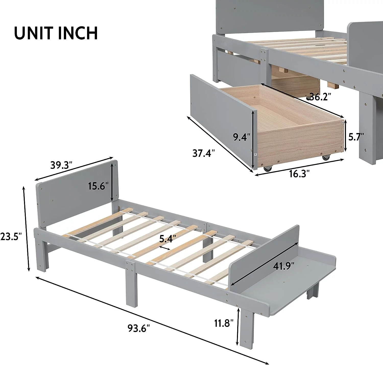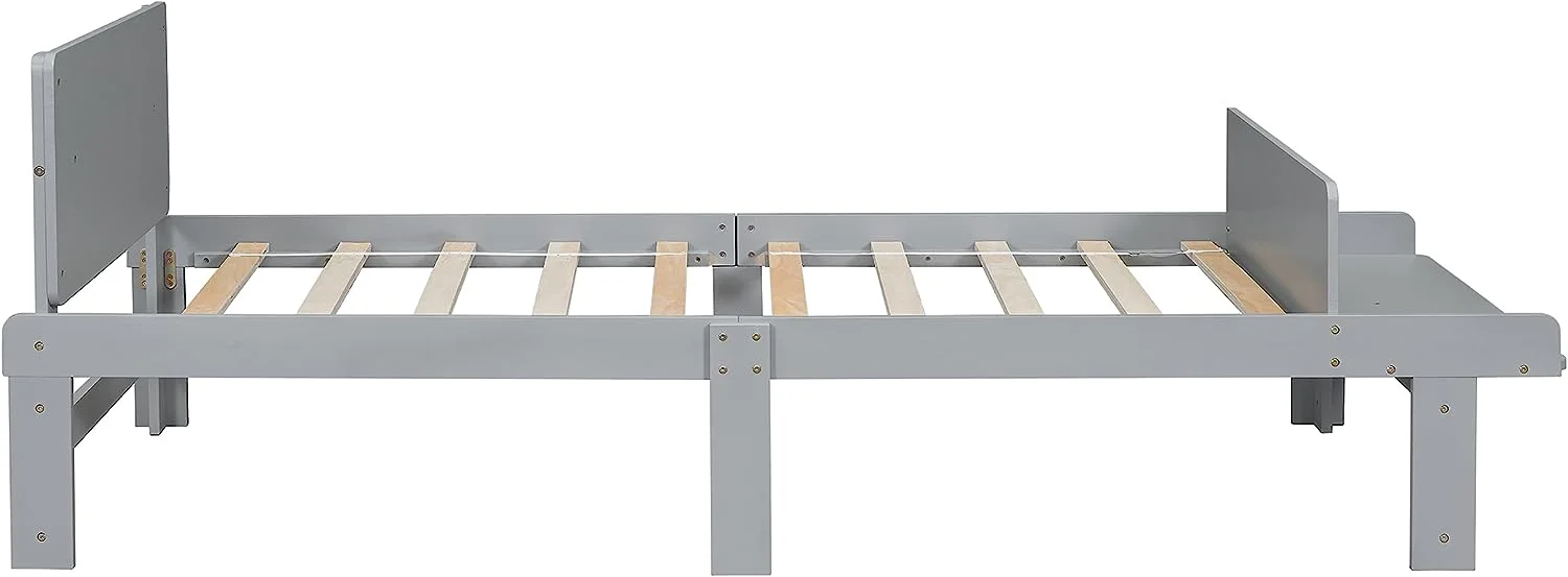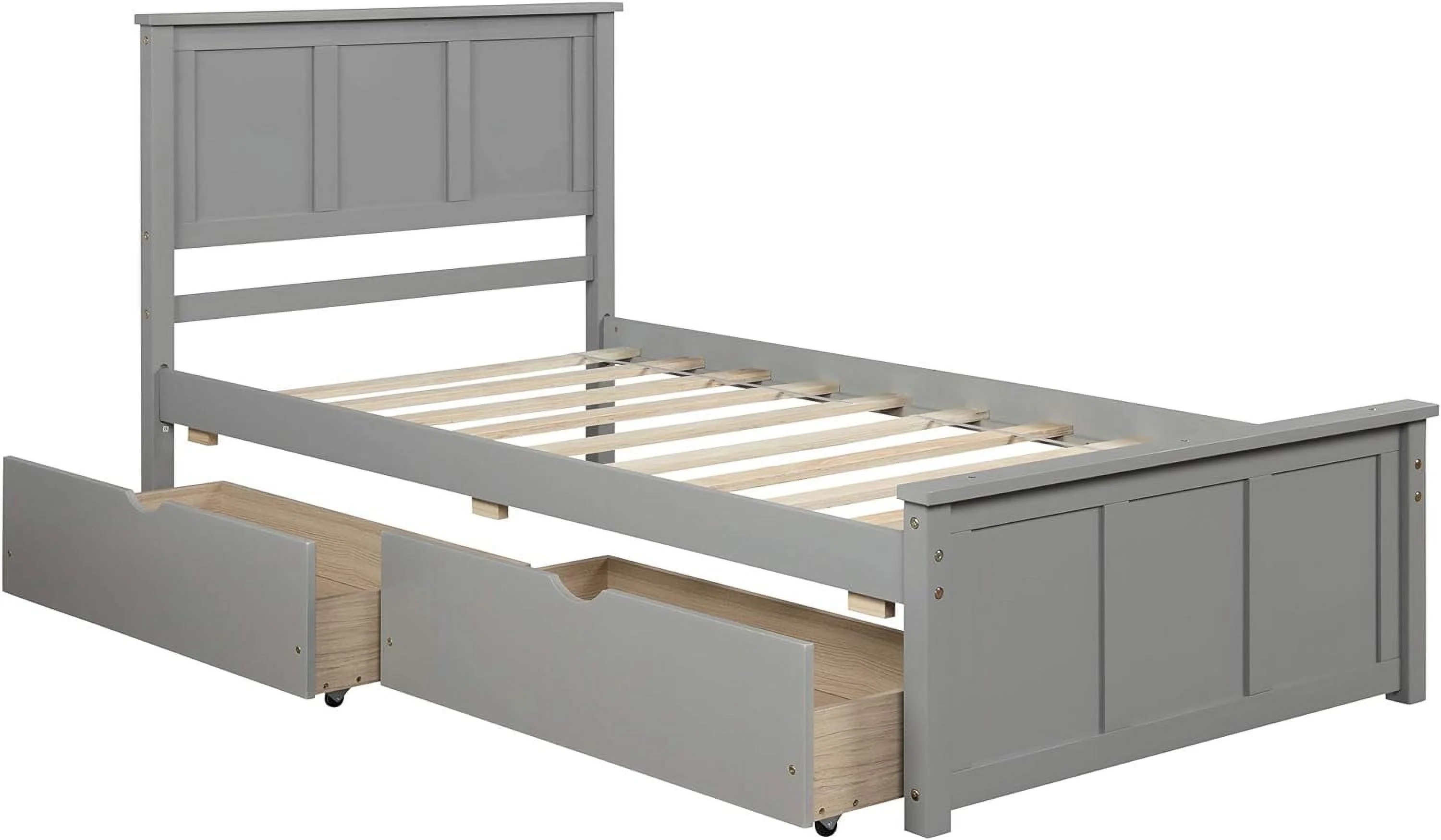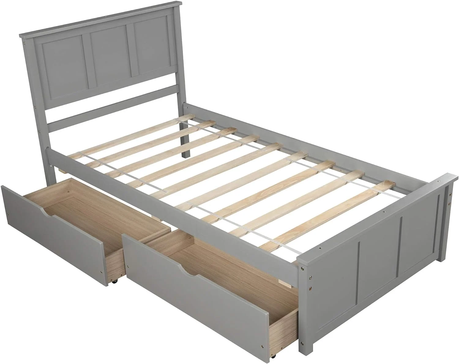 Size Platform Bed With Storage Drawers, Wooden Bed Frame With Headboard And Footboard, No Box Spring Need, Grey