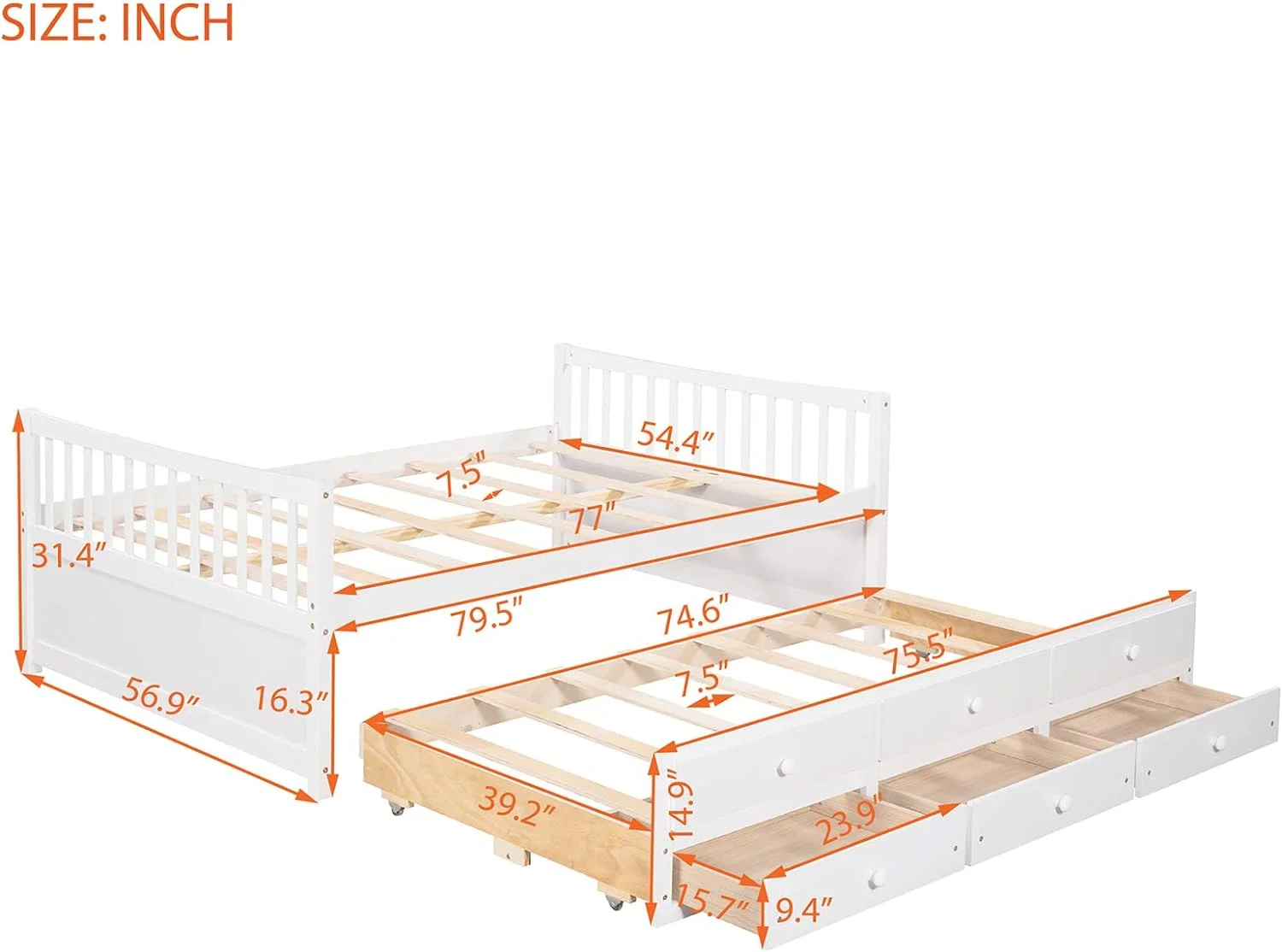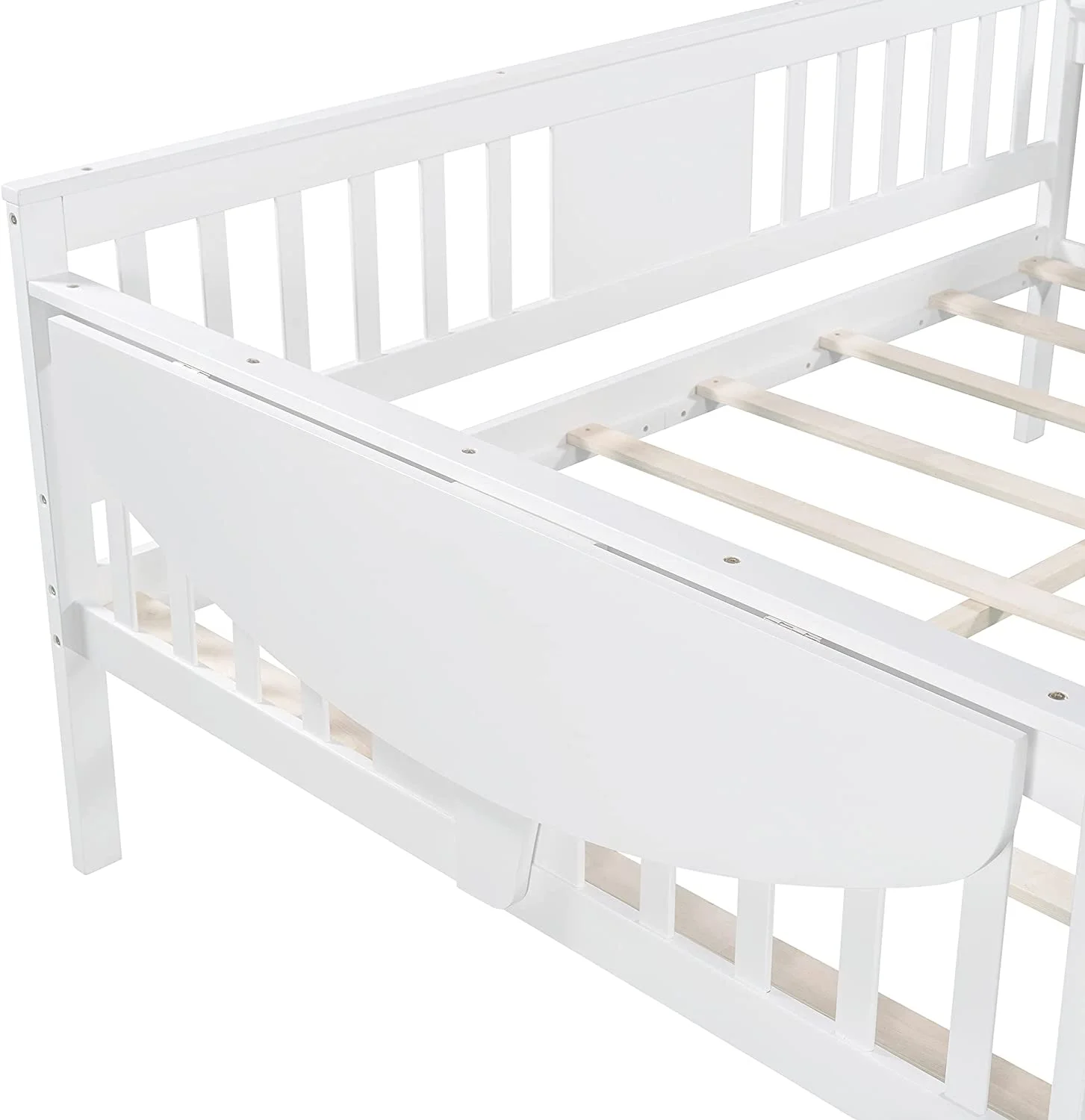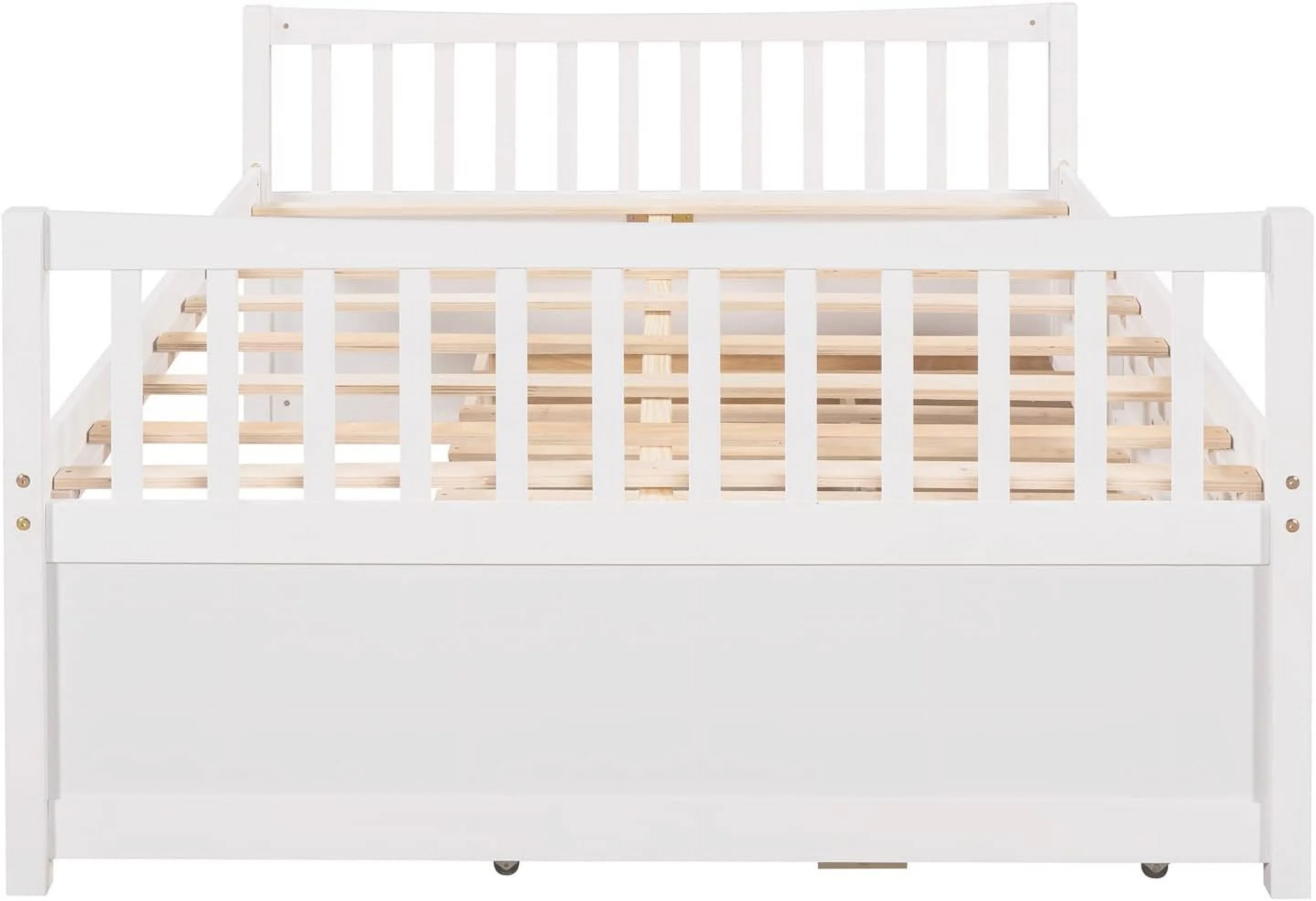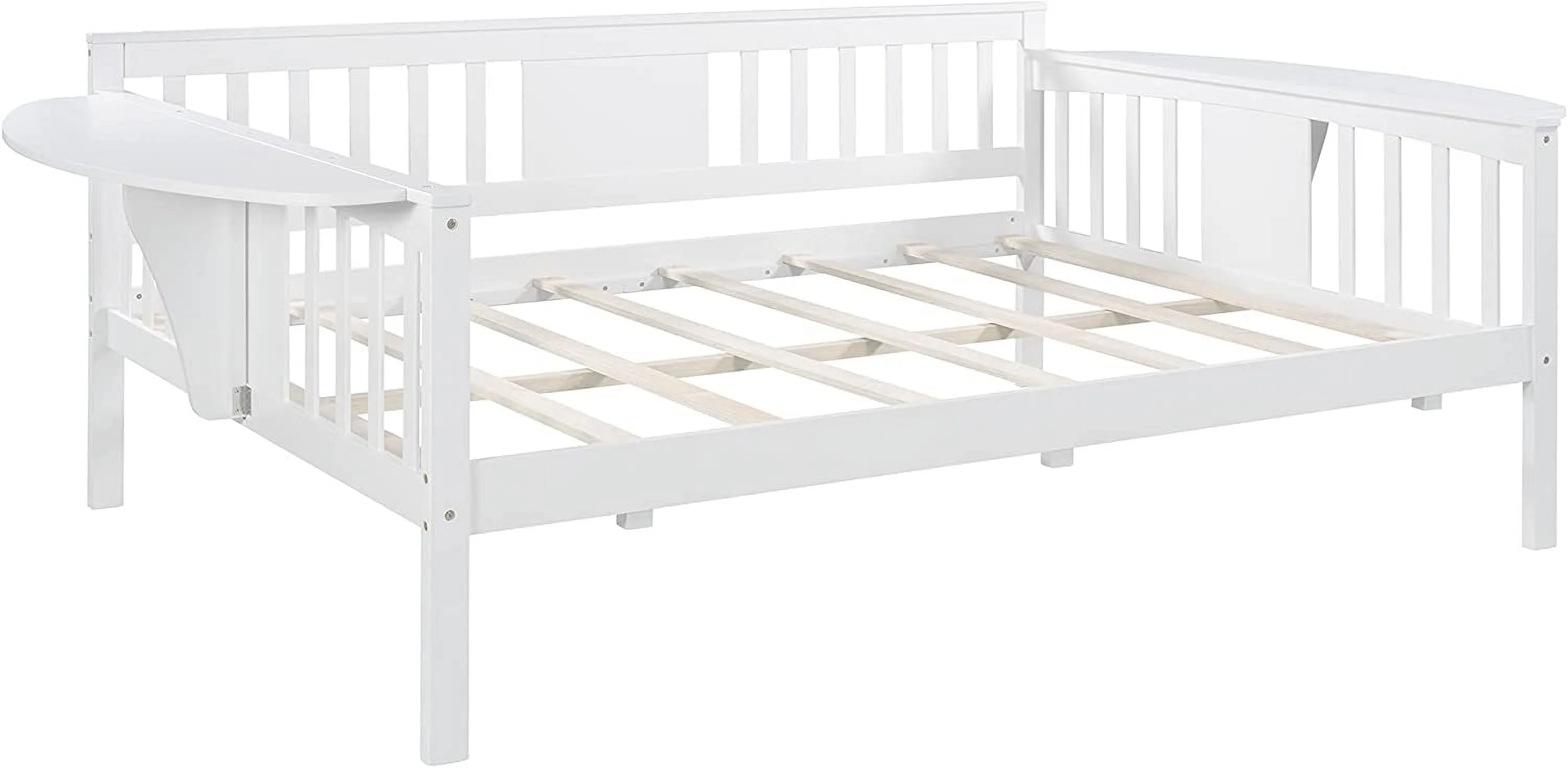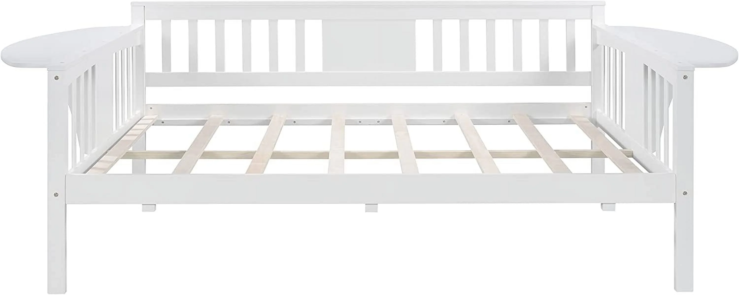 Full Size Solid Wood Daybed Full Size Bed Frame Mulifuncional Sofa Bed For Bedroom Living Room,Whie