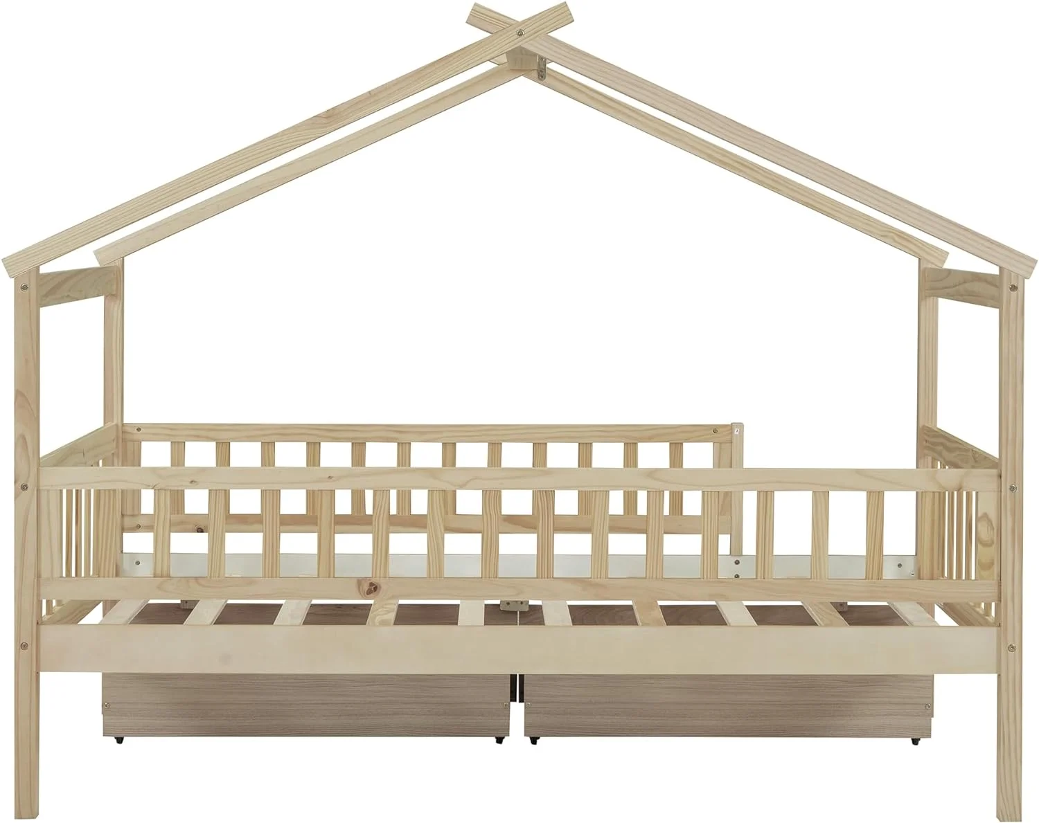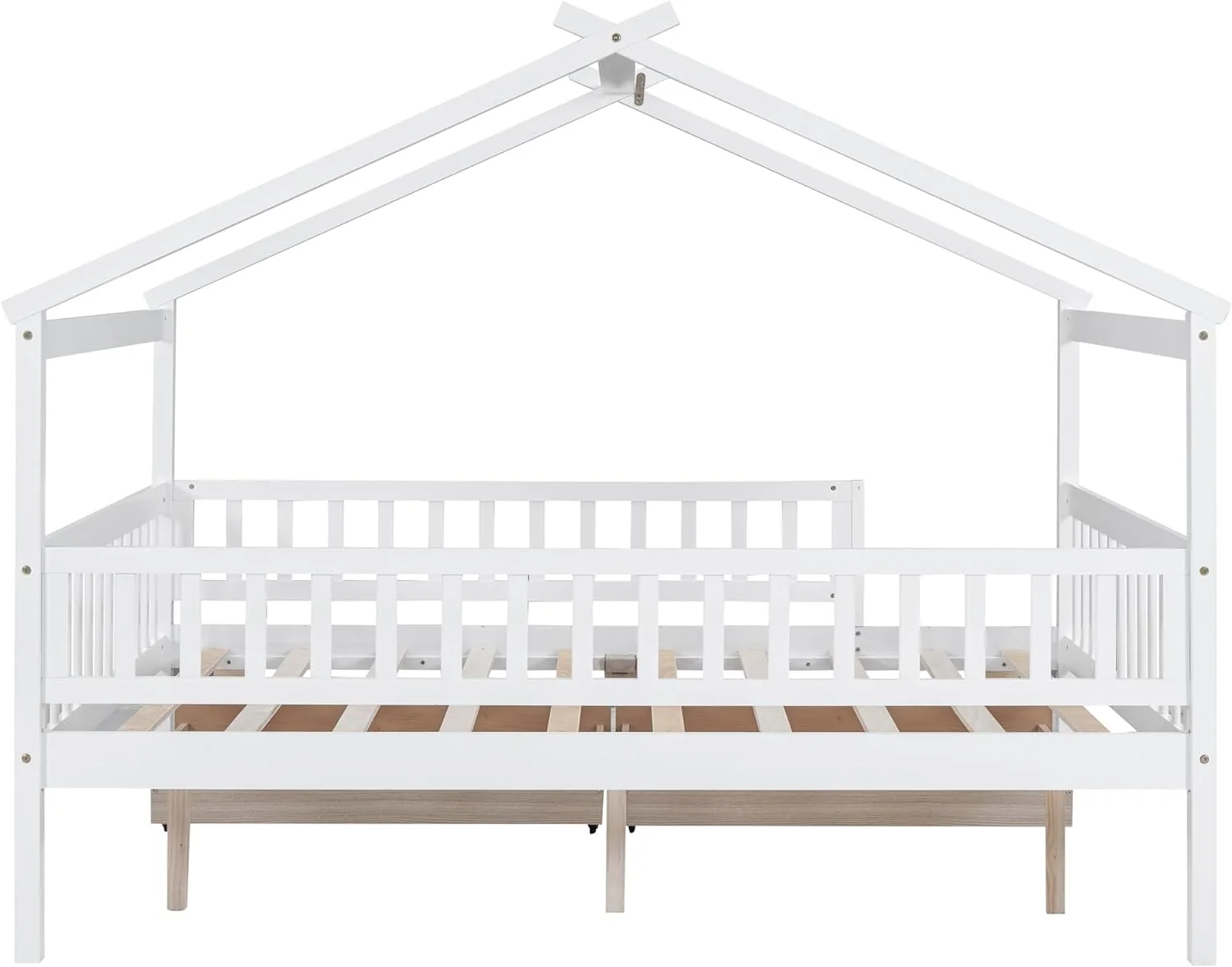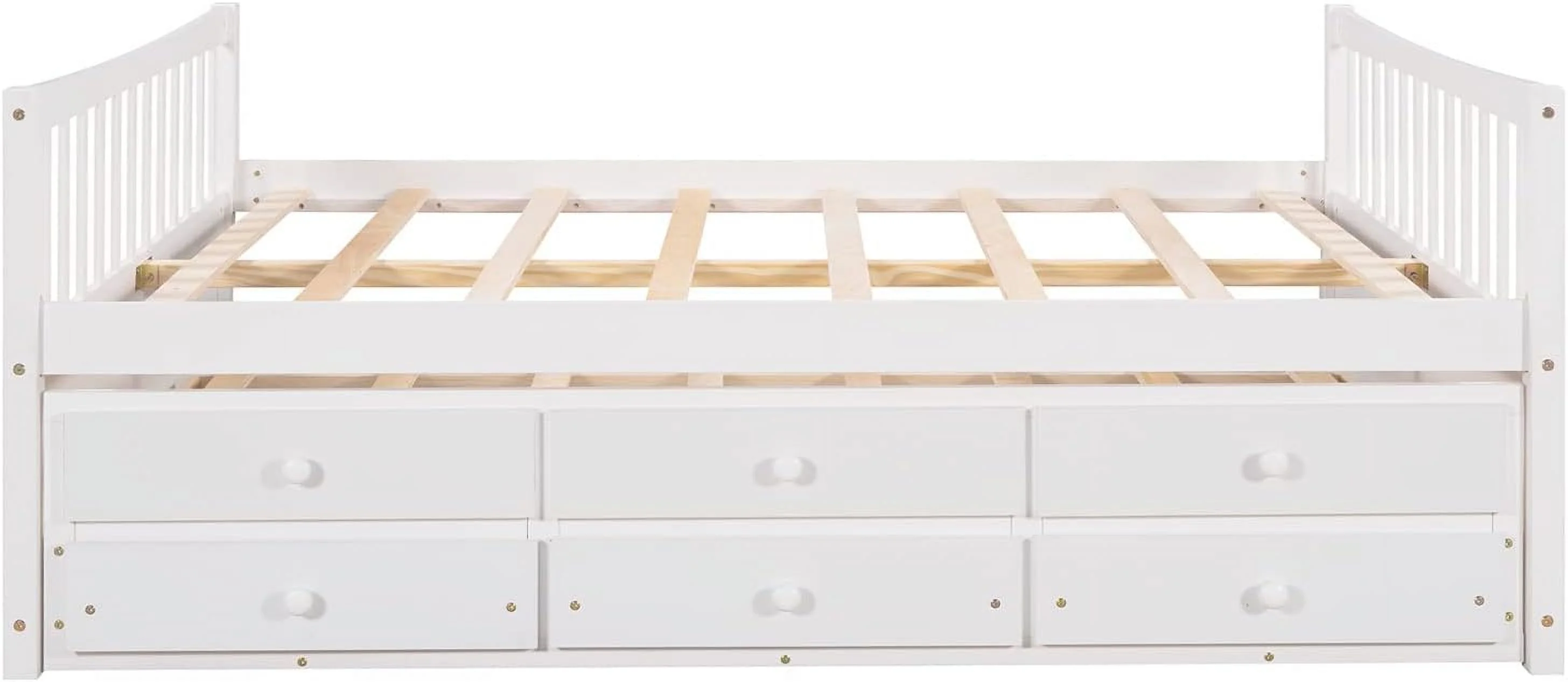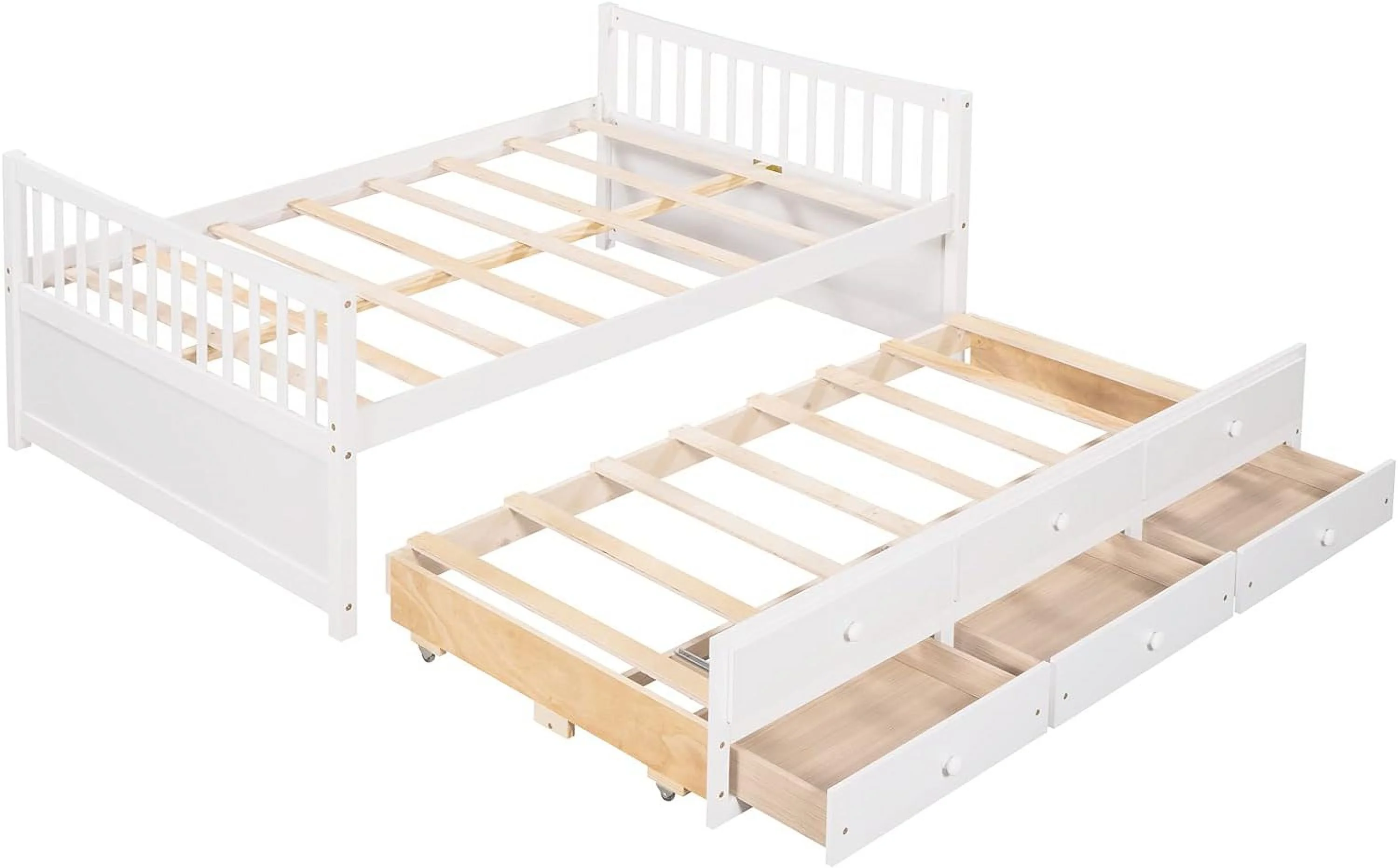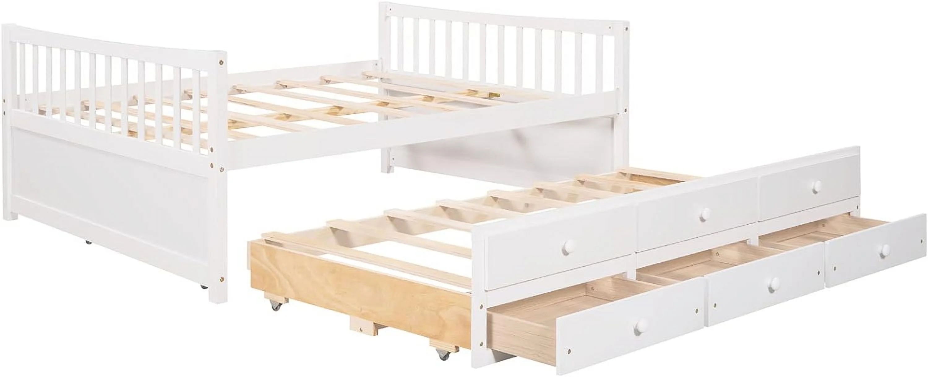Full Size Solid Wood Daybed Full Size Bed Frame Mulifuncional Sofa Bed For Bedroom Living Room,Whie