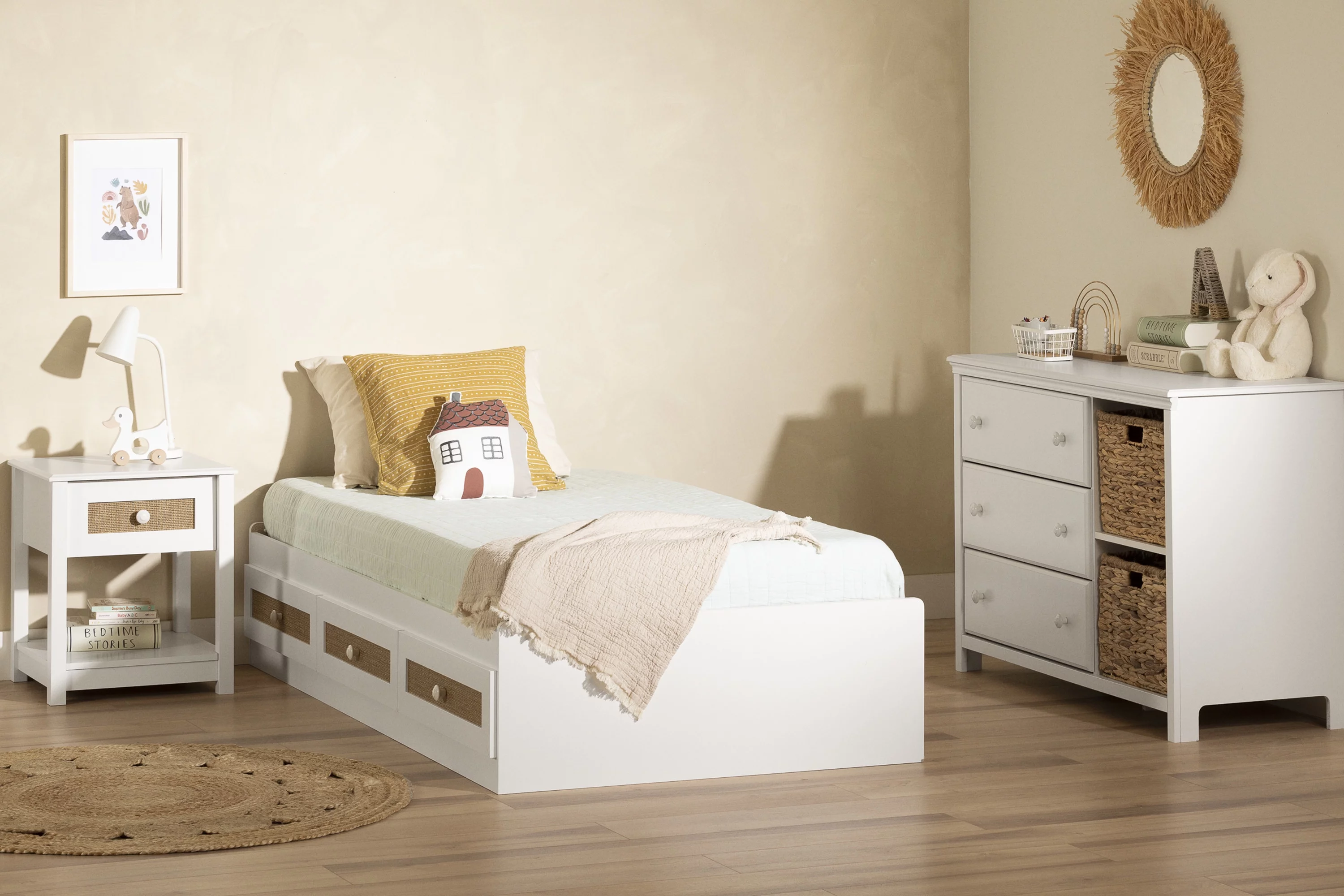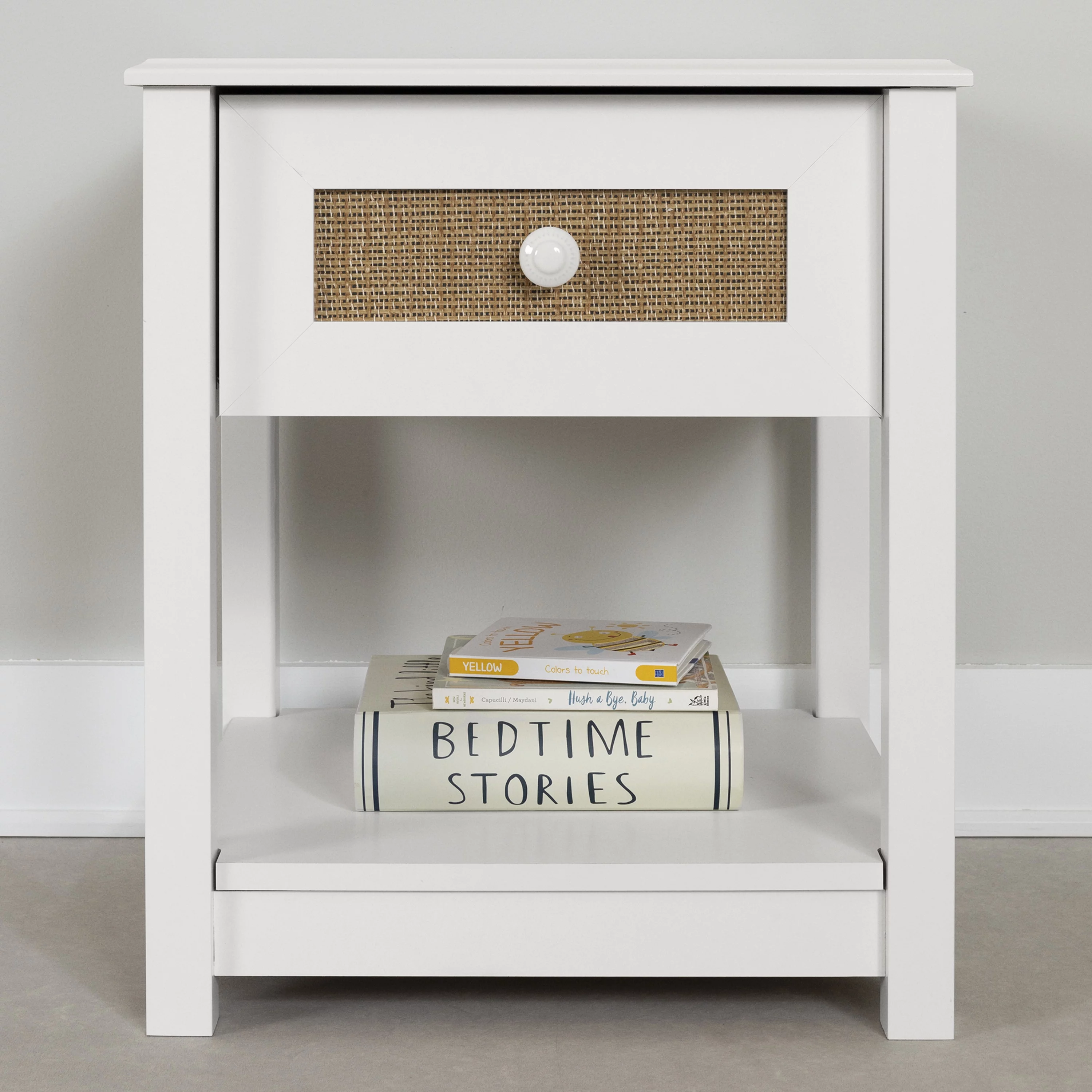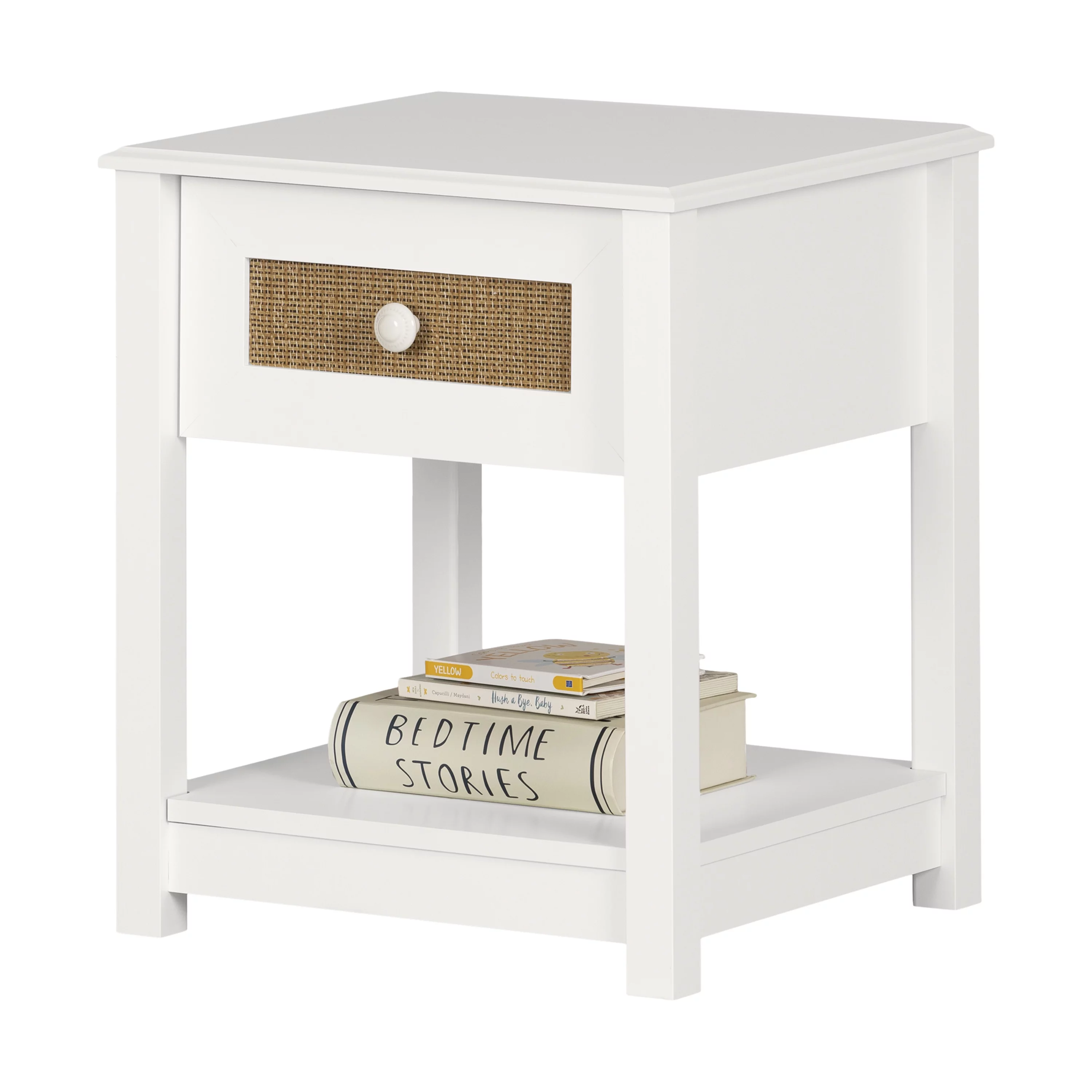 South Shore Bloom, Bohemian Harmony 1-Drawer Nightstand, White and Faux Printed Rattan