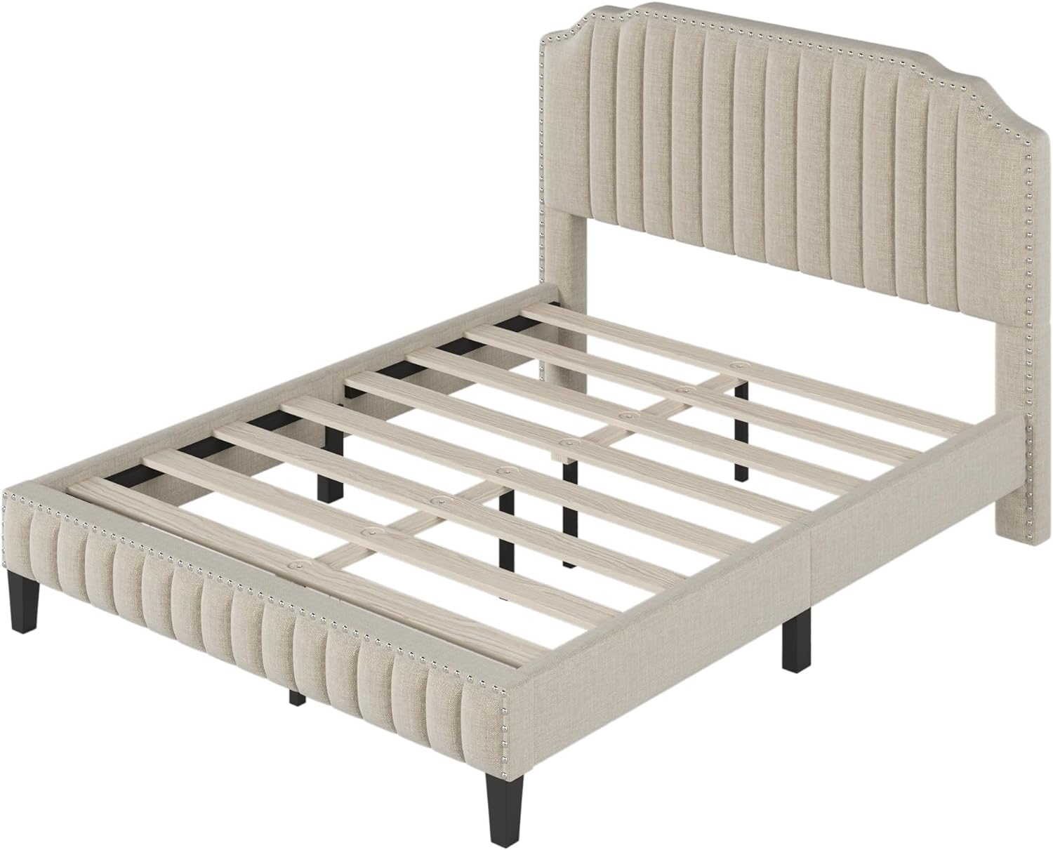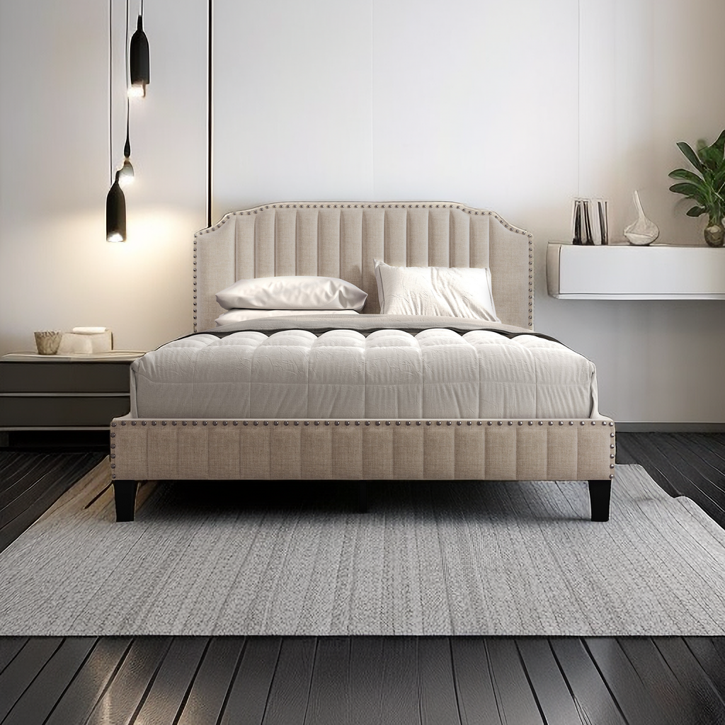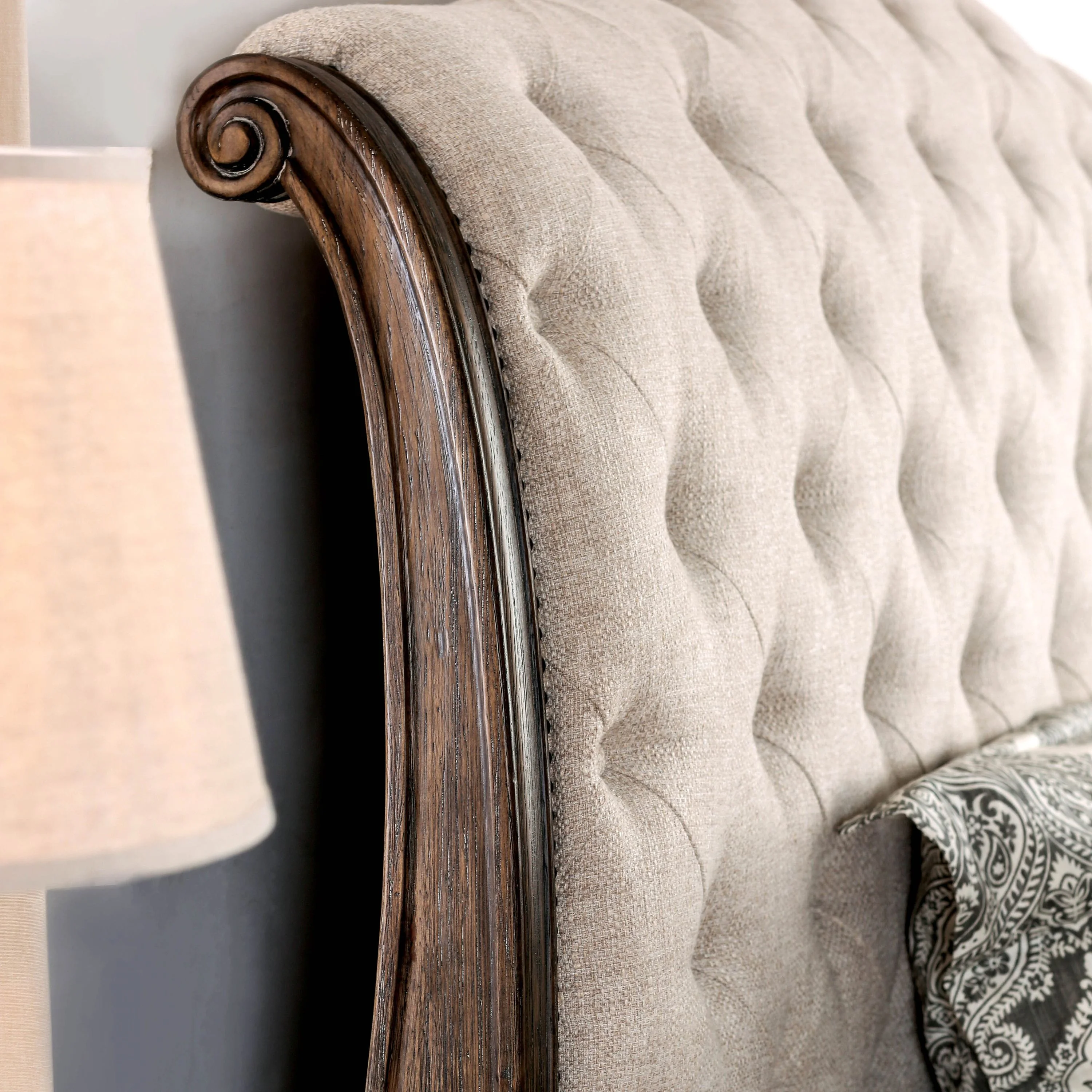Furniture of America Arlette Bed, Eastern King, Beige, Natural Tone