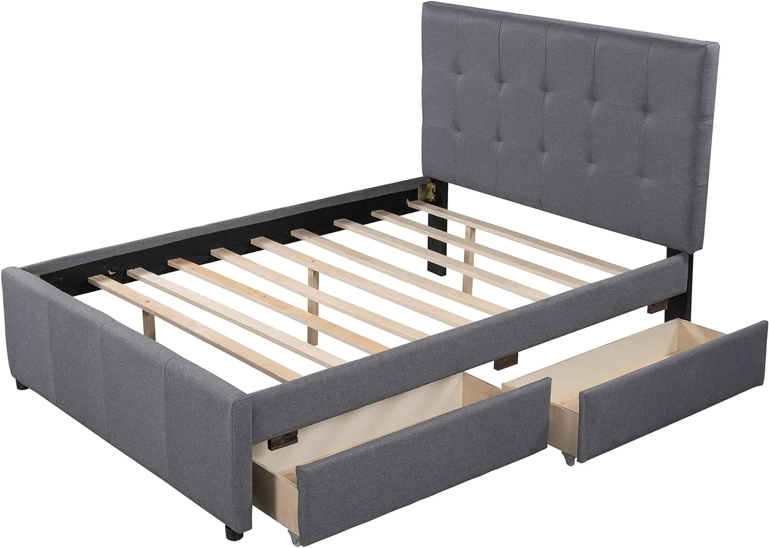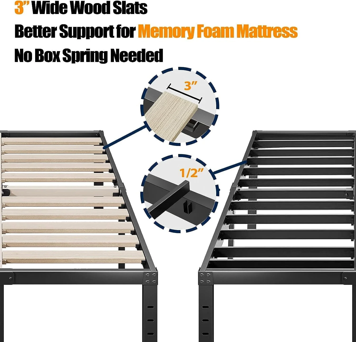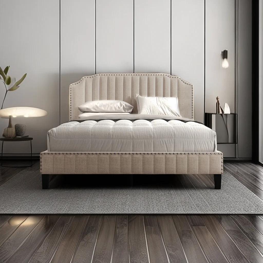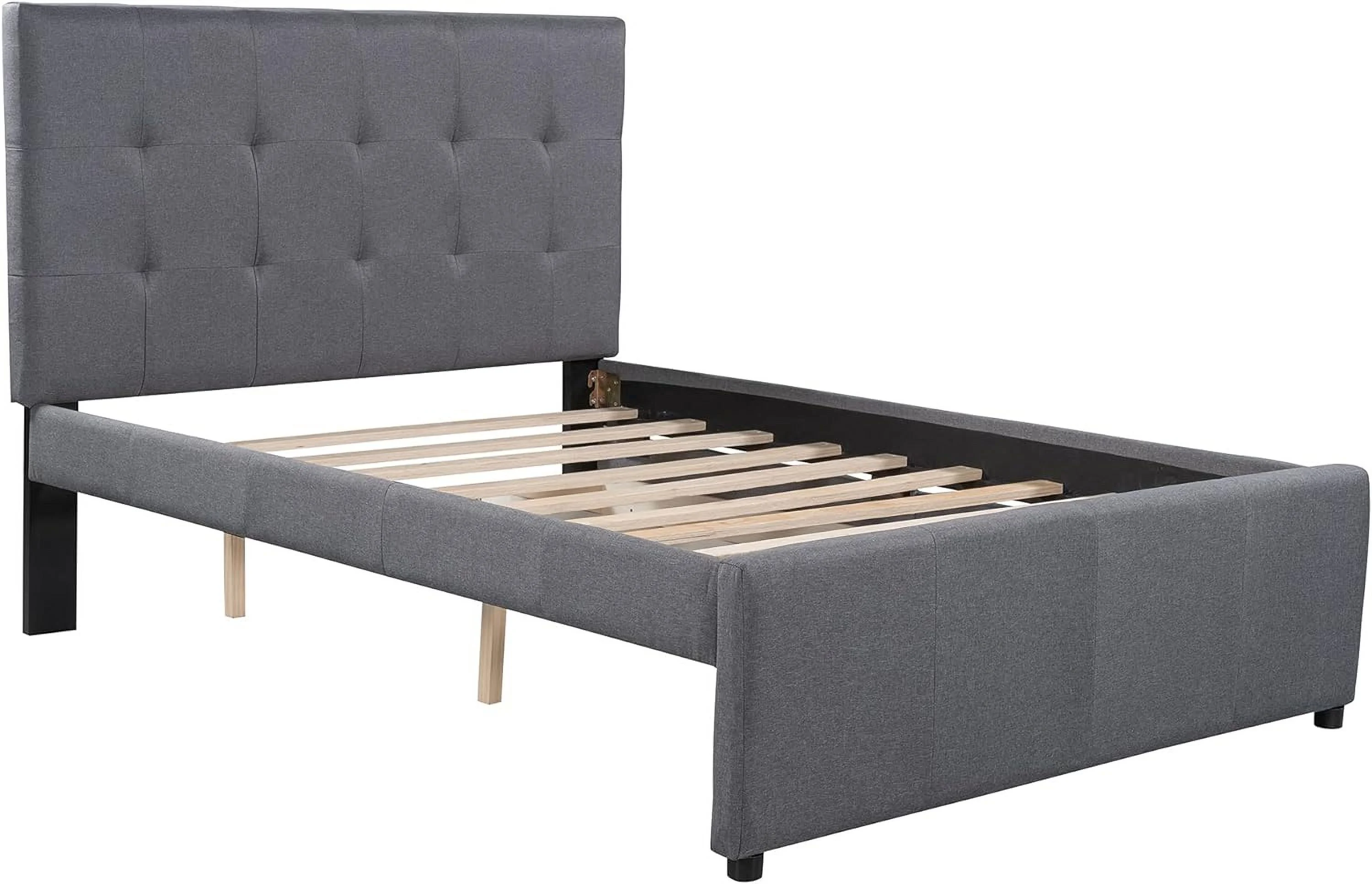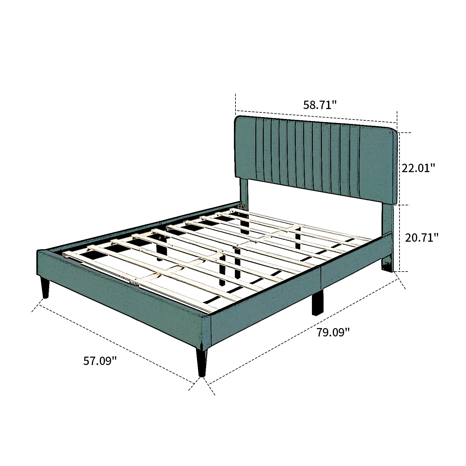 Fashion Design Full Size Platform Bed with Headboard and Center Support Legs