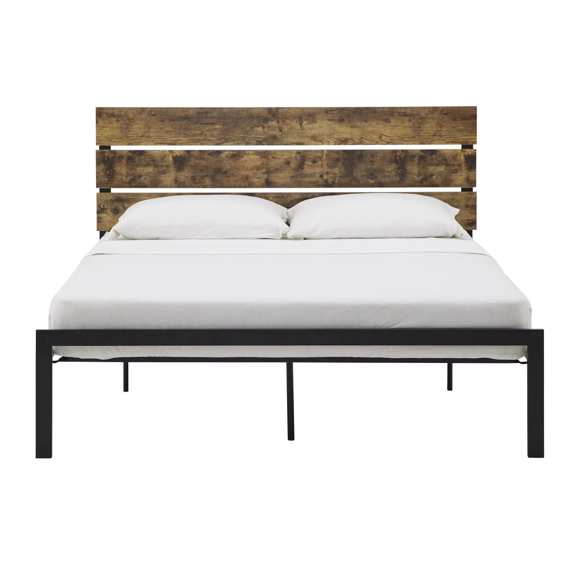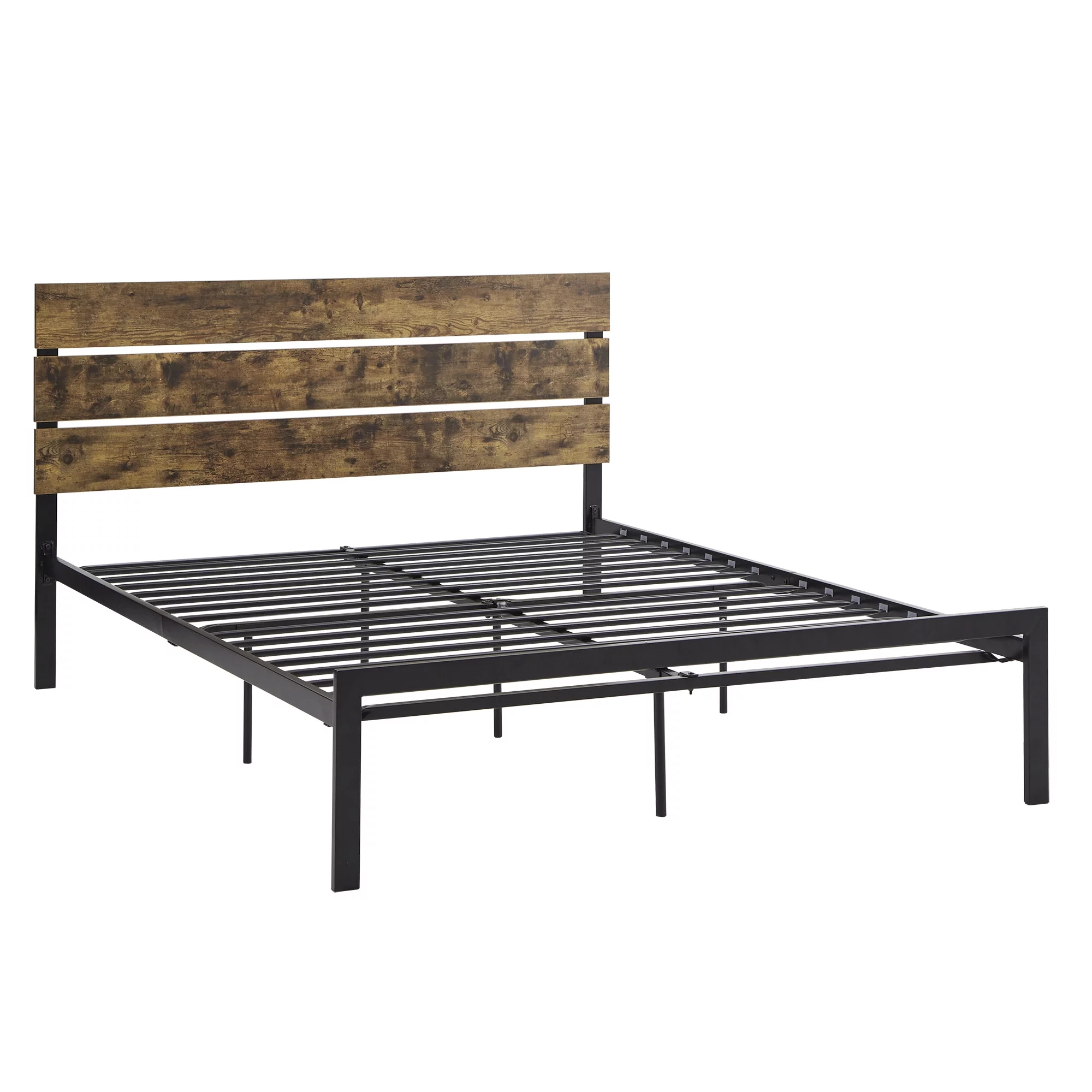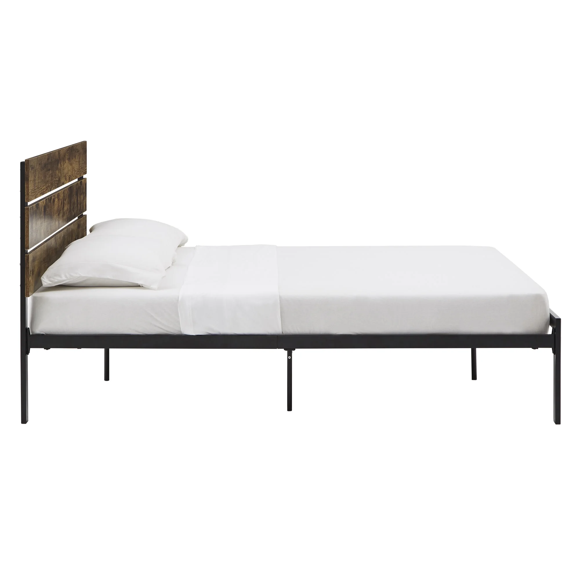 Weston Home Aabir Metal Queen Platform Bed with Wood Finish Panels, Black