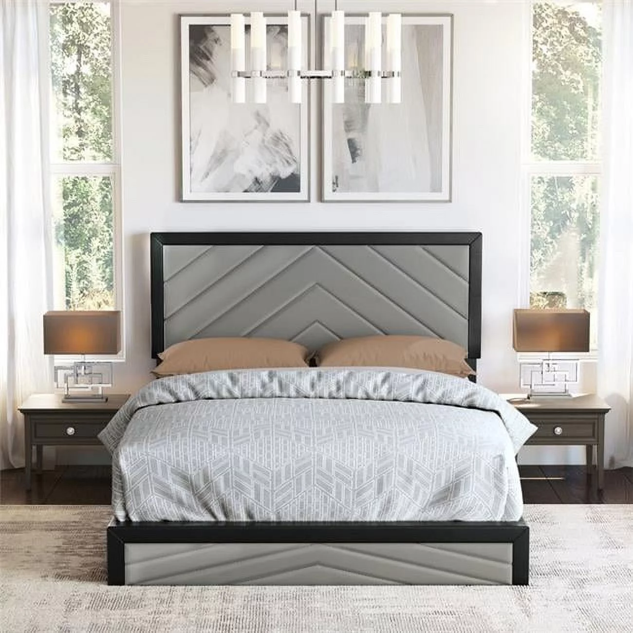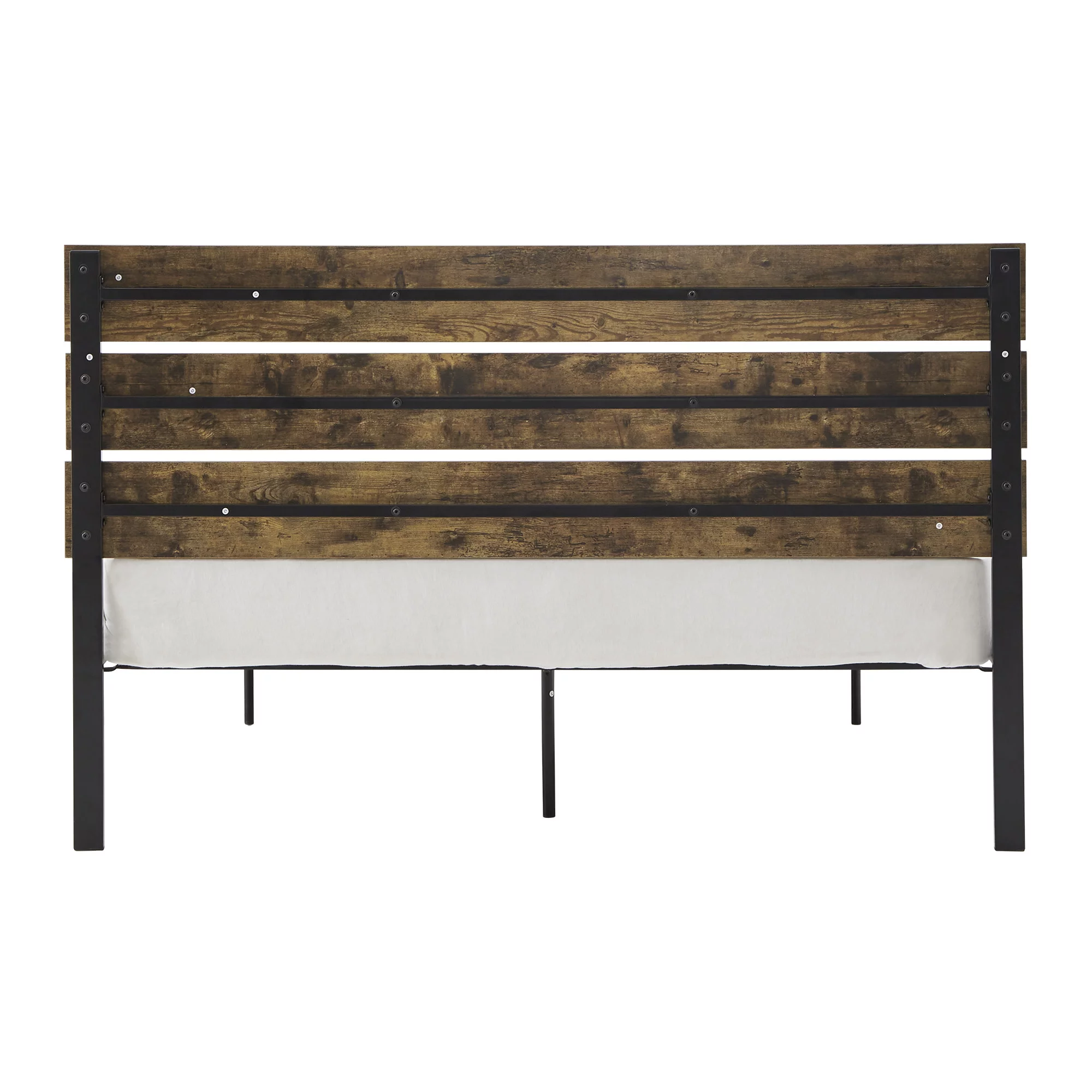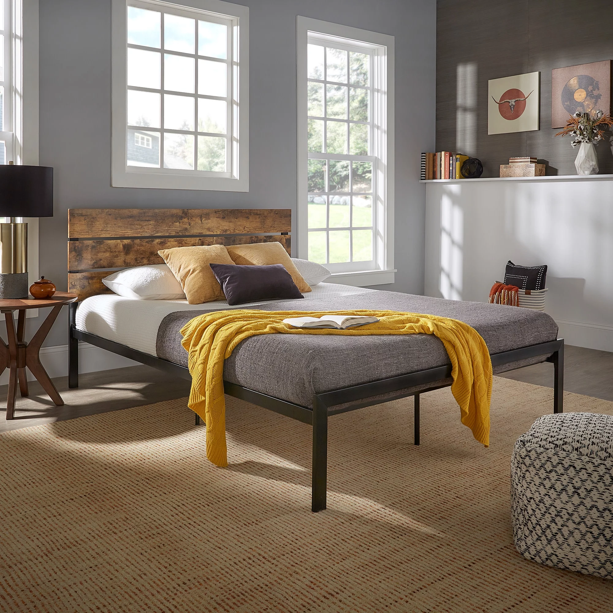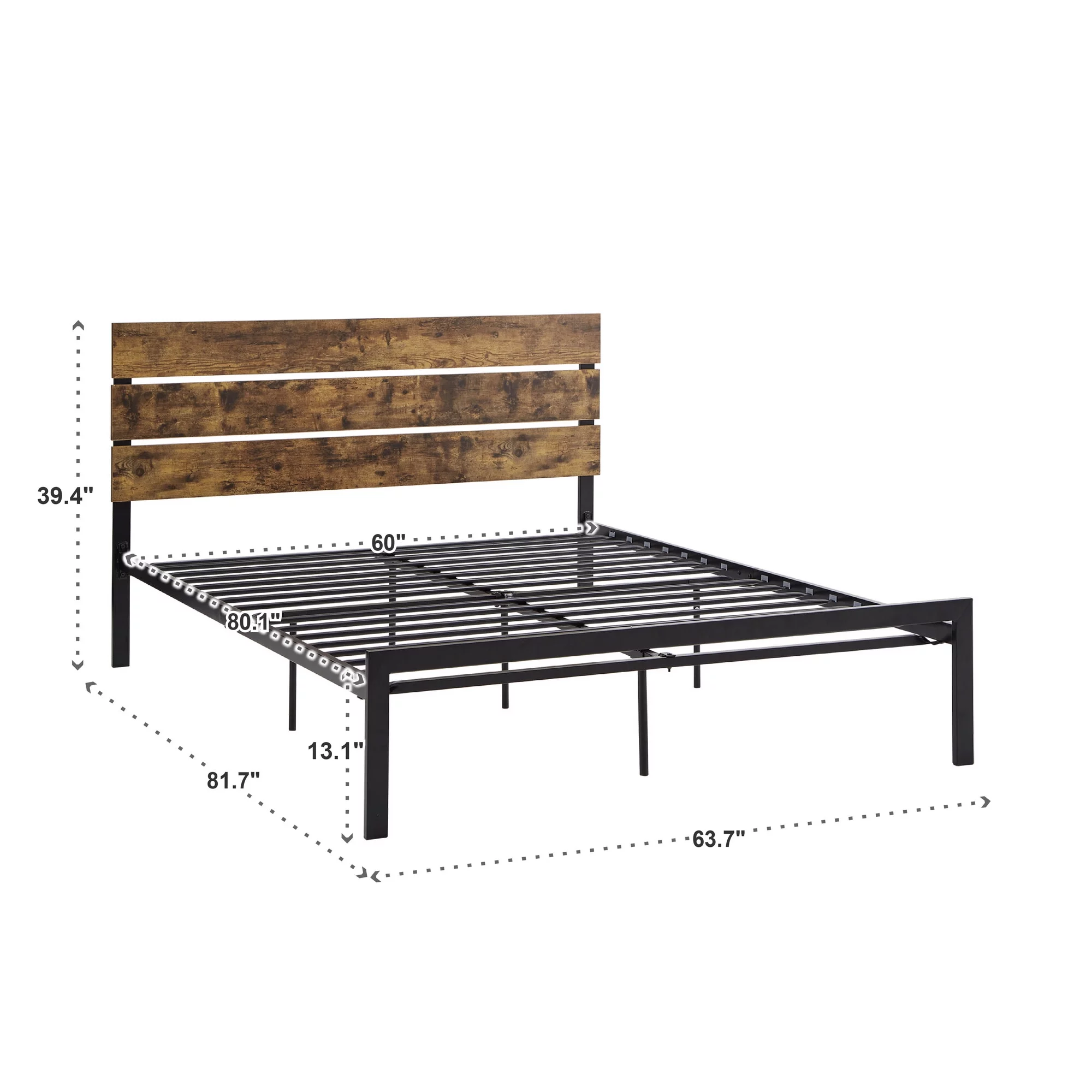 Weston Home Aabir Metal Queen Platform Bed with Wood Finish Panels, Black