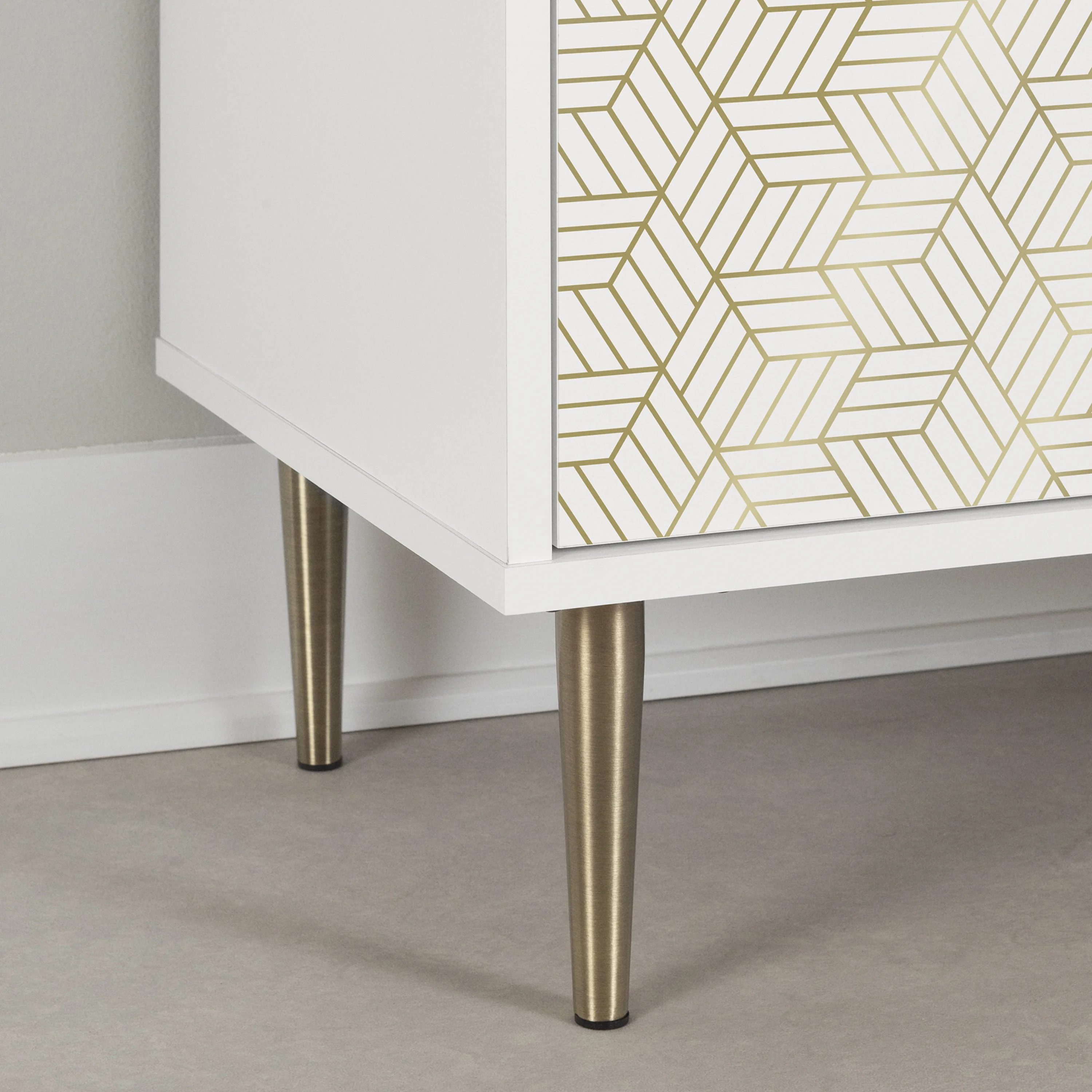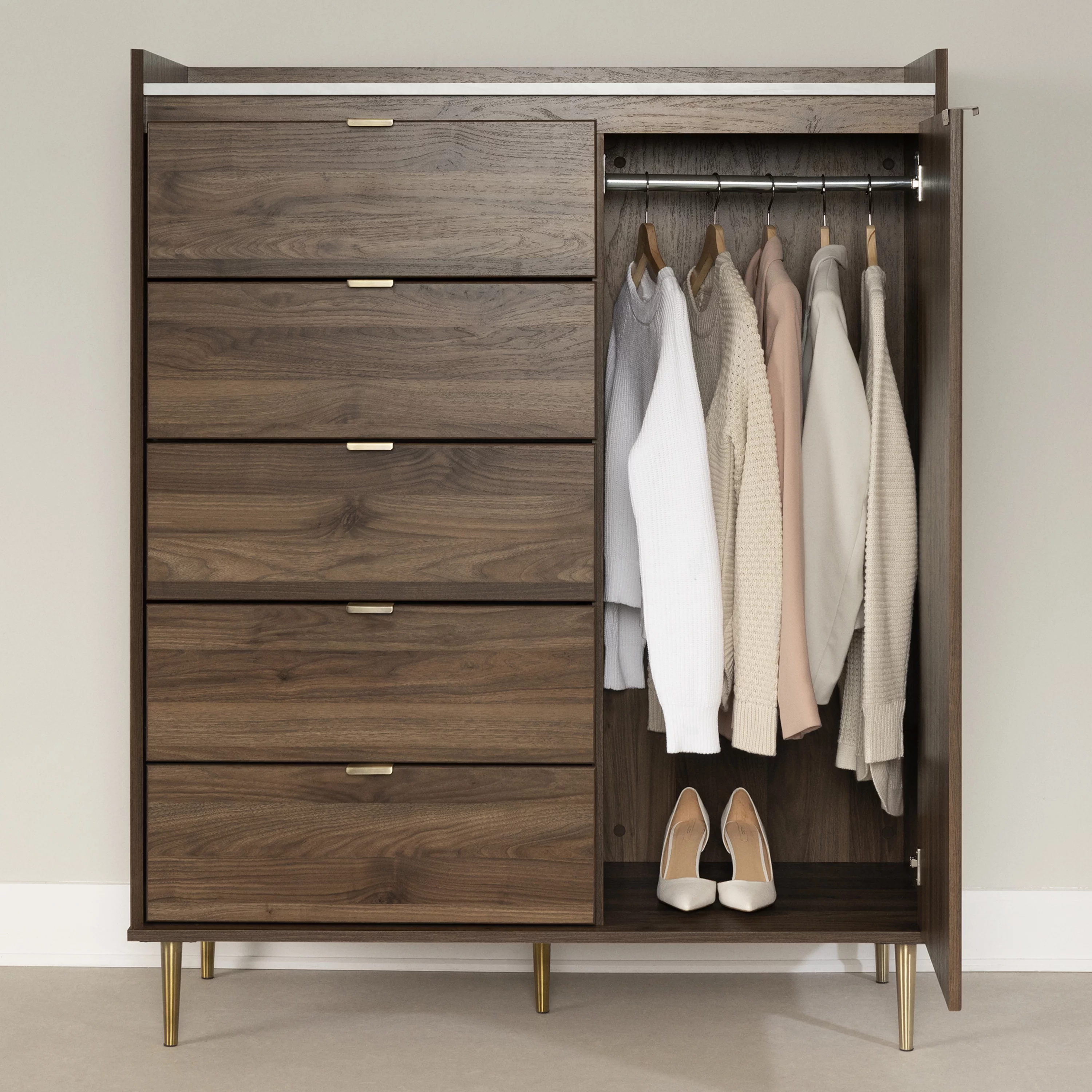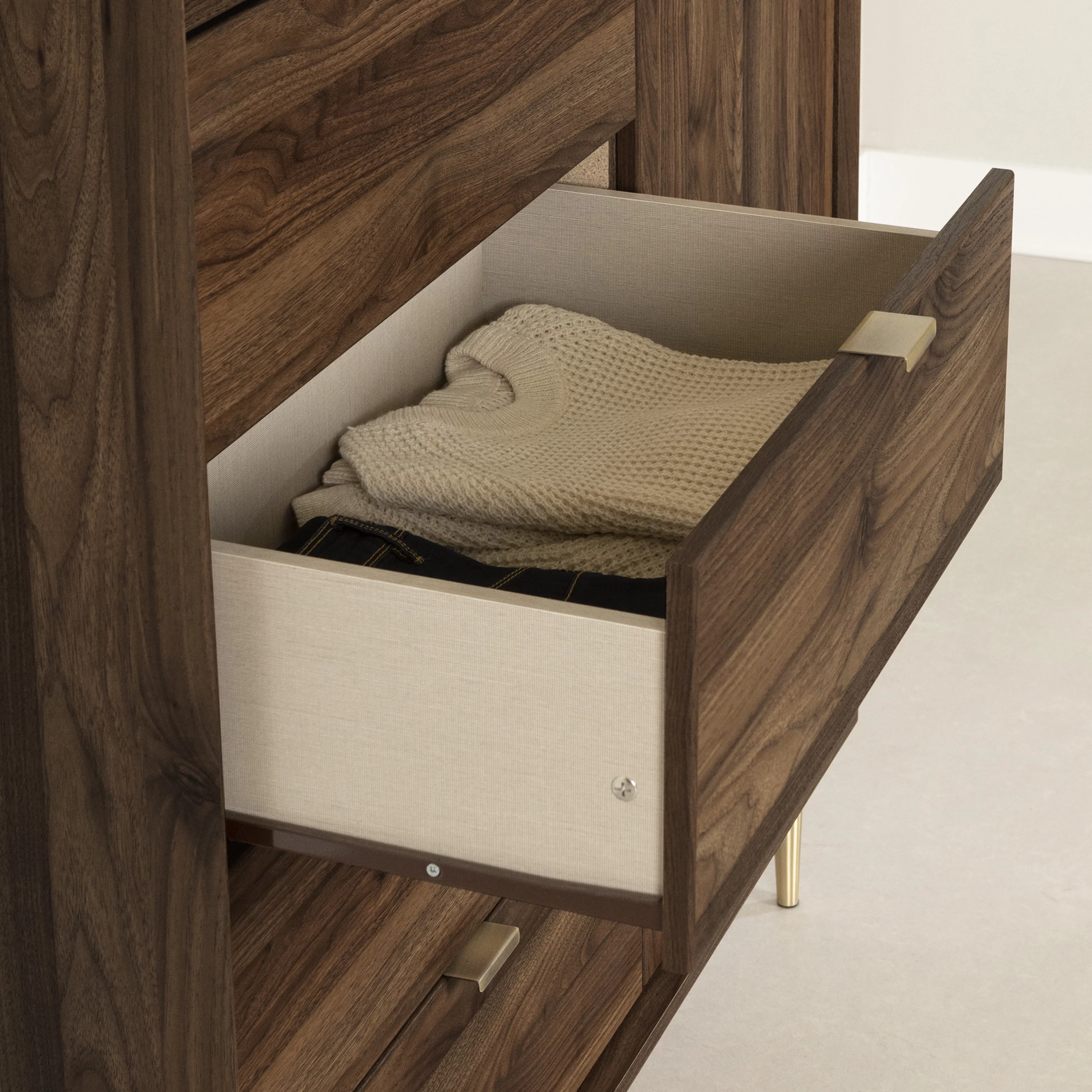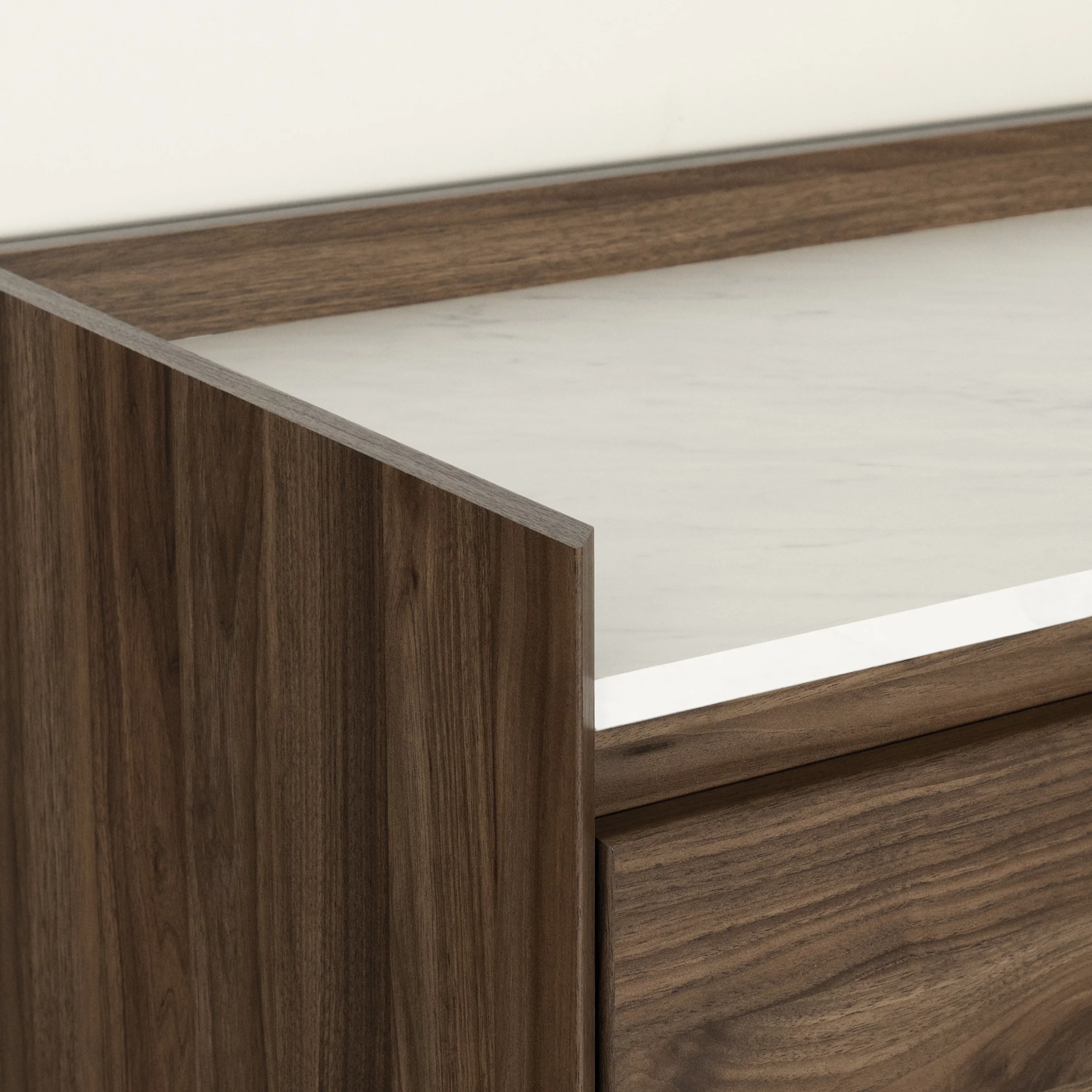 South Shore Hype Mid-century Glam 5-Drawers Dresser Natural Walnut and Faux Carrara Marble