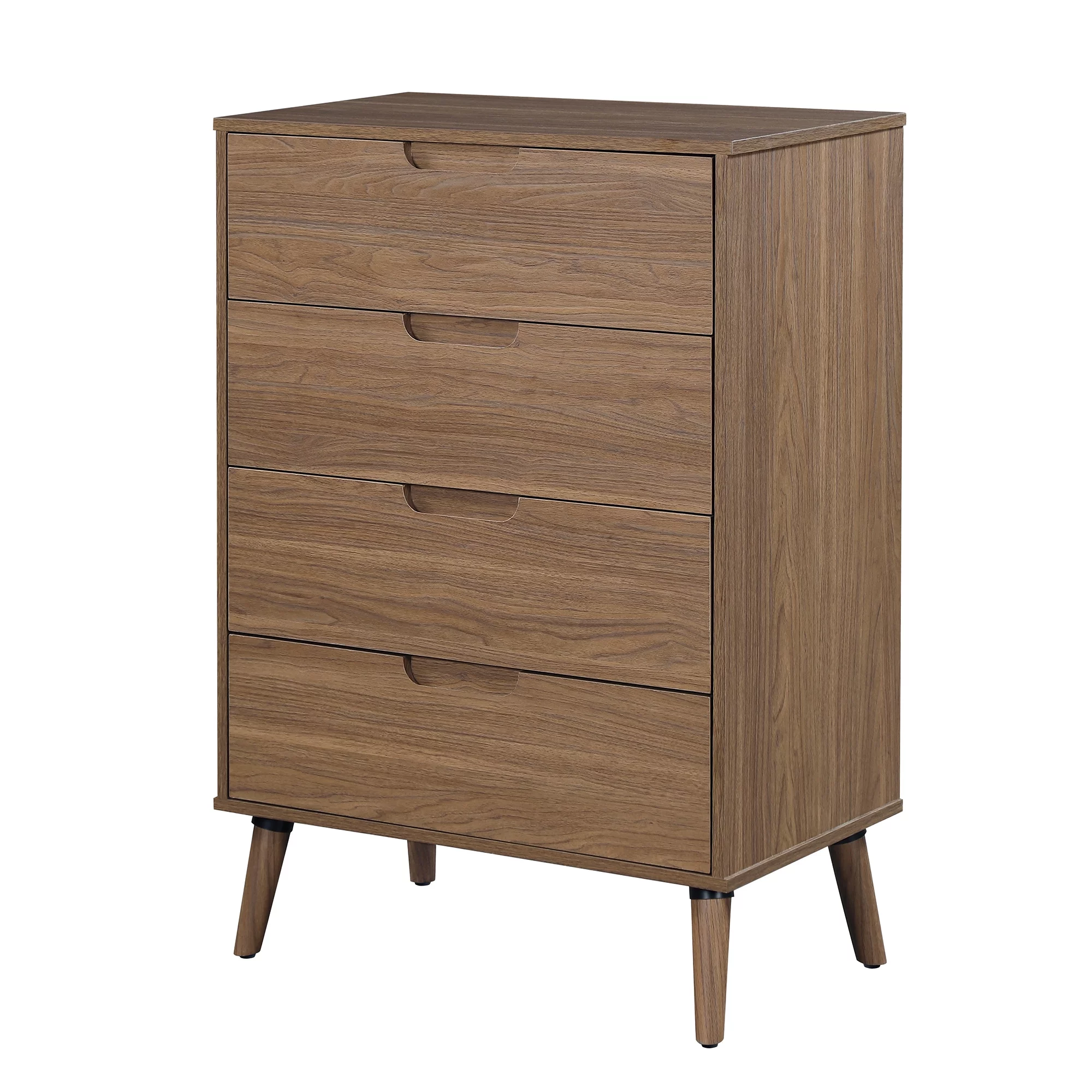 Mainstays, Modern 4 Drawer Wood Dresser, Bedroom, for All Ages, Brown Walnut