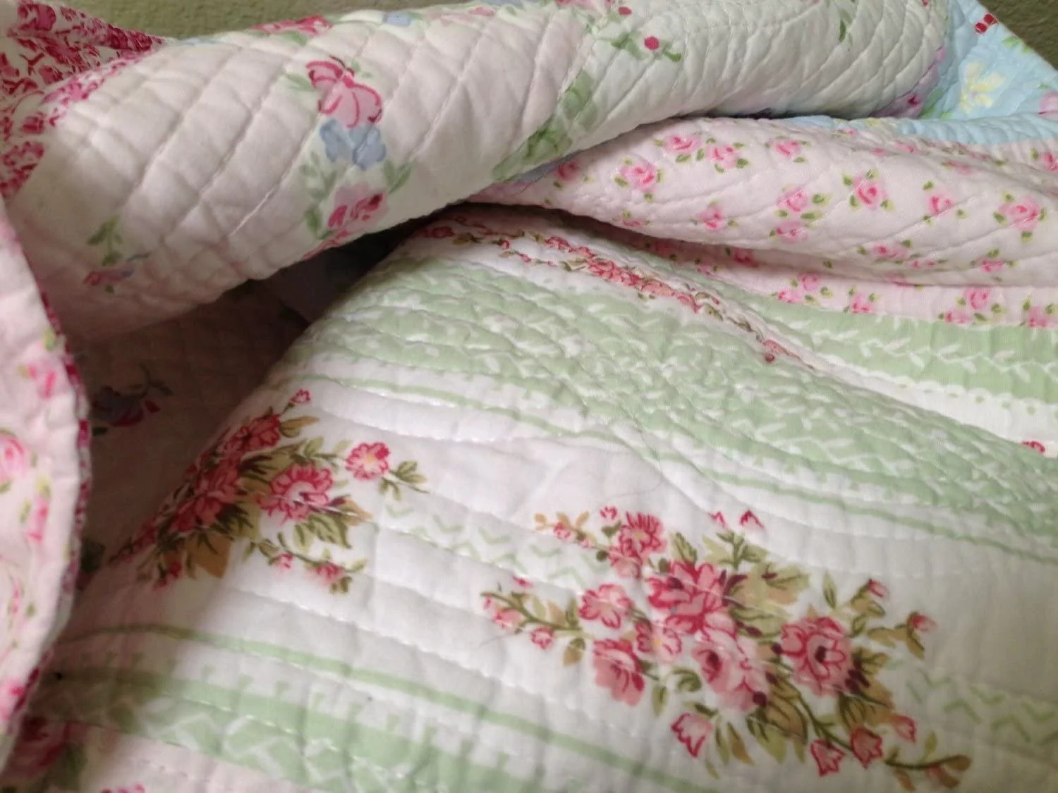 HOOMHIBIU Home Full Queen Quilt Set Shabby Patchwork Vintage Pink Rose Chic