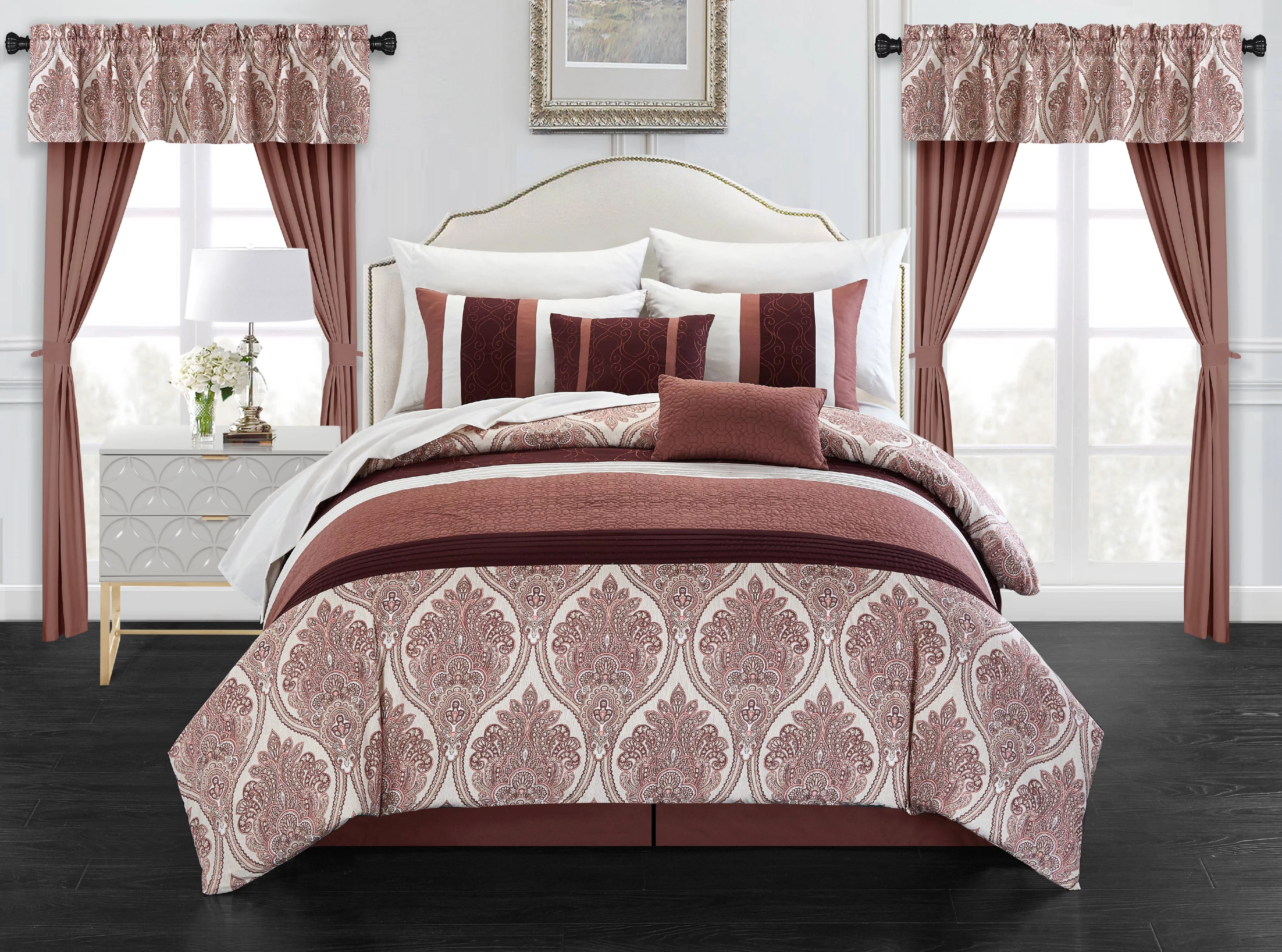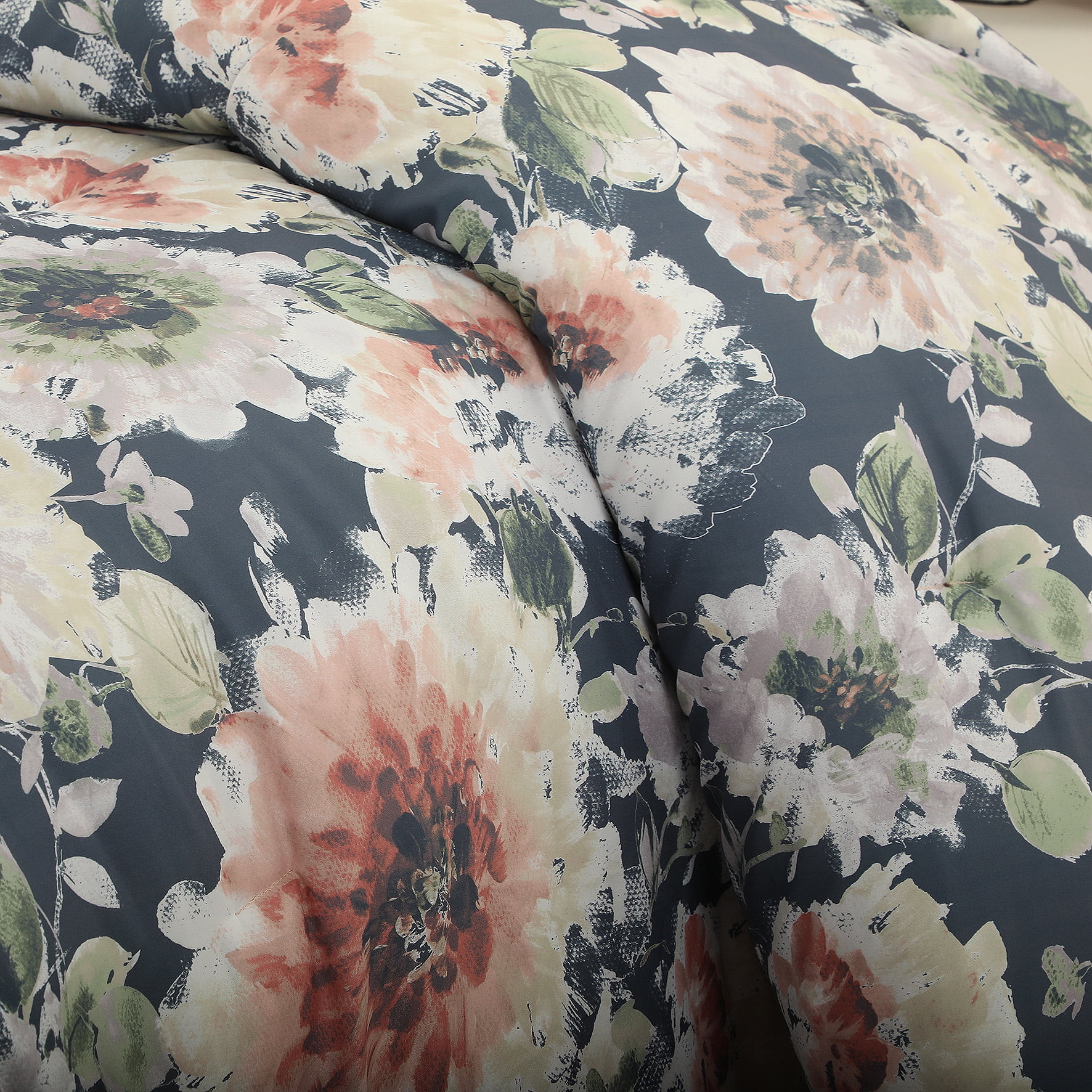 Nanshing Millie 7 Piece Floral Shabby Chic Comforter Set, California King, Navy/Blush