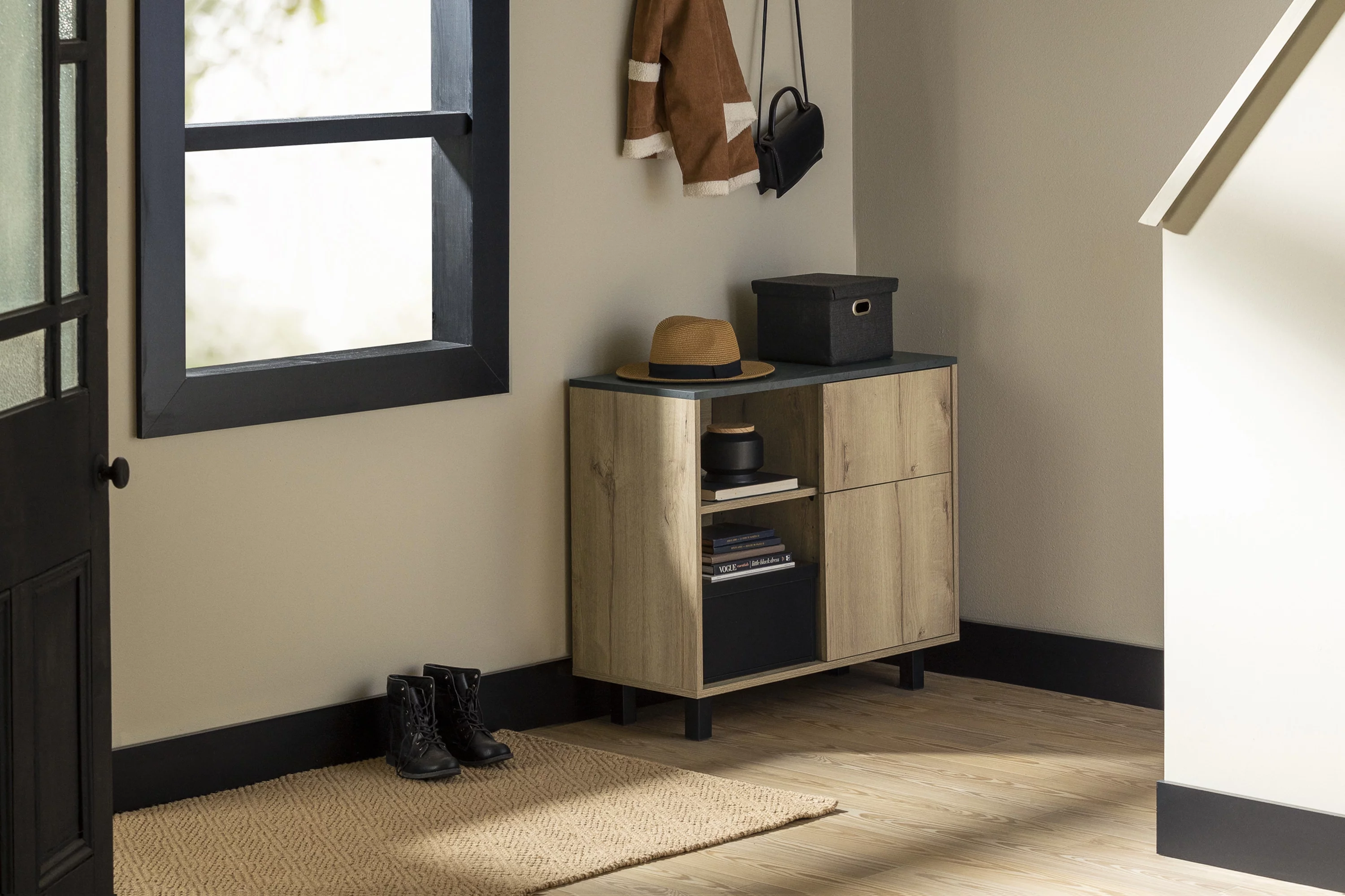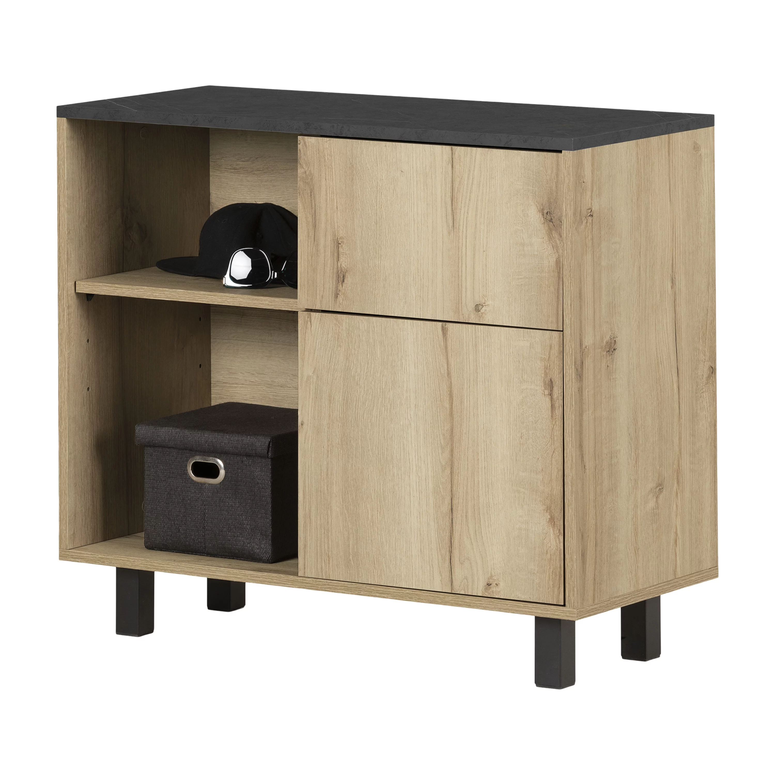 South Shore Toza, Contemporary Storage Unit, Medium Oak and Faux Black Stone
