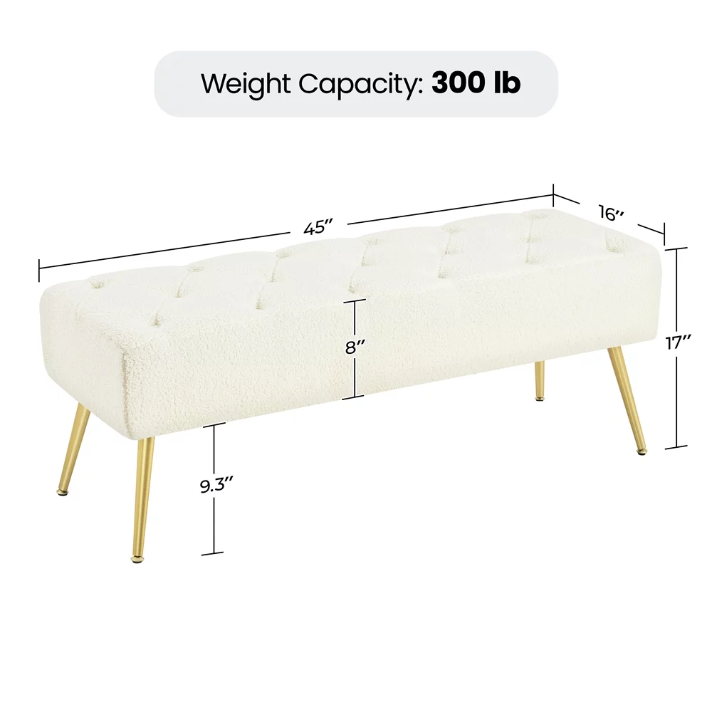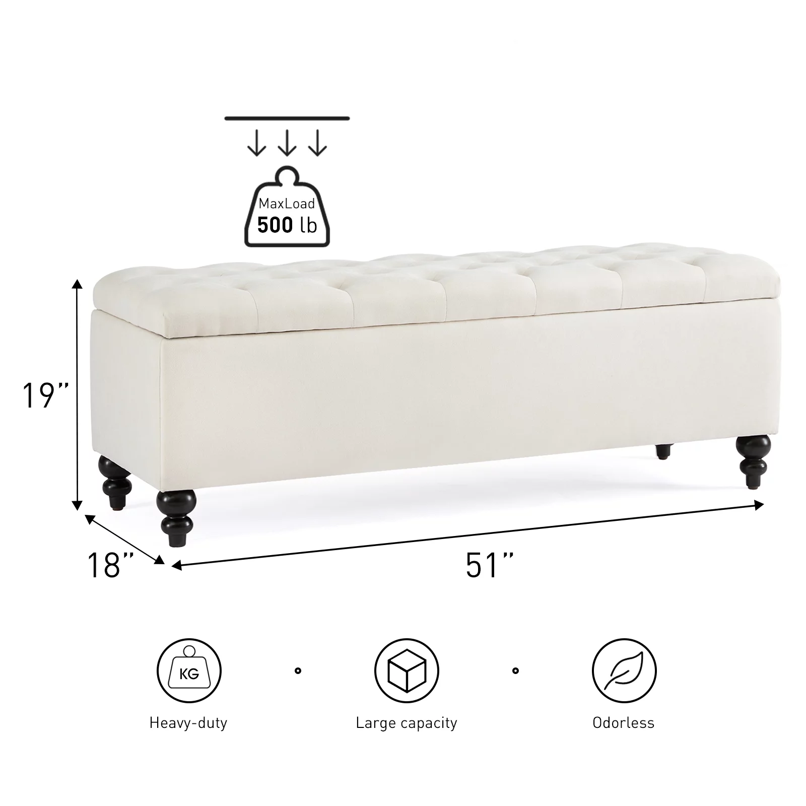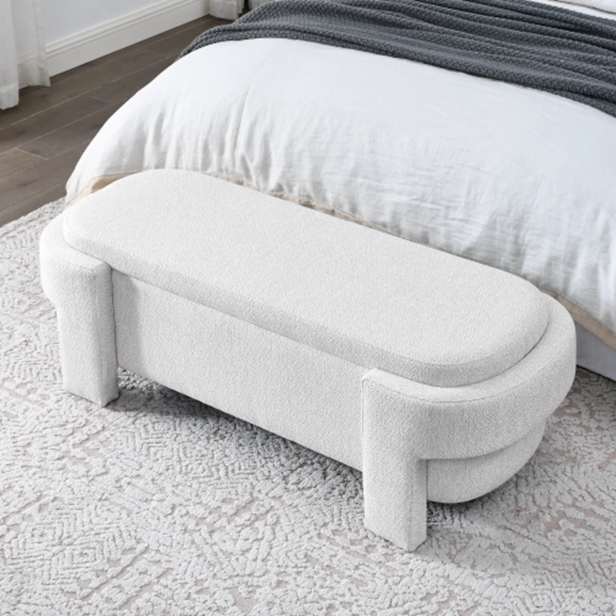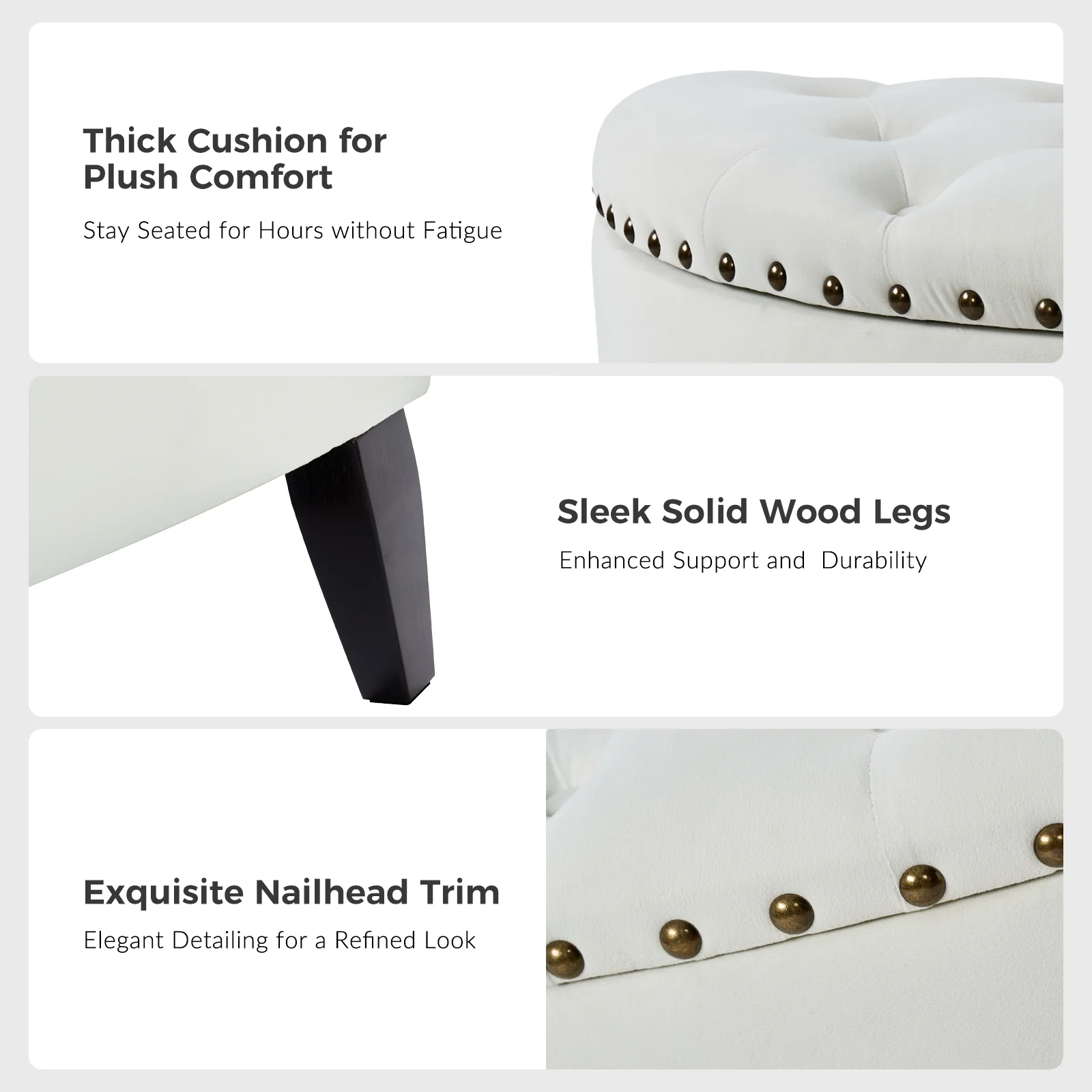 43" Wide Storage Bench Ottoman Upholstered Half Circle Bed Foot Stool with Tufted&Nail Home Bedroom in Ivory