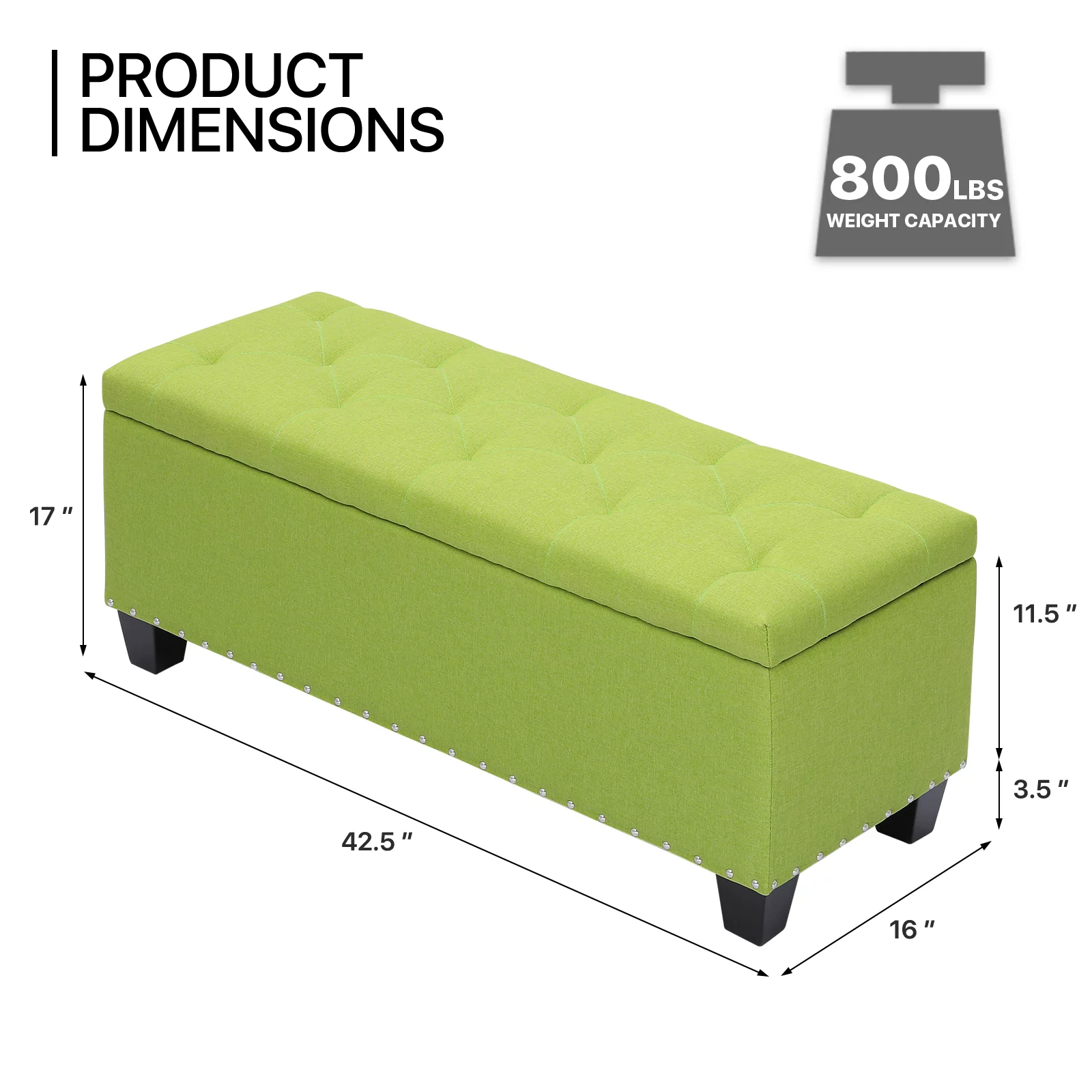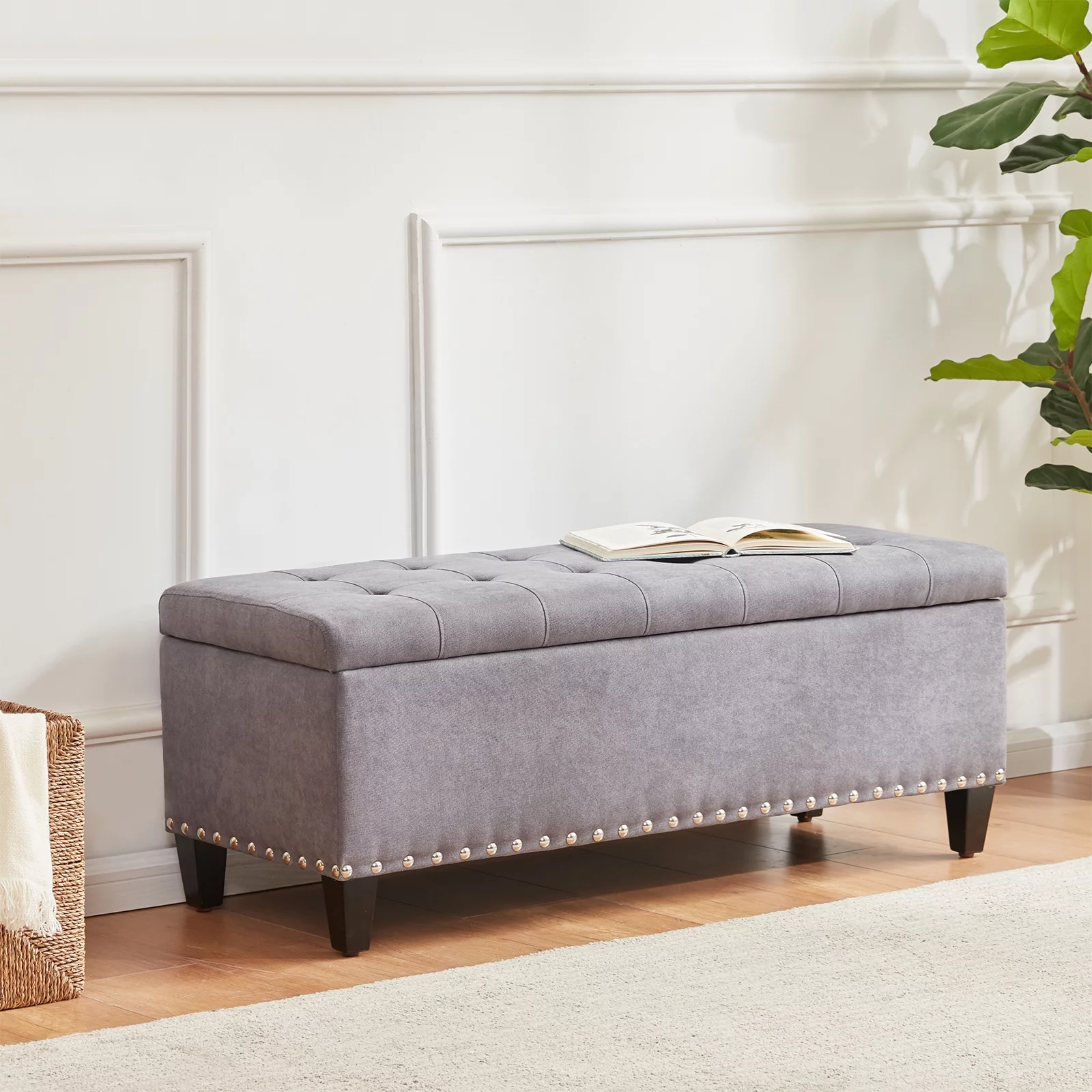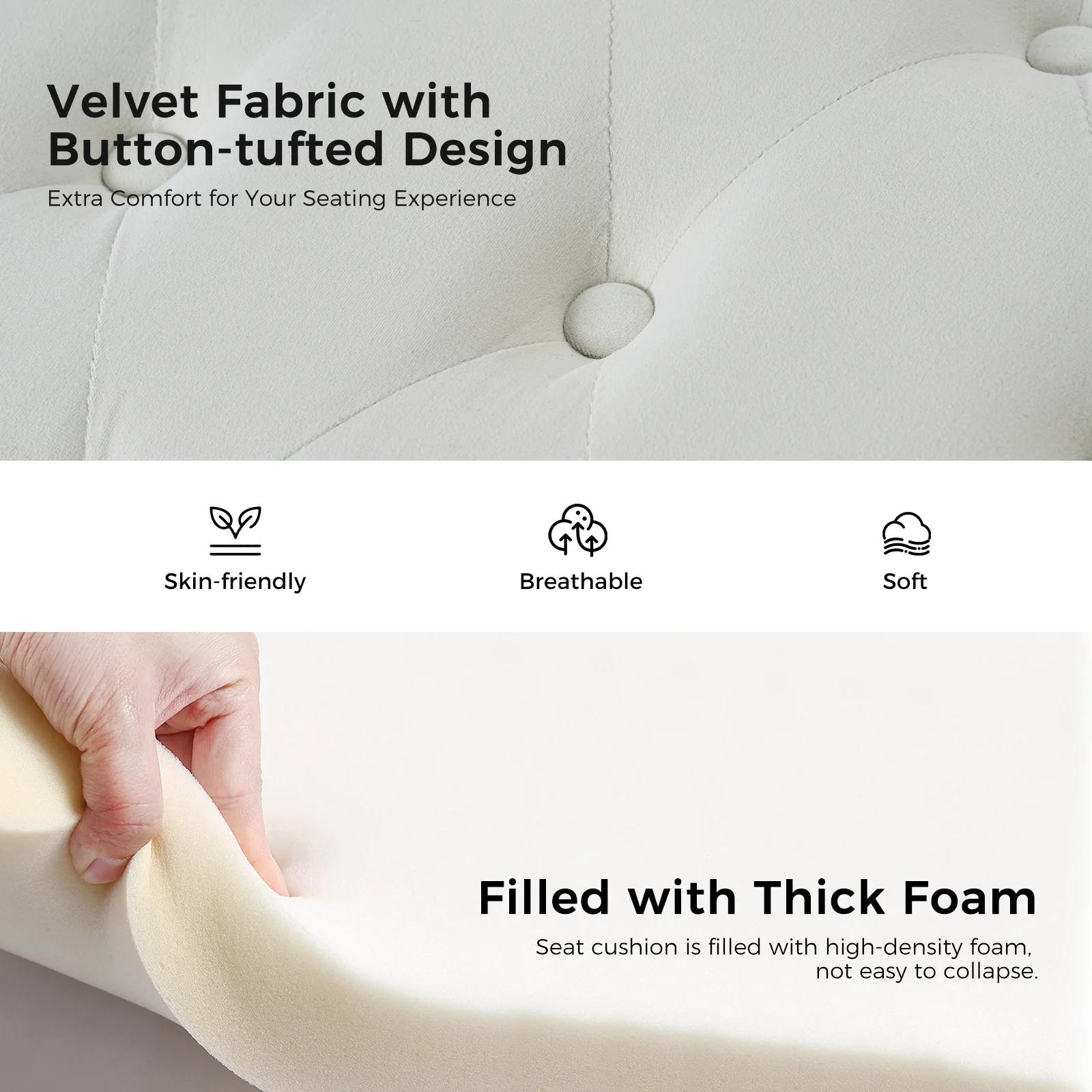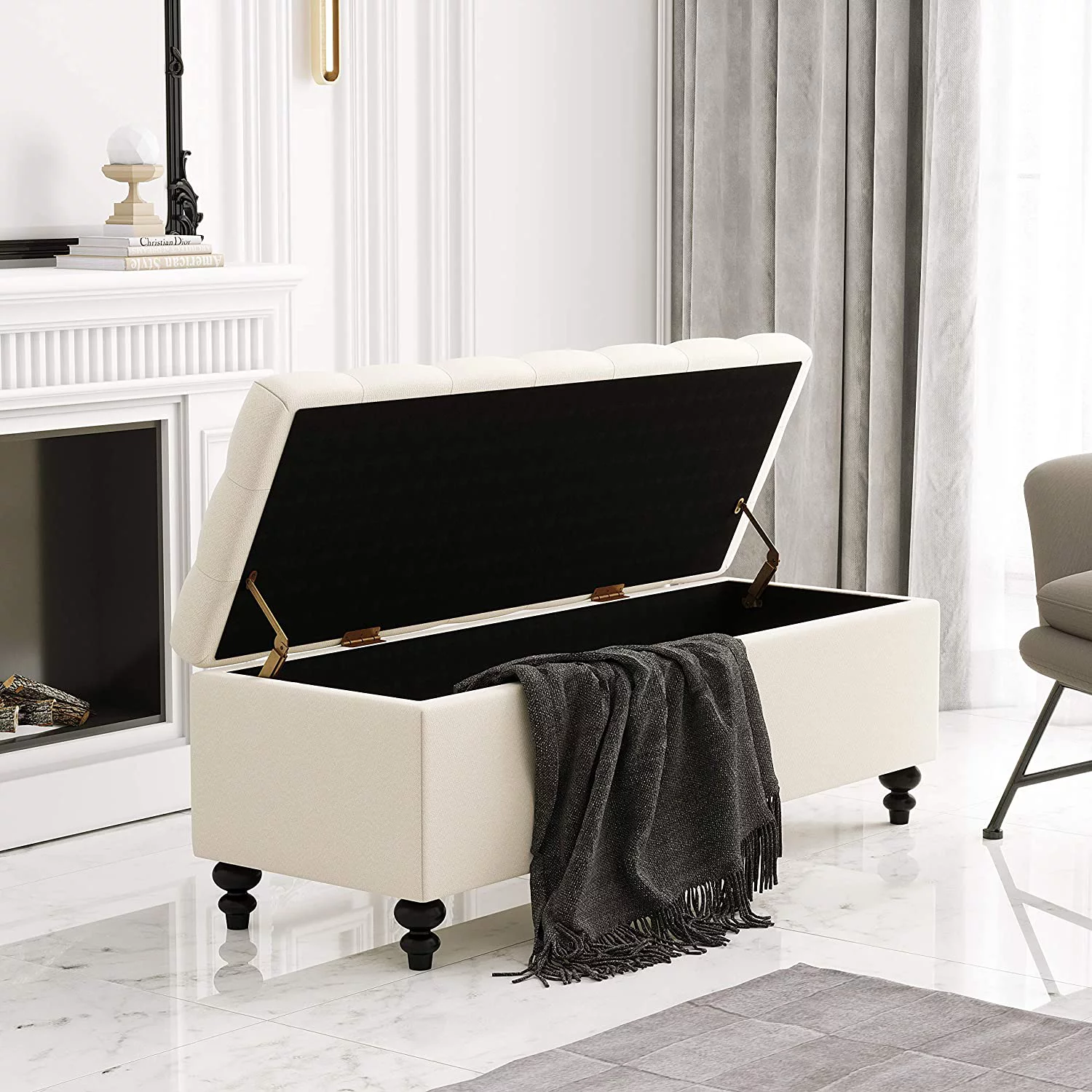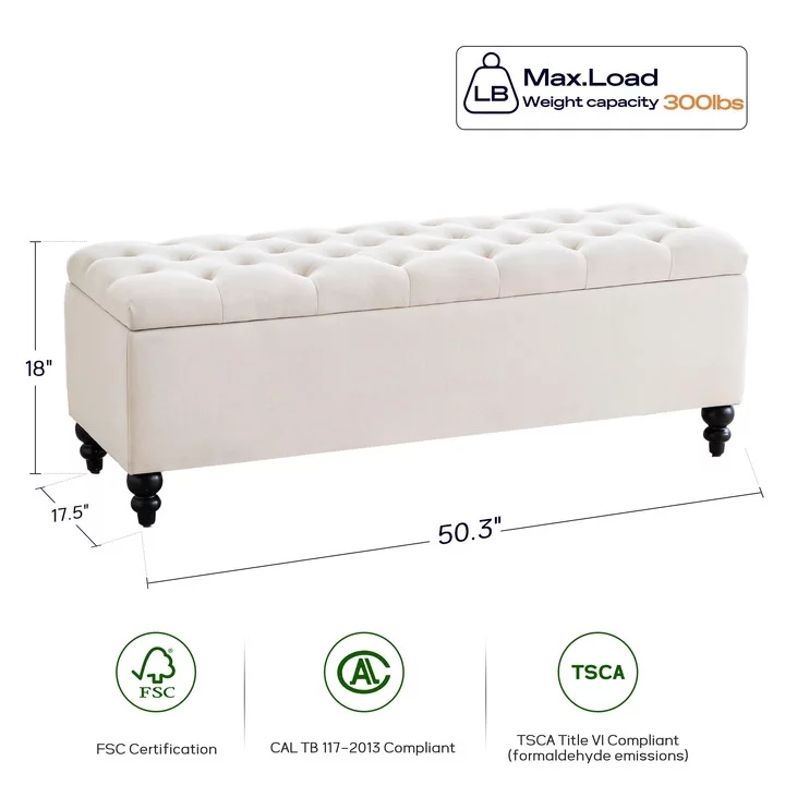 43" Wide Storage Bench Ottoman Upholstered Half Circle Bed Foot Stool with Tufted&Nail Home Bedroom in Ivory