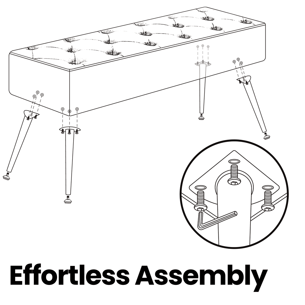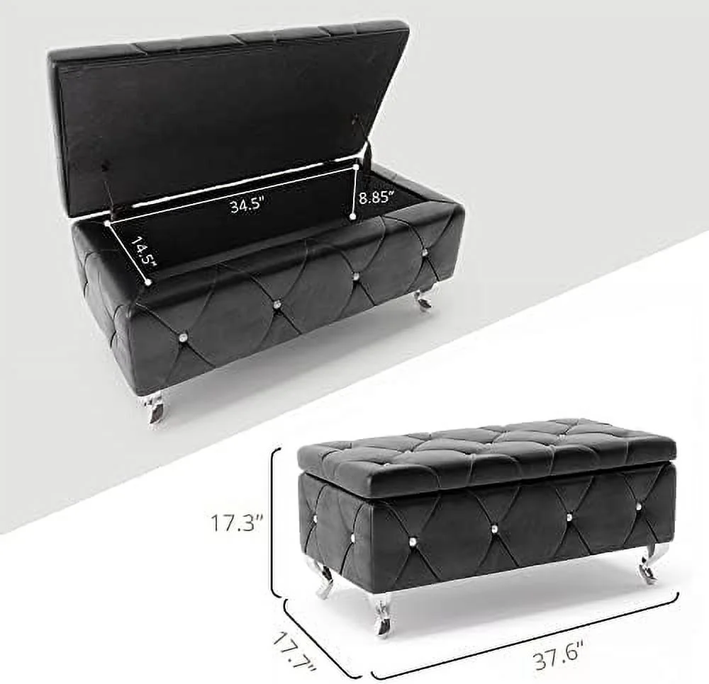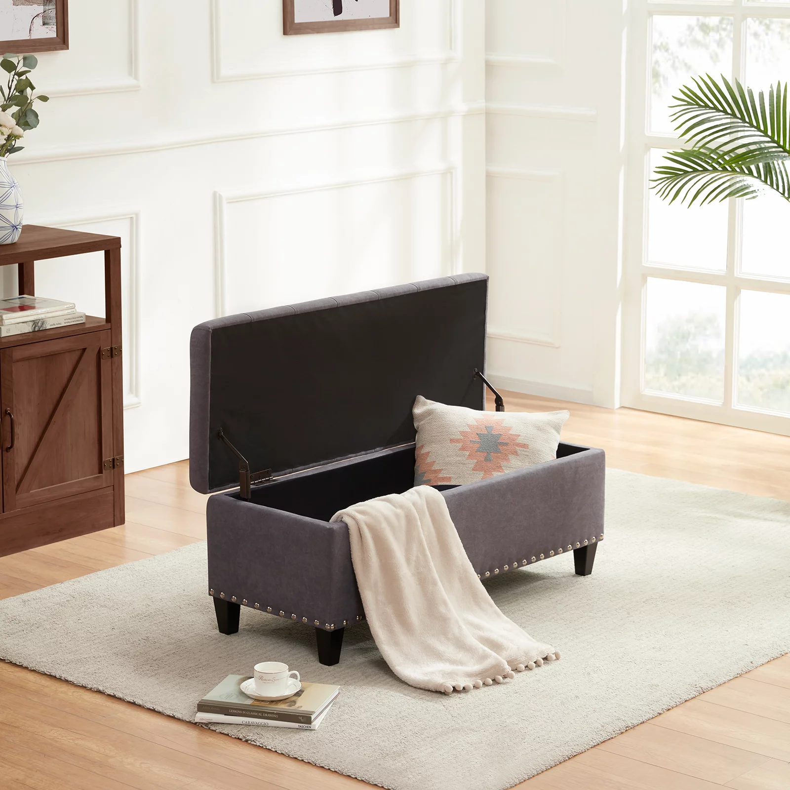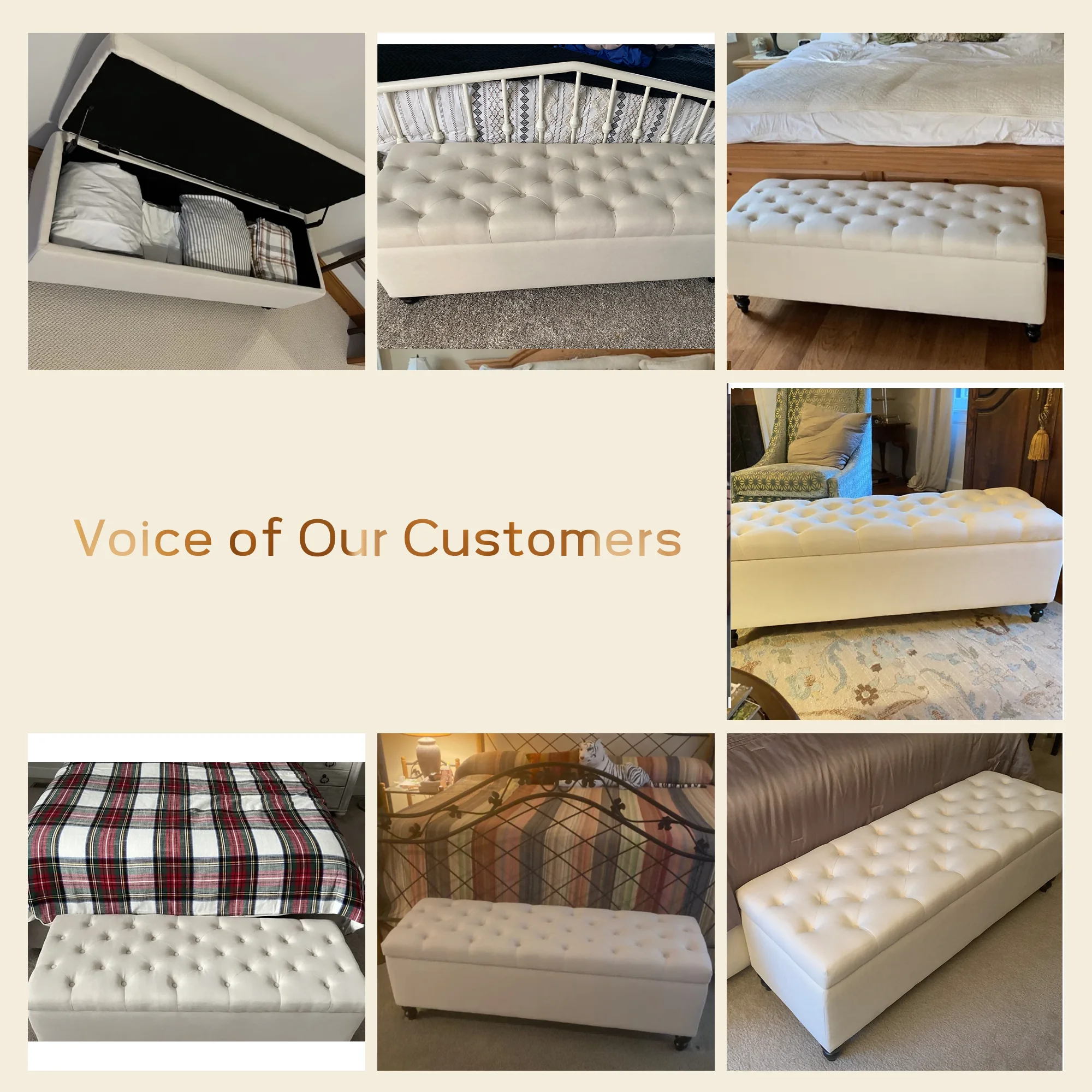 43" Wide Storage Bench Ottoman Upholstered Half Circle Bed Foot Stool with Tufted&Nail Home Bedroom in Ivory