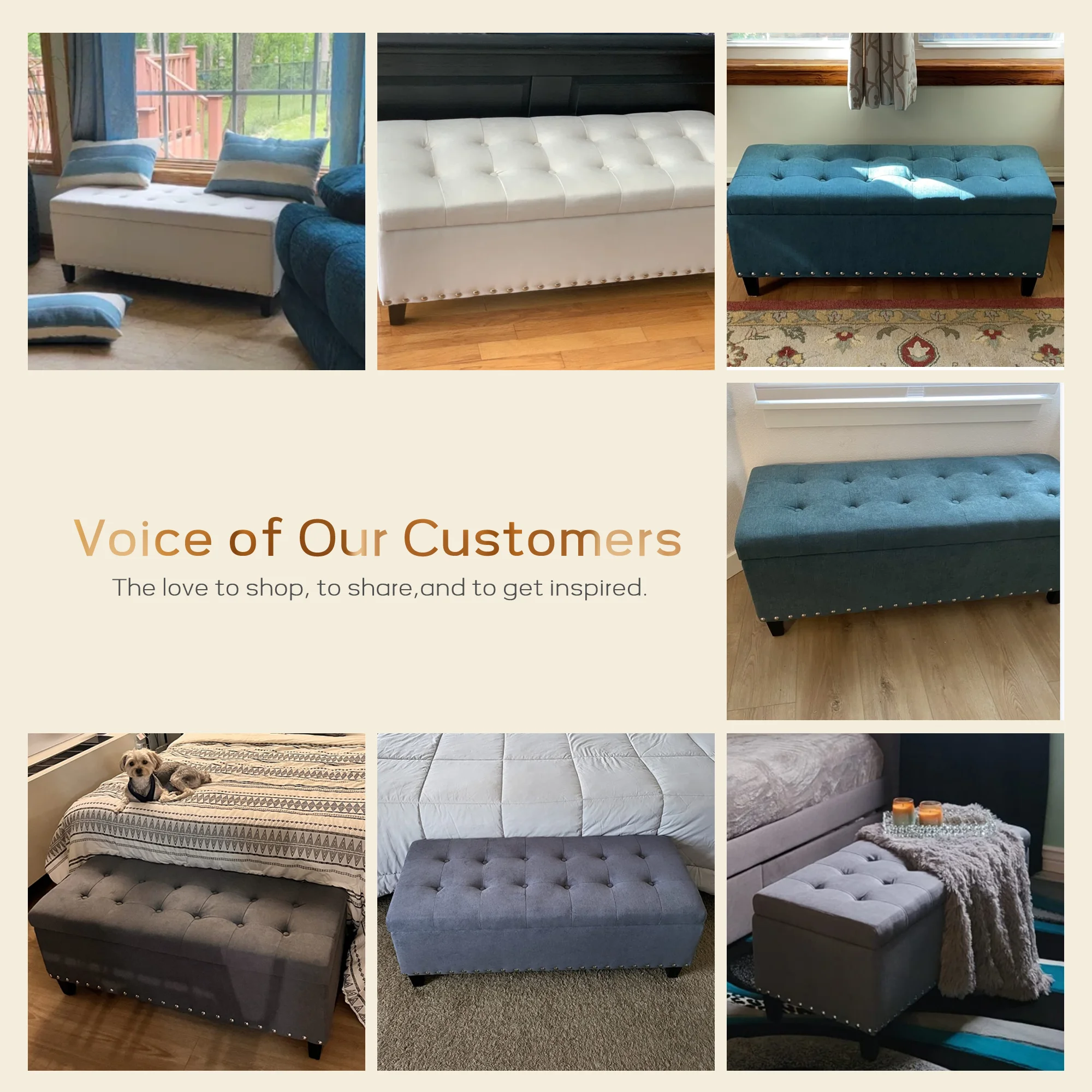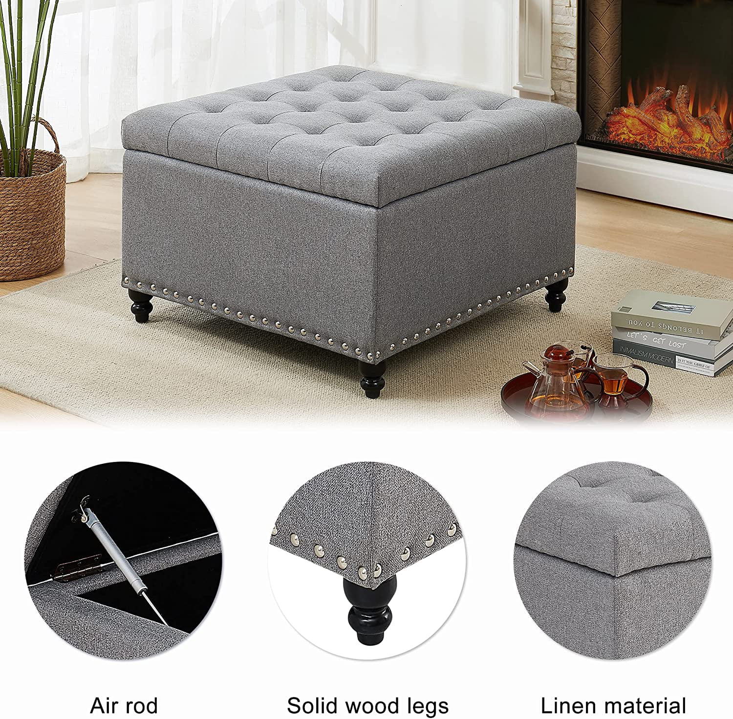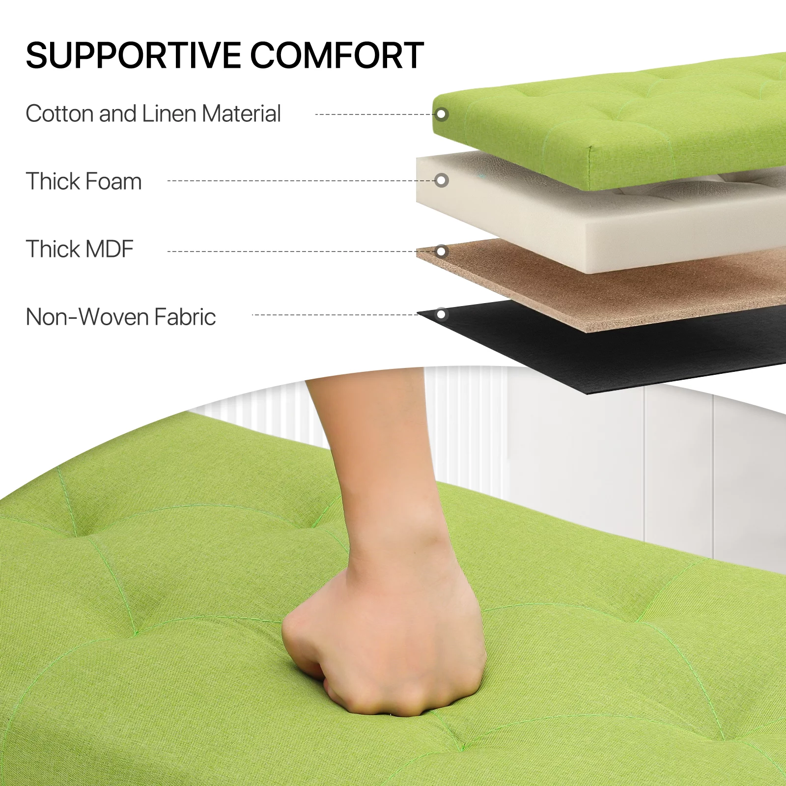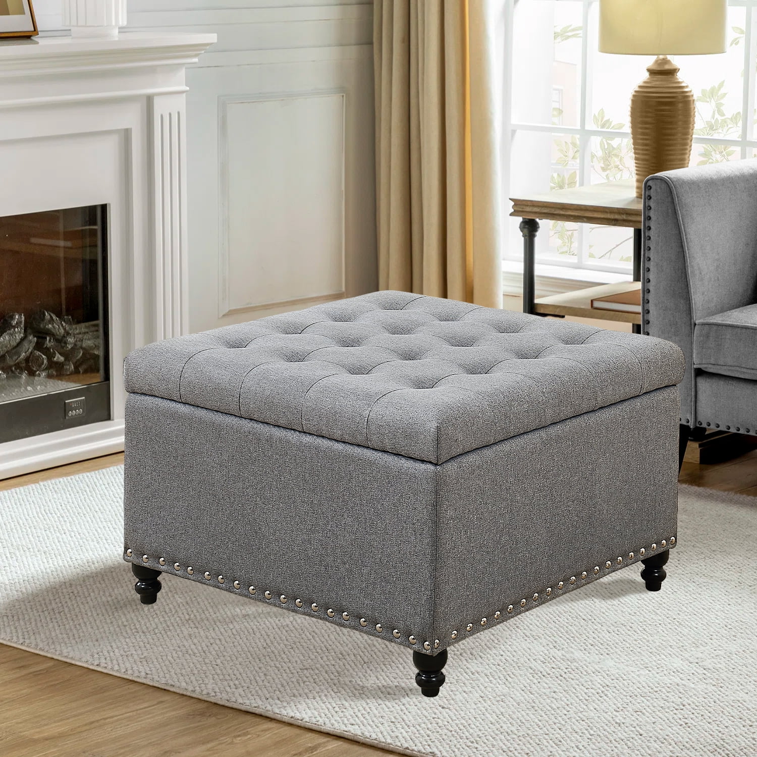 HOMCOM Linen Storage Ottoman Bench Storage Chest Tufted Ottoman Cube with Flipping Top