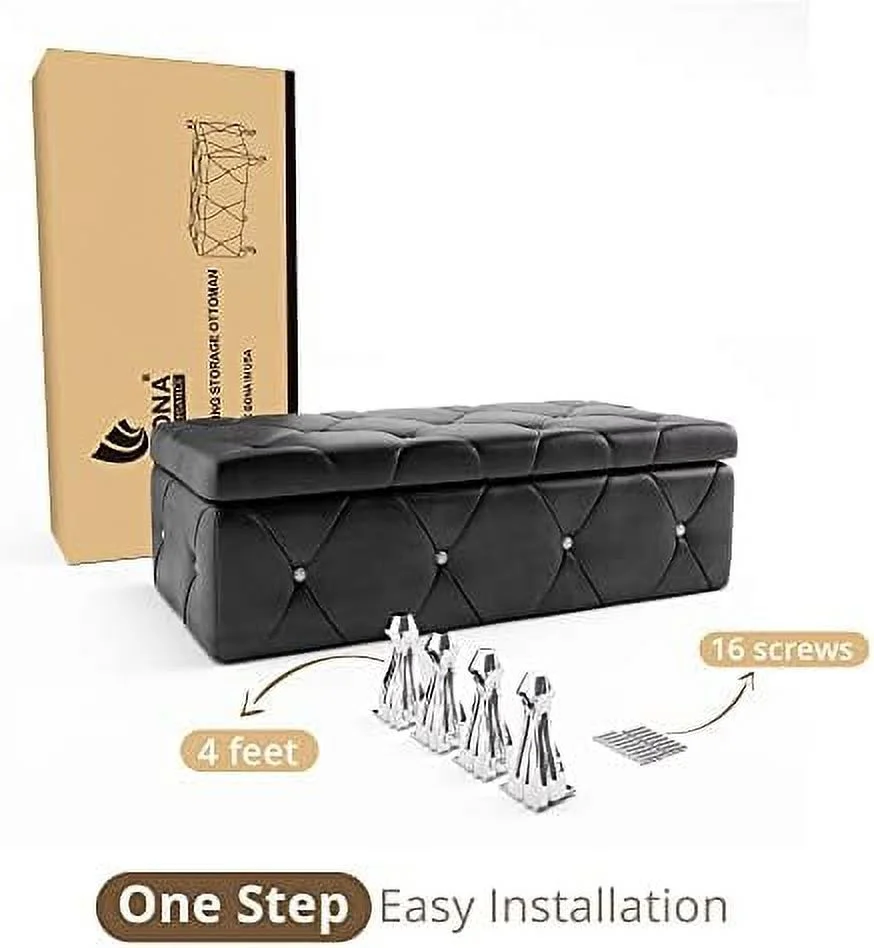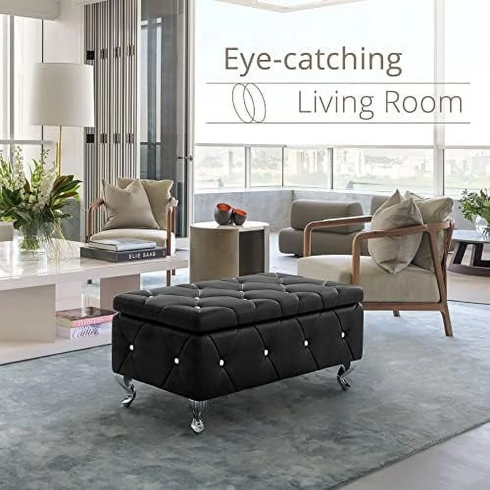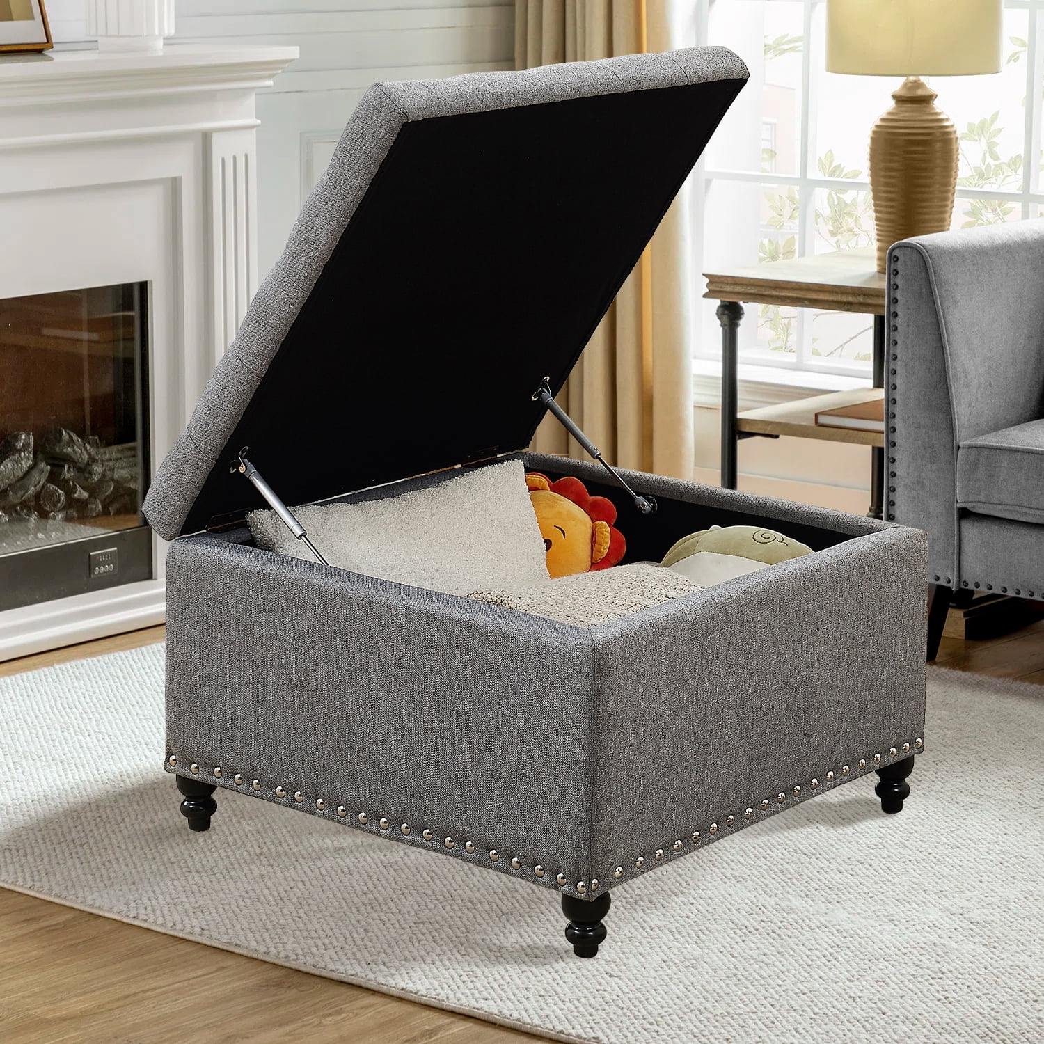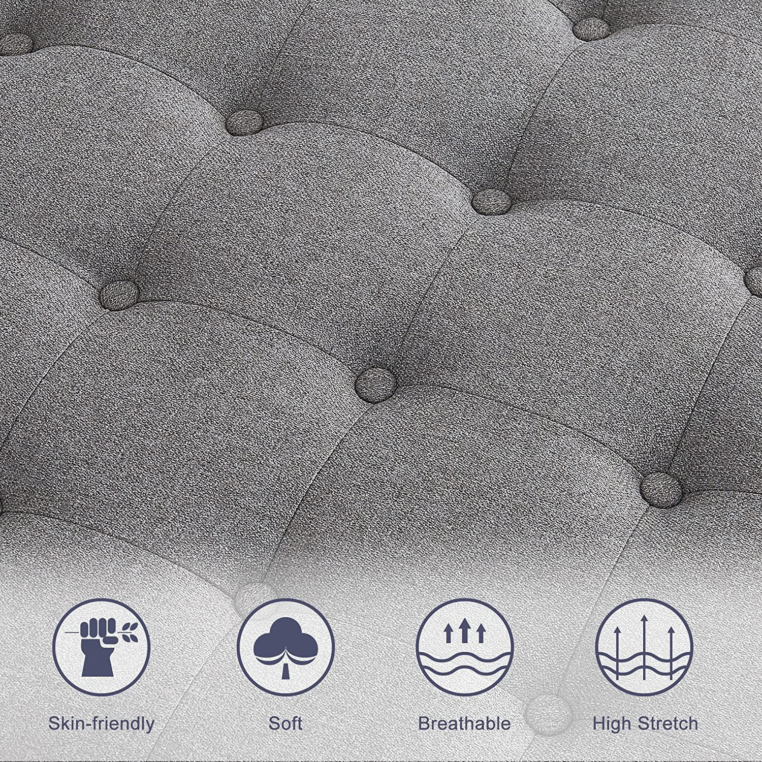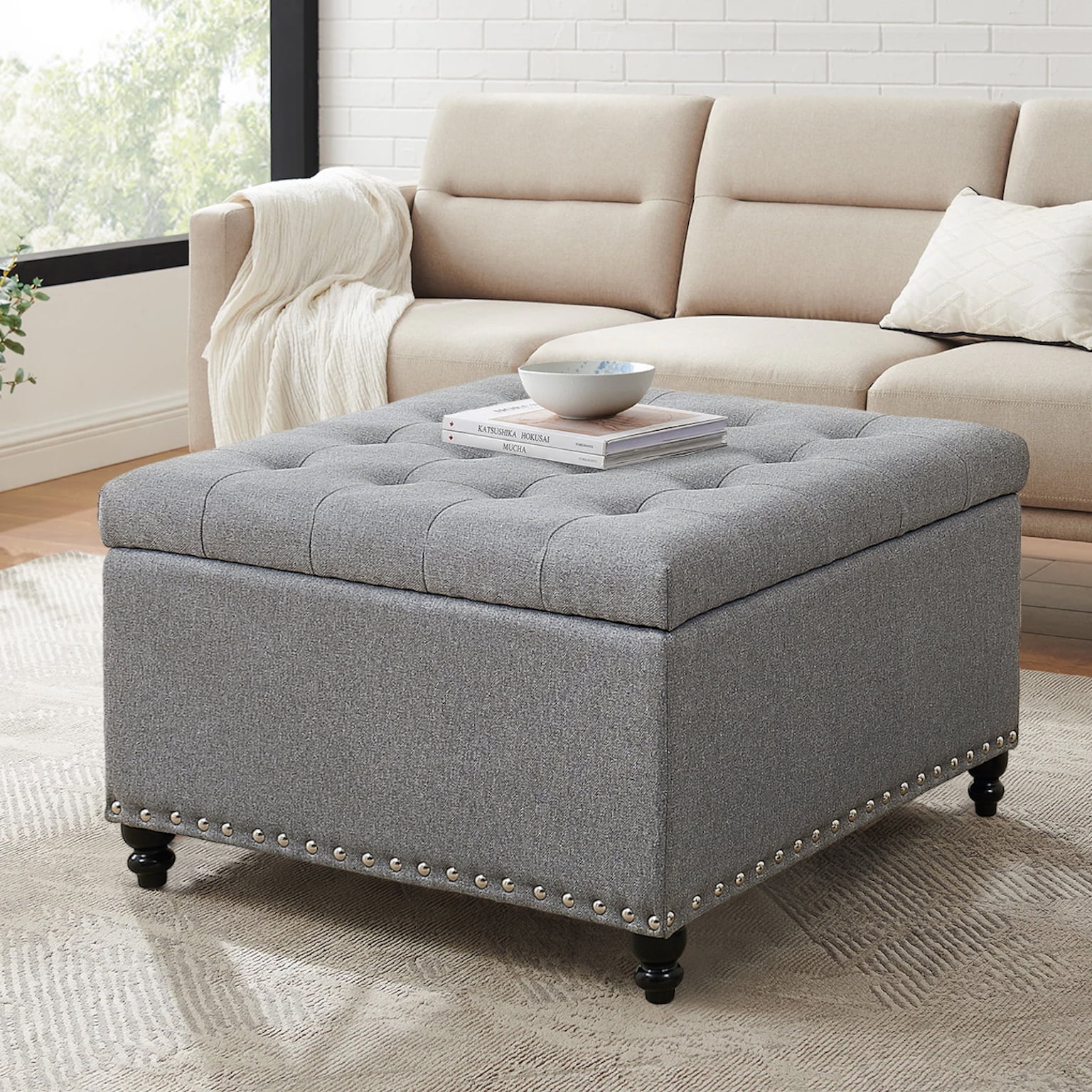 HOMCOM Linen Storage Ottoman Bench Storage Chest Tufted Ottoman Cube with Flipping Top