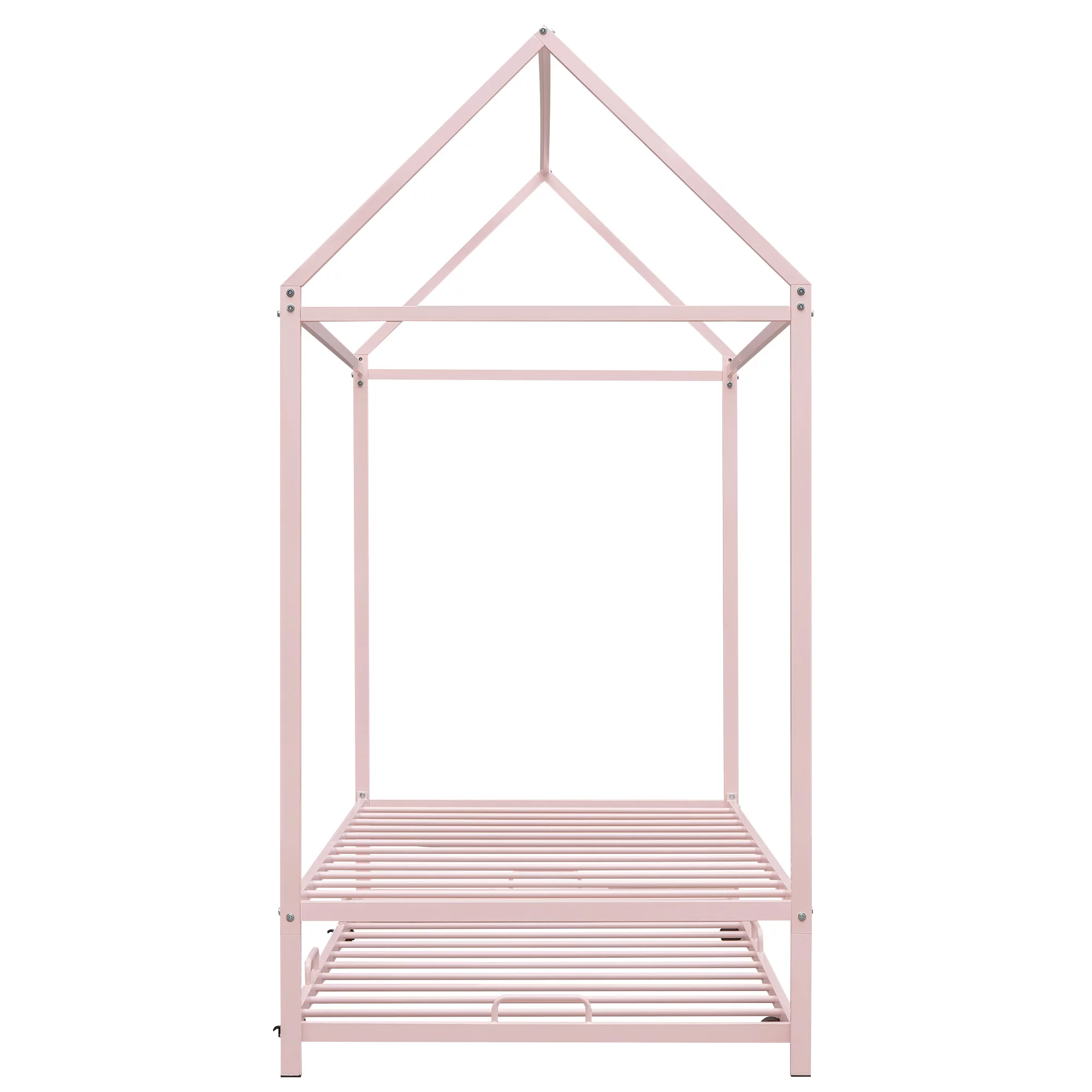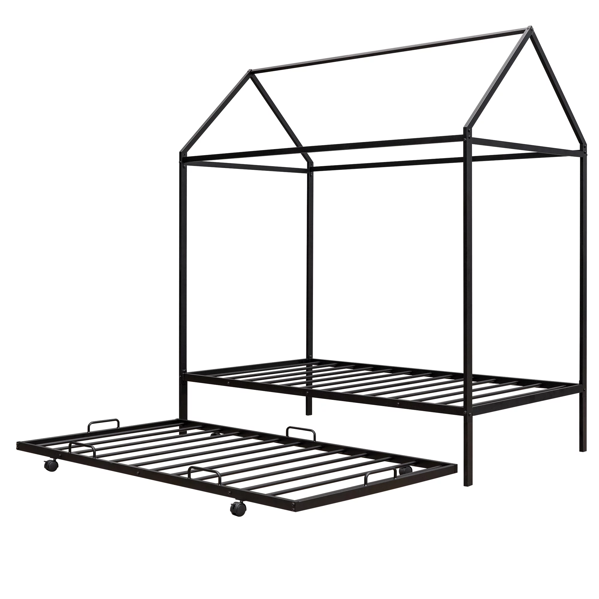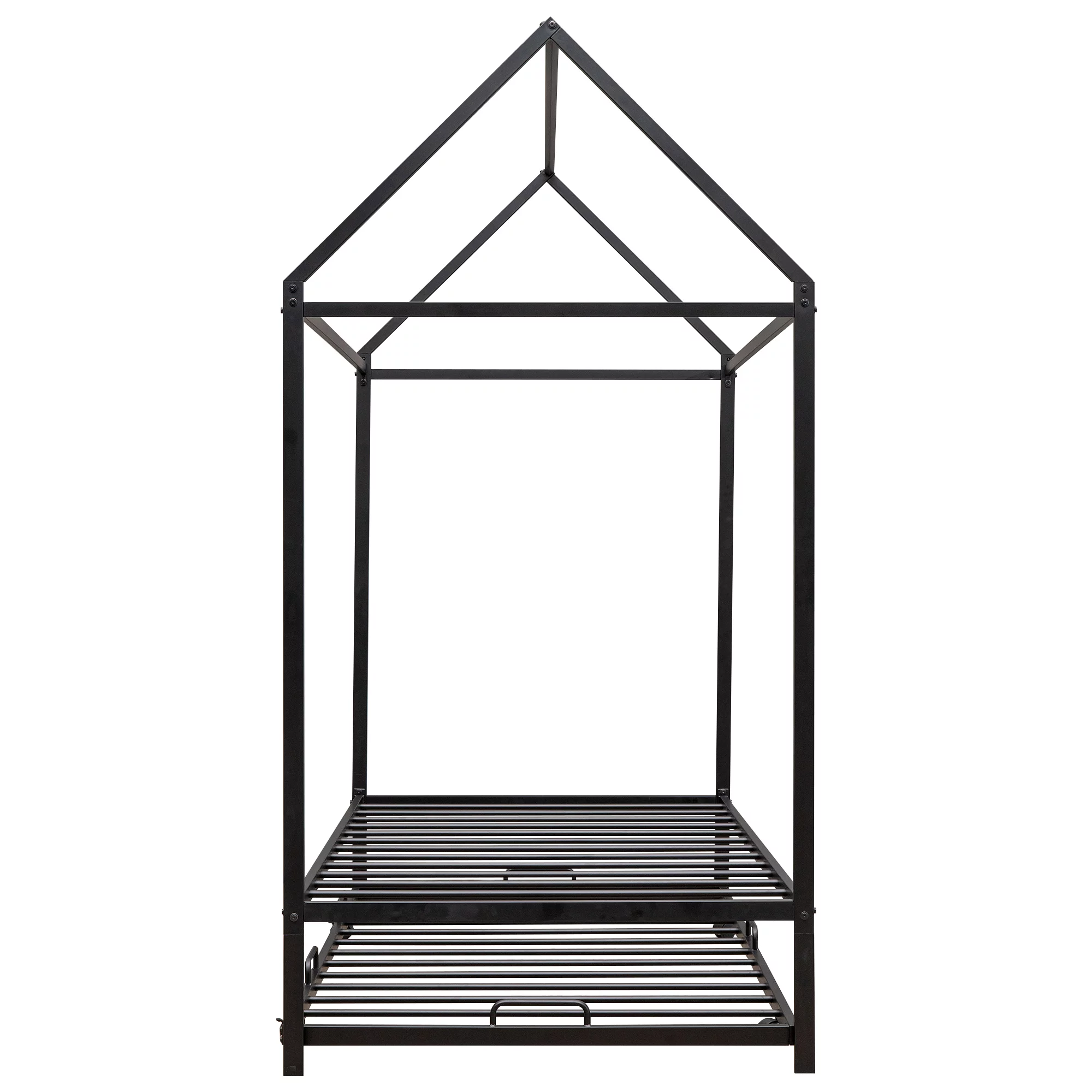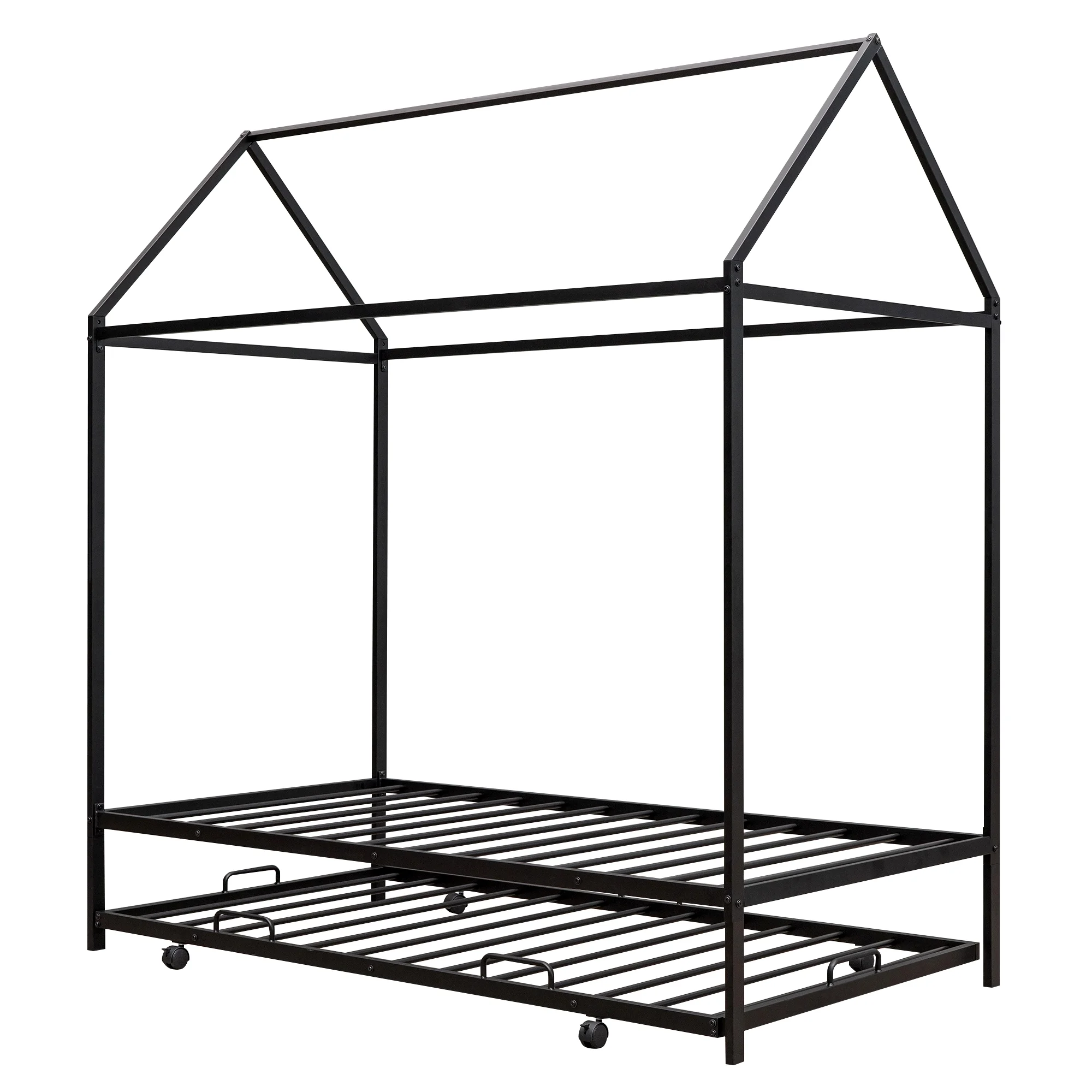 CoSoTower Twin Size Kids House Bed With Trundle, Metal House Bed Black