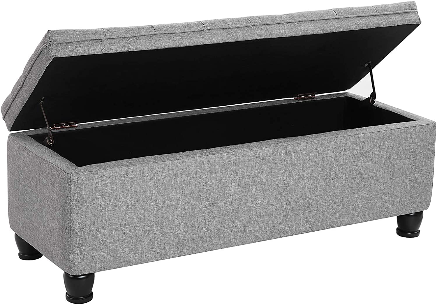 SONGMICS 46.5" Storage Ottoman Bench Storage Bench Bedroom Bench 330lb Load Capacity Solid Wood Legs Light Gray