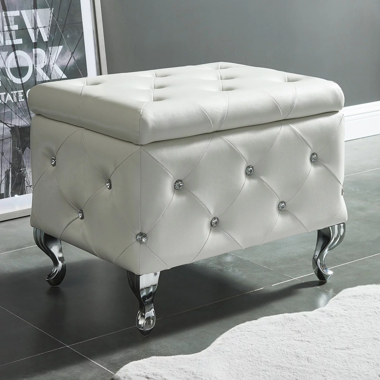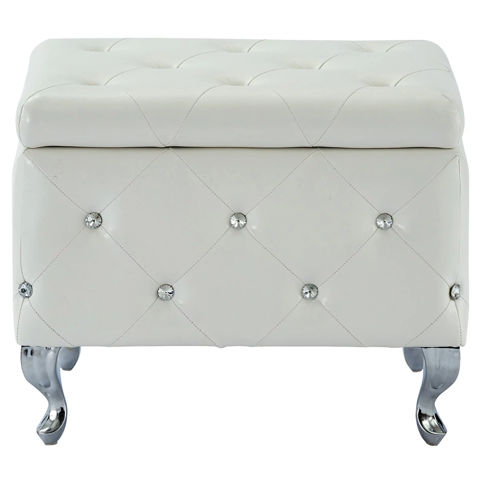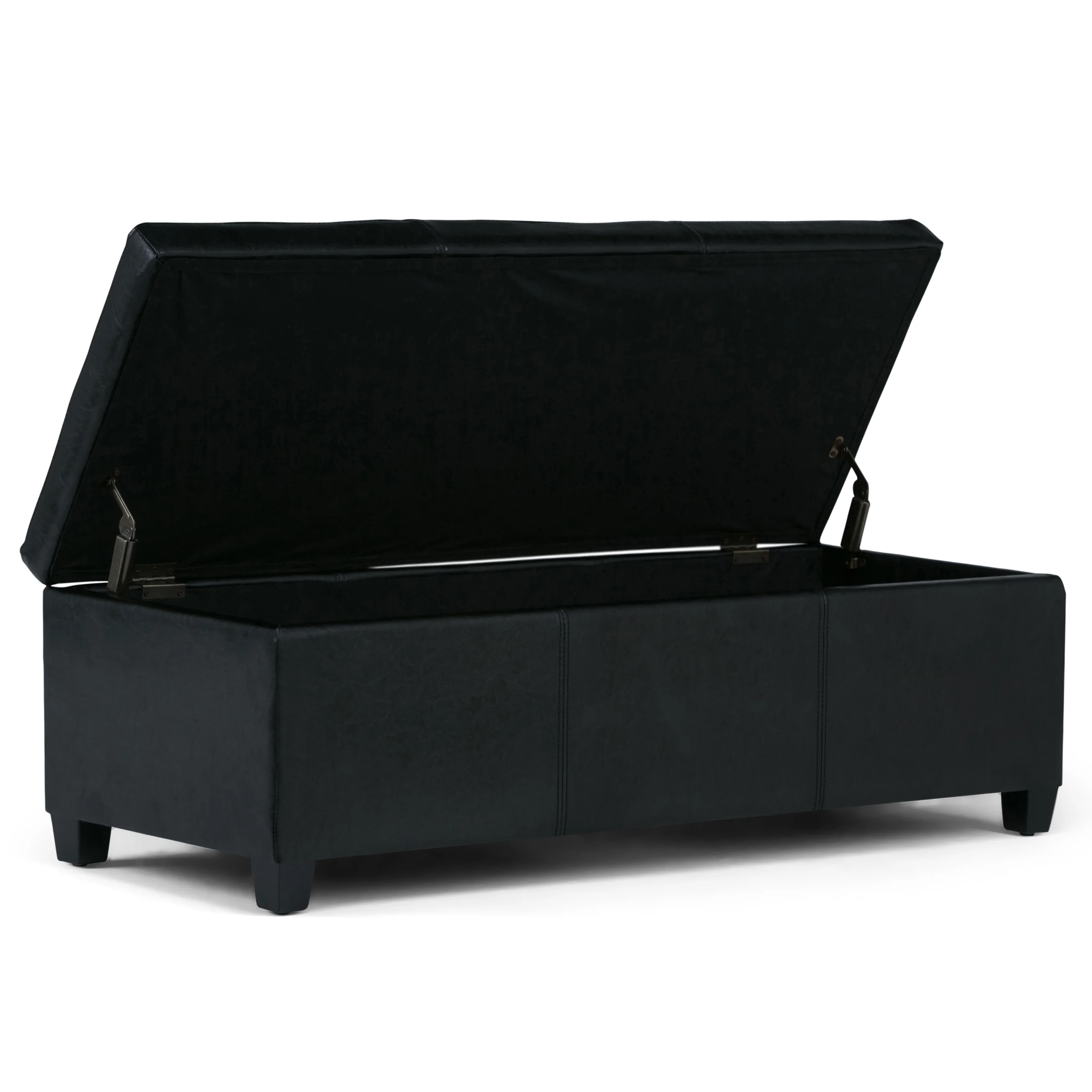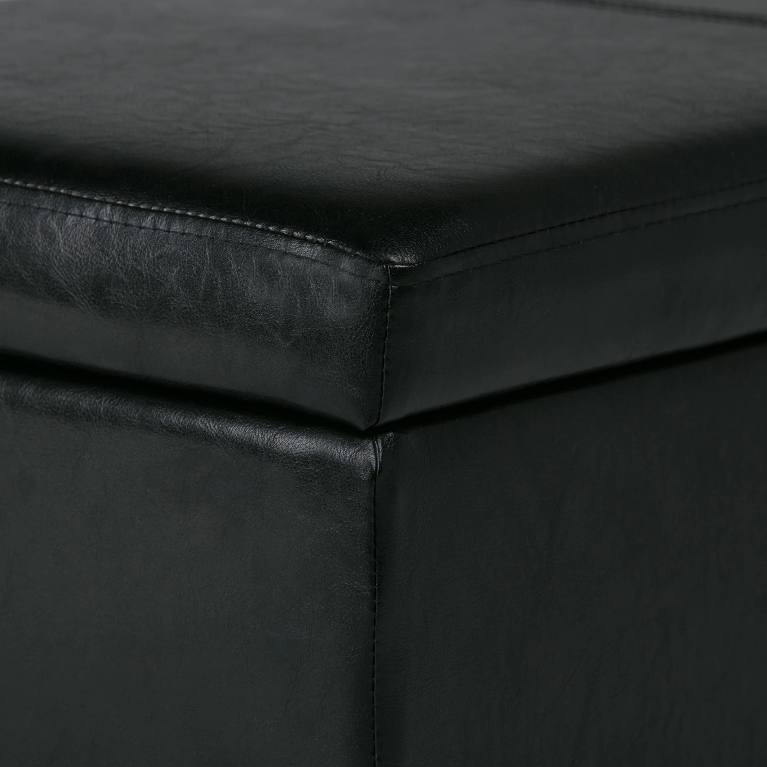 Ainehome Faux Leather Storage Ottoman Bench Rectangular Footrest with Foam Padded Seat, Black