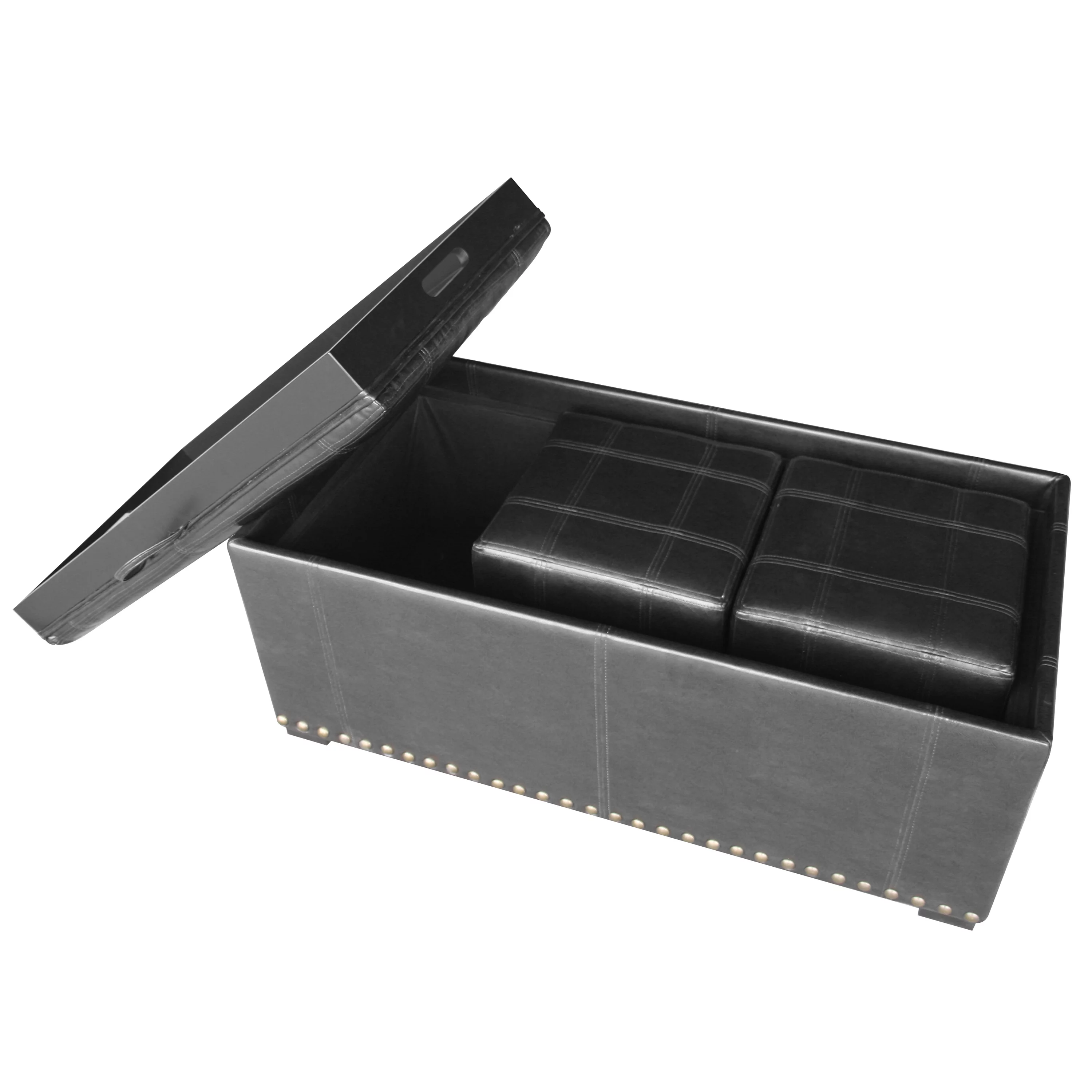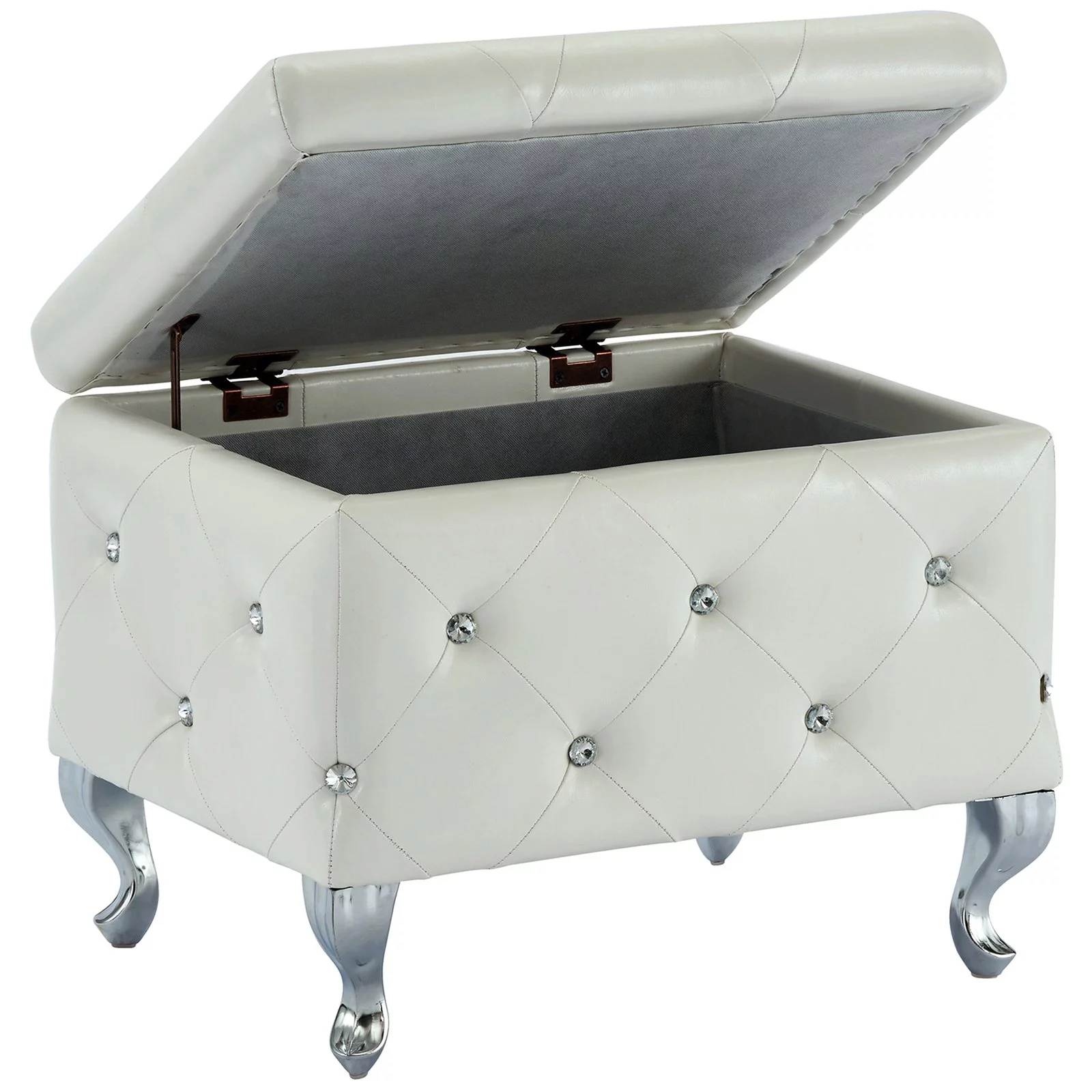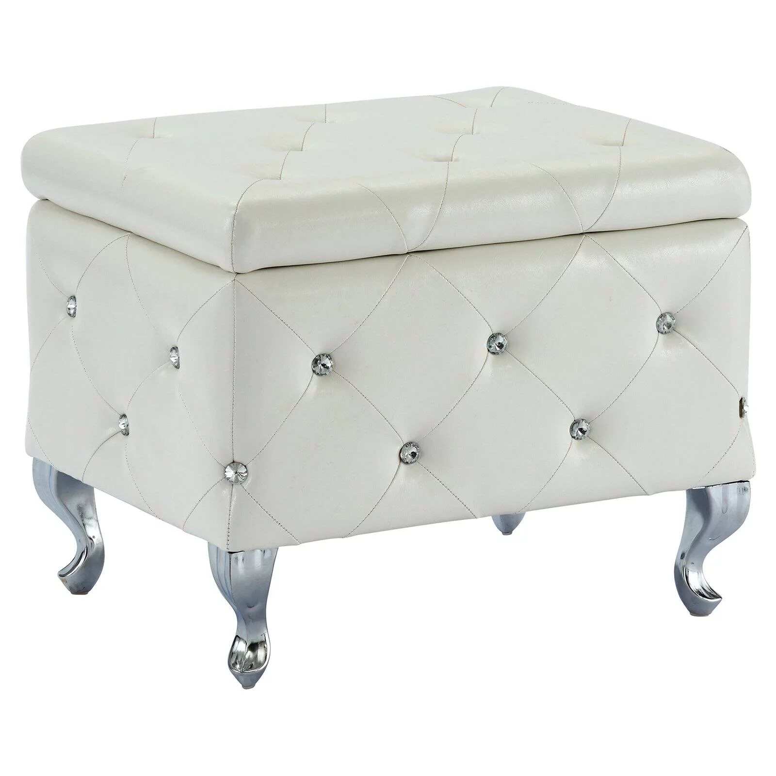 Ainehome Faux Leather Storage Ottoman Bench Rectangular Footrest with Foam Padded Seat, Black