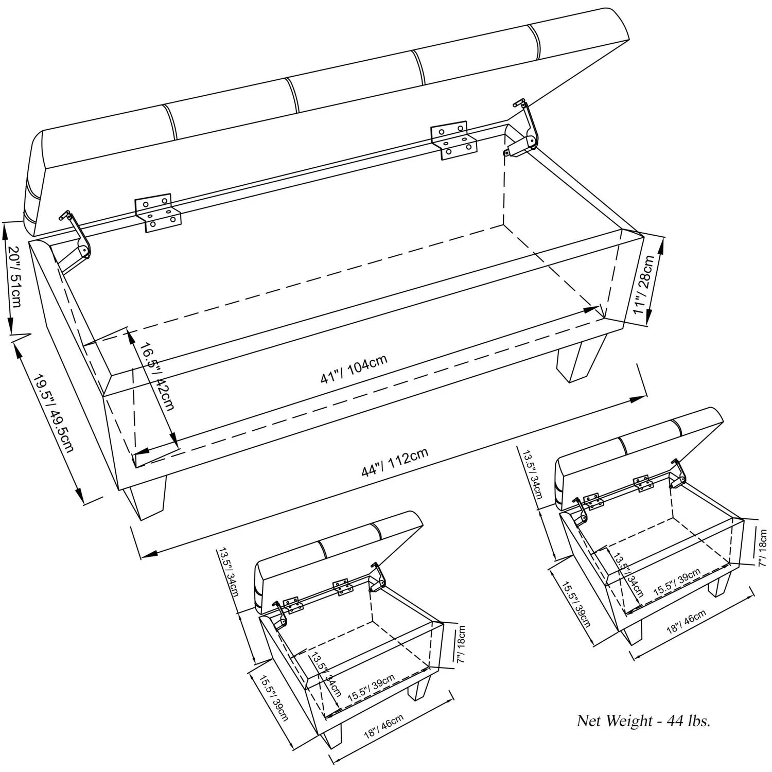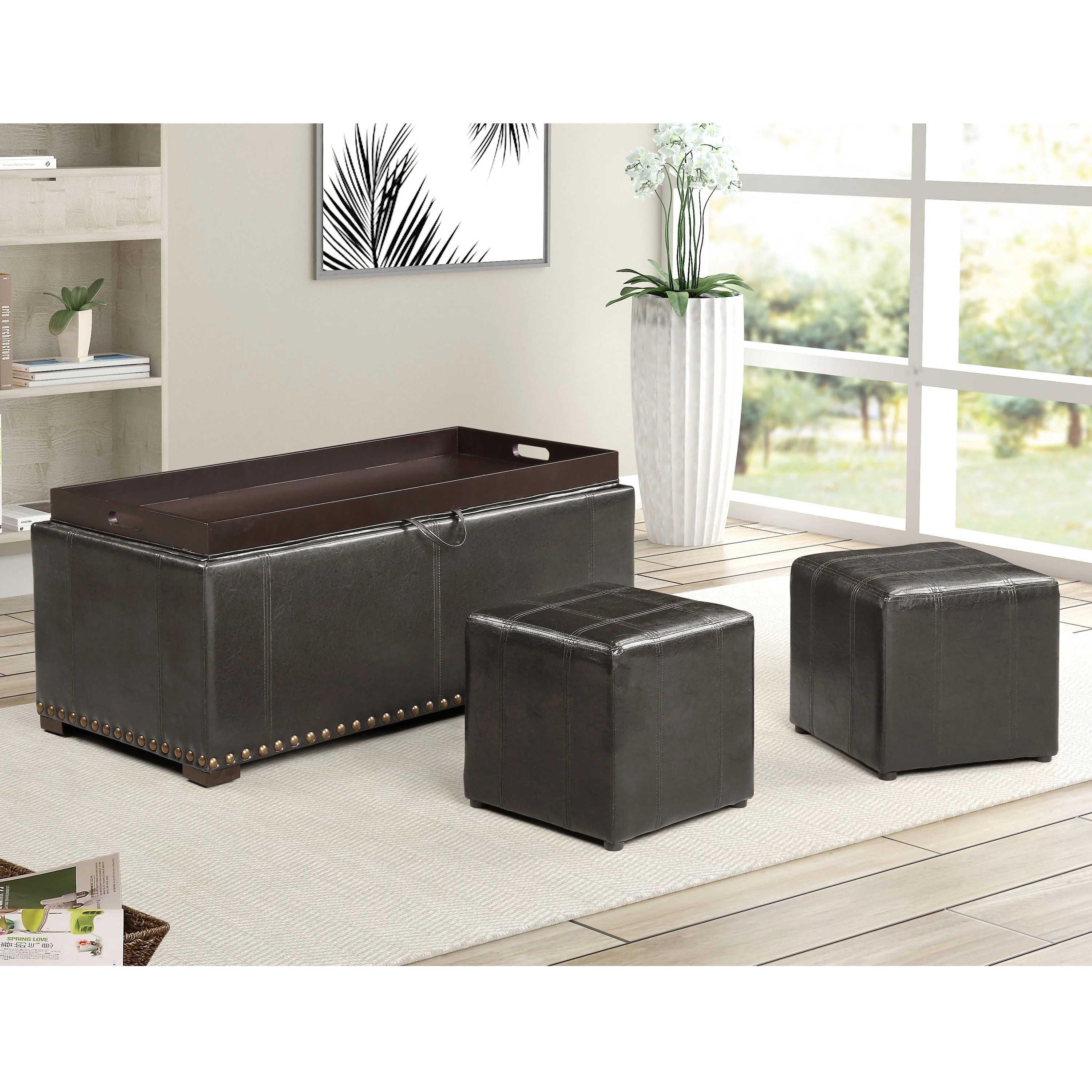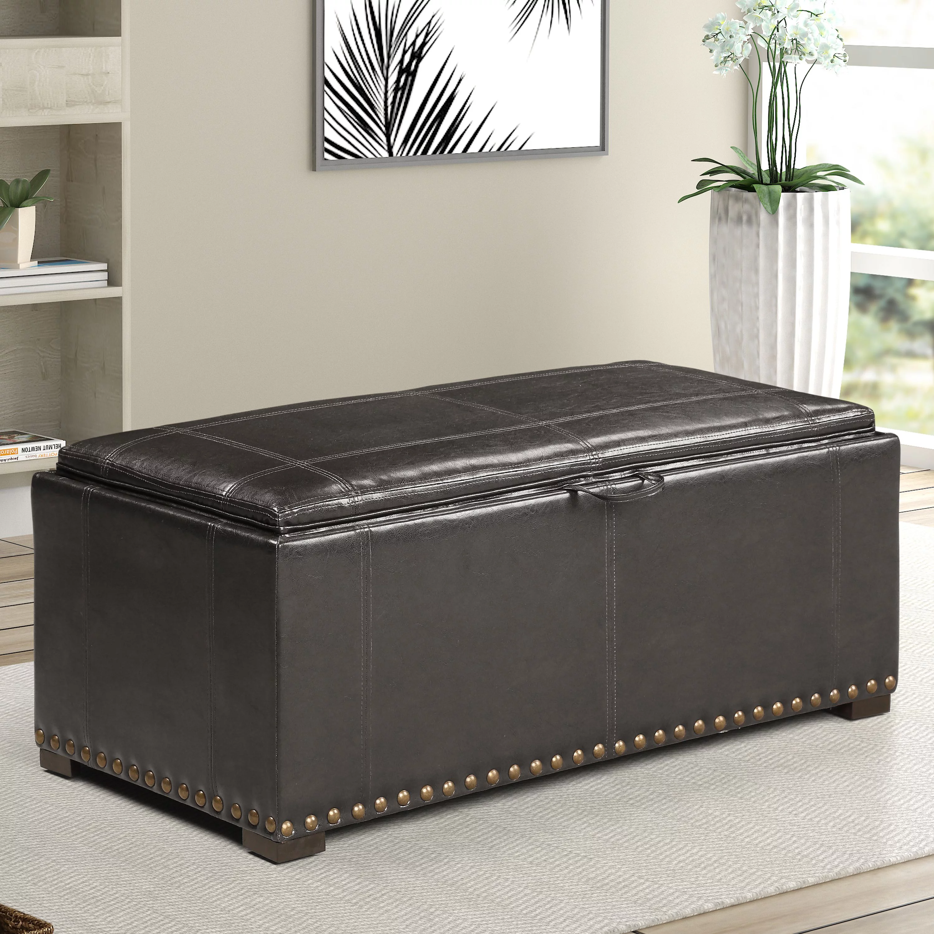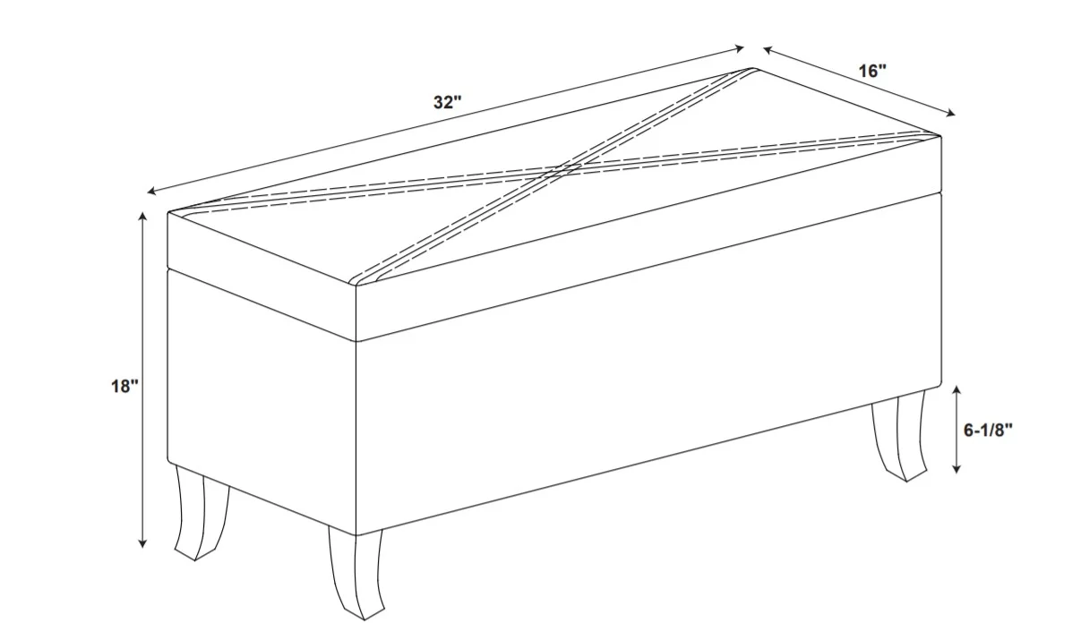 Ainehome Faux Leather Storage Ottoman Bench Rectangular Footrest with Foam Padded Seat, Black