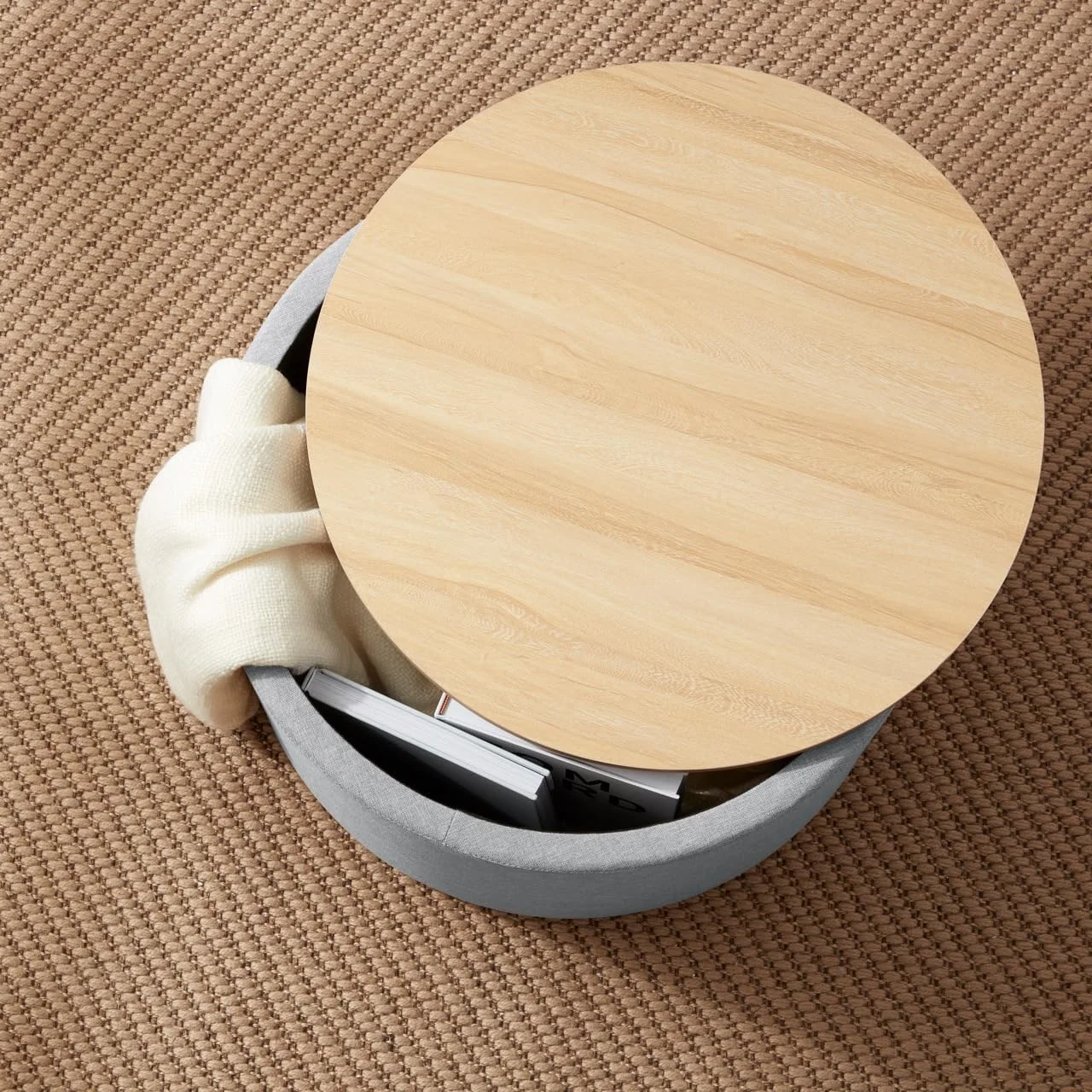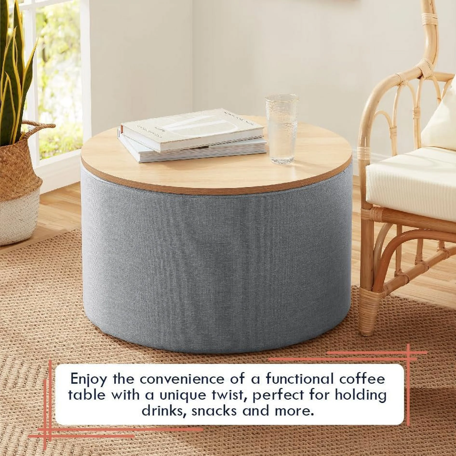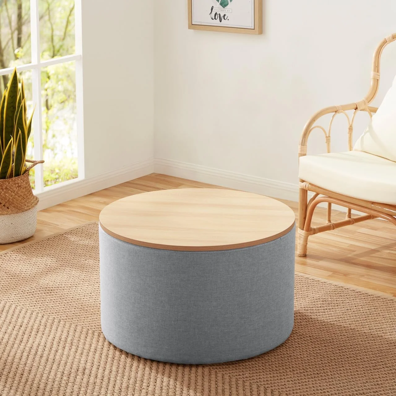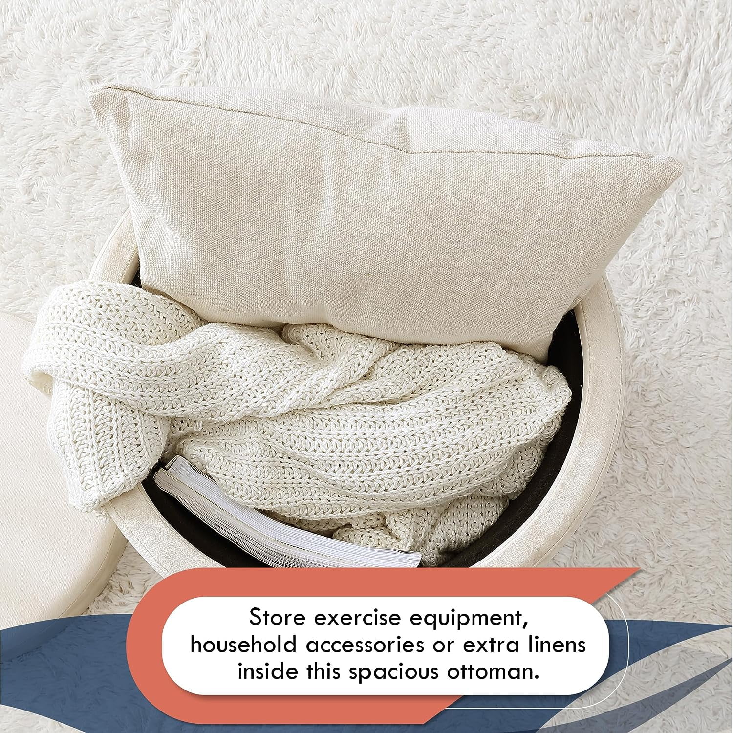 Upholstered 30" Round Storage Button Ottoman, Nail Head Tufted Seating, with Removable Lid Dark Grey