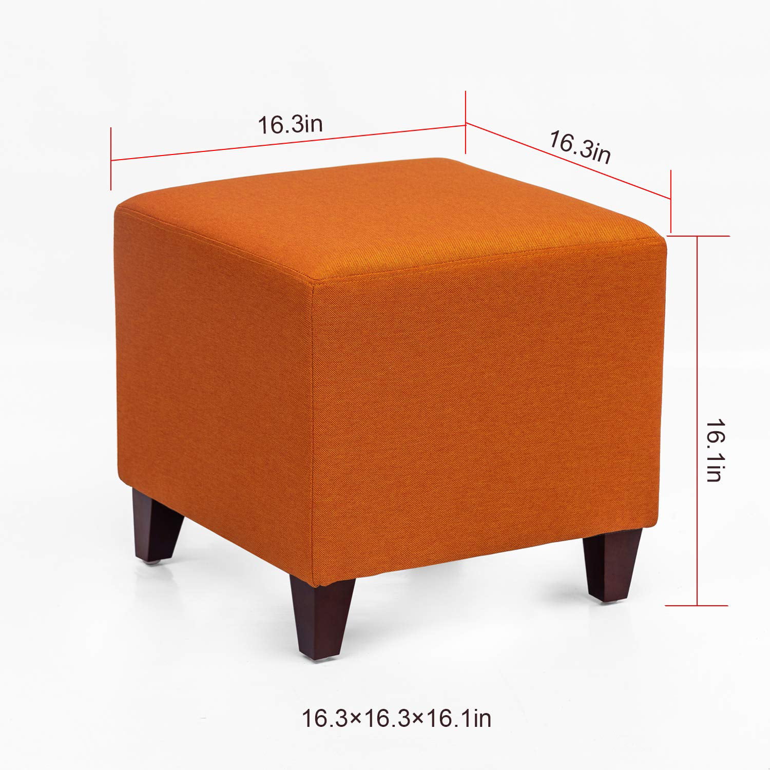 Homebeez Fabric Ottoman Square Footstool Padded Footrest Seat Sofa Footrest Extra Seating Orange
