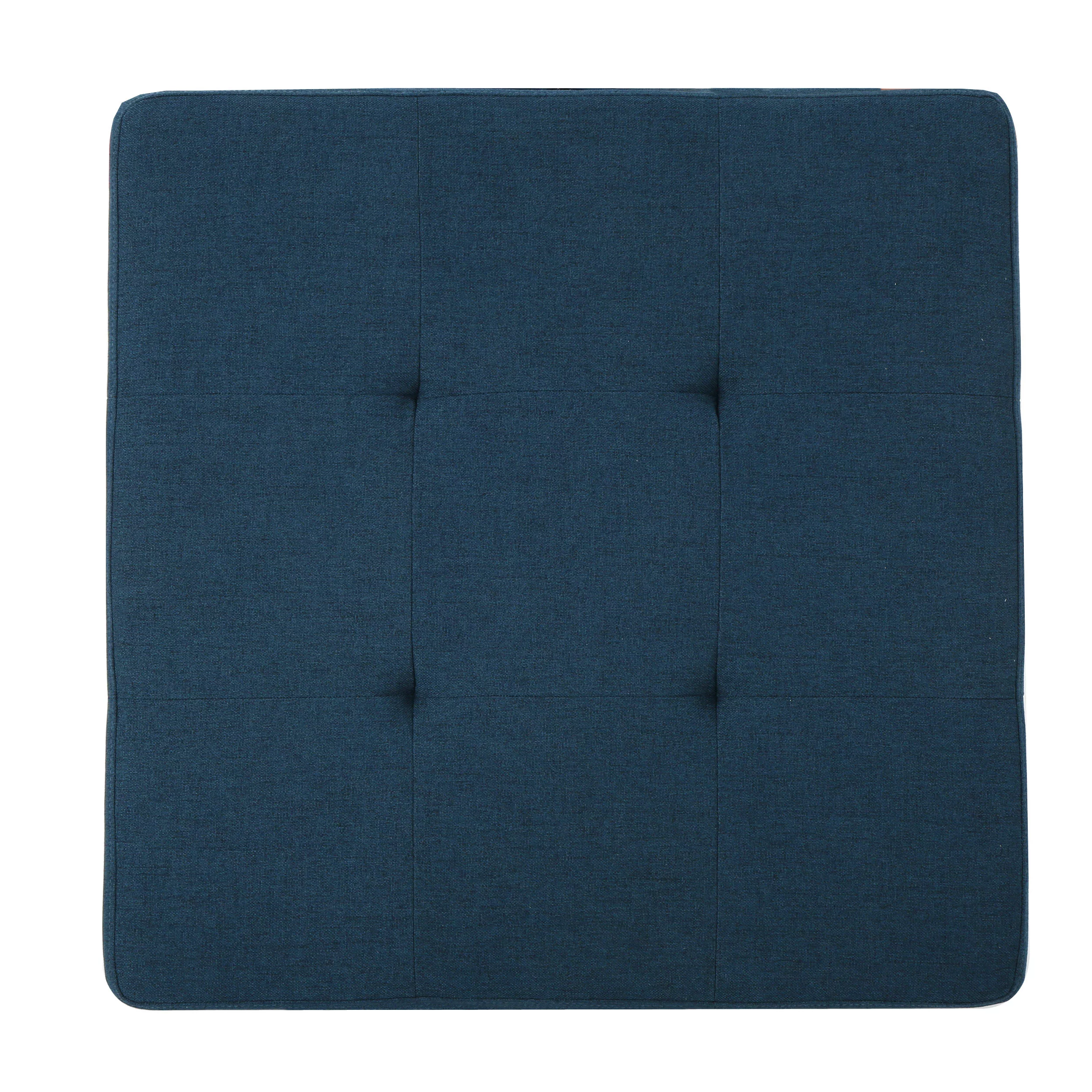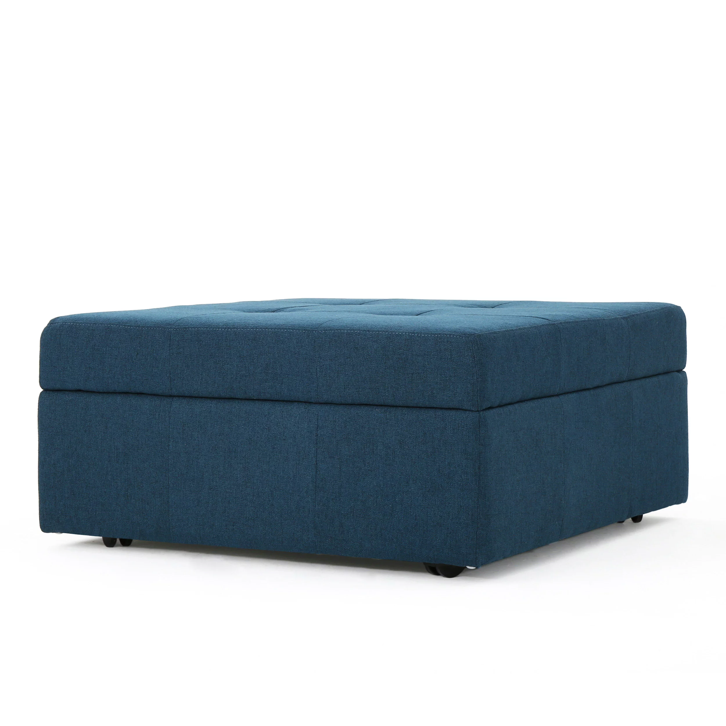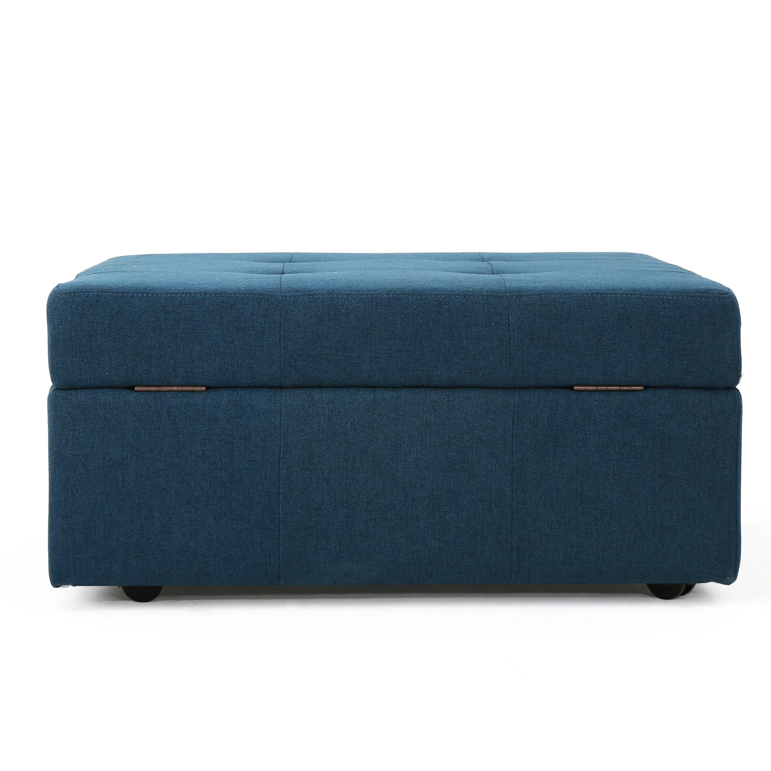 Noble House Chastity Contemporary Tufted Fabric Storage Ottoman with Rolling Casters, Navy Blue