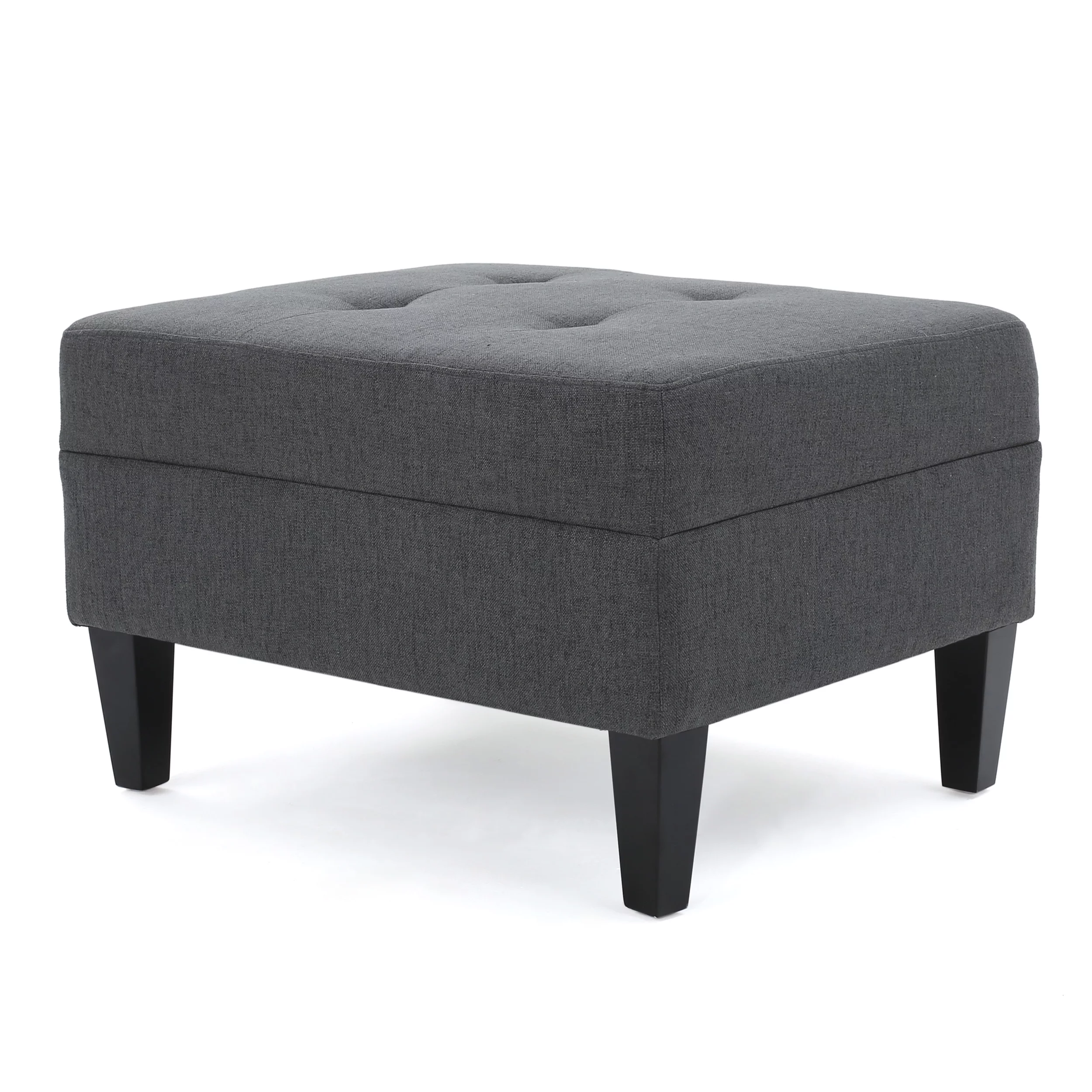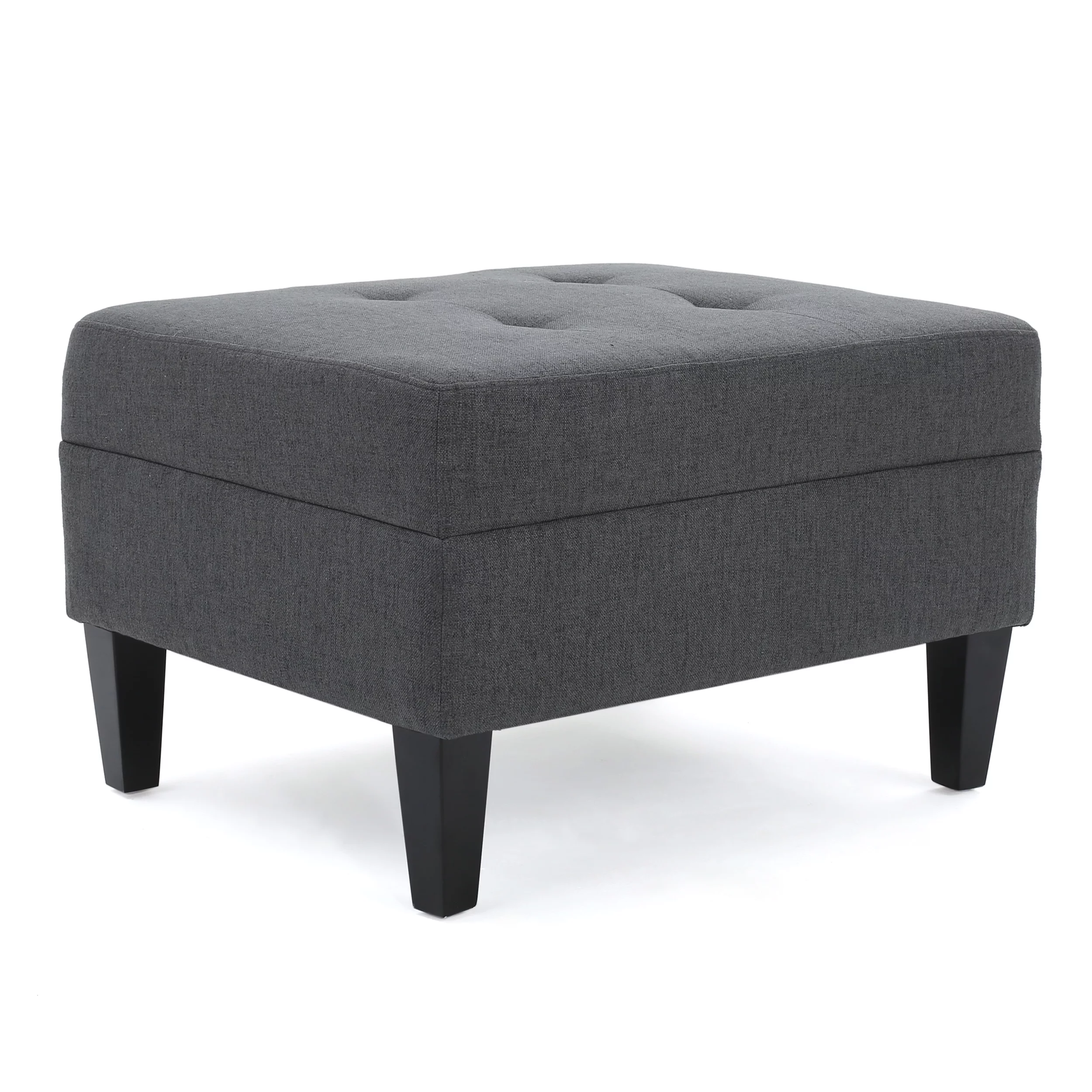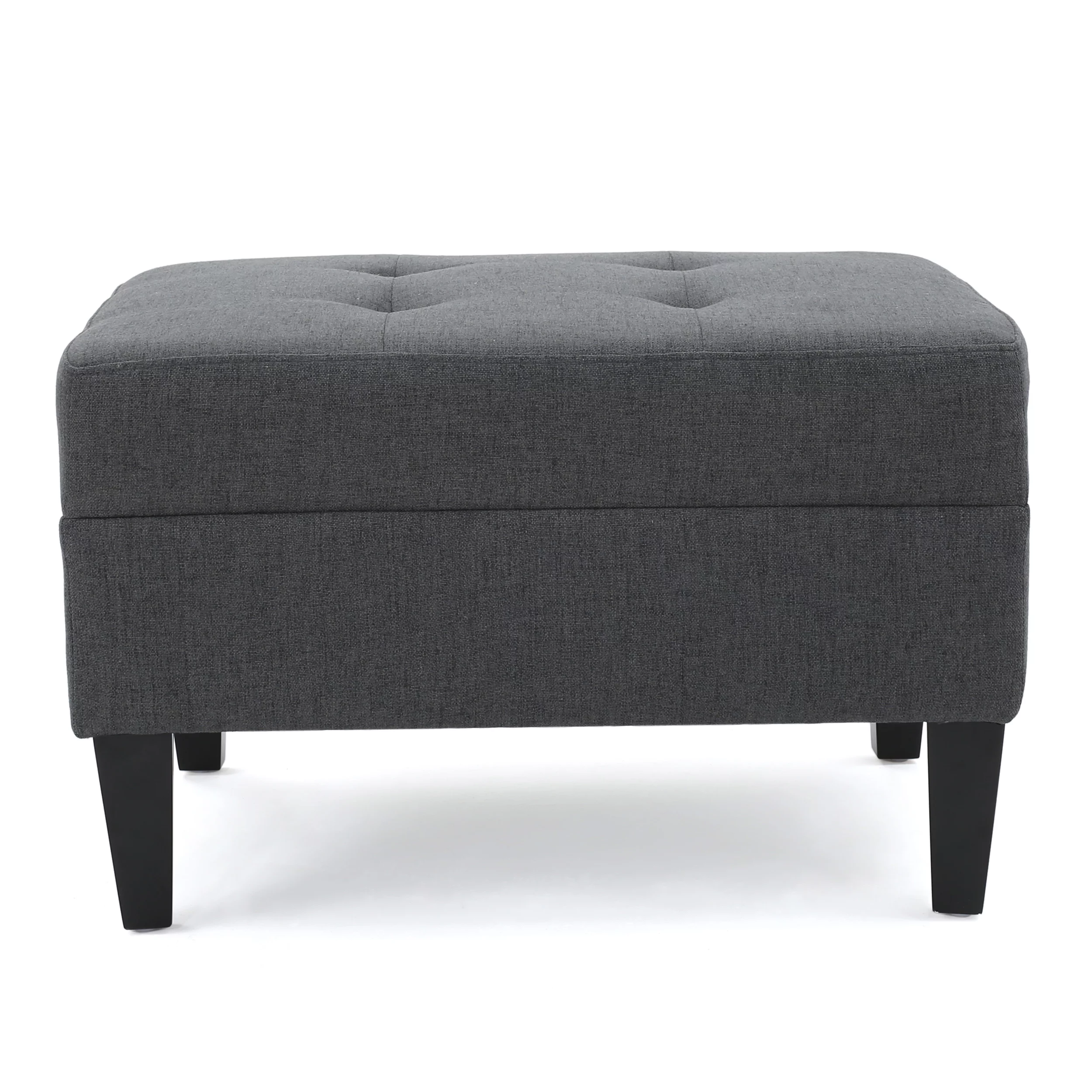 Noble House Chastity Contemporary Tufted Fabric Storage Ottoman with Rolling Casters, Navy Blue