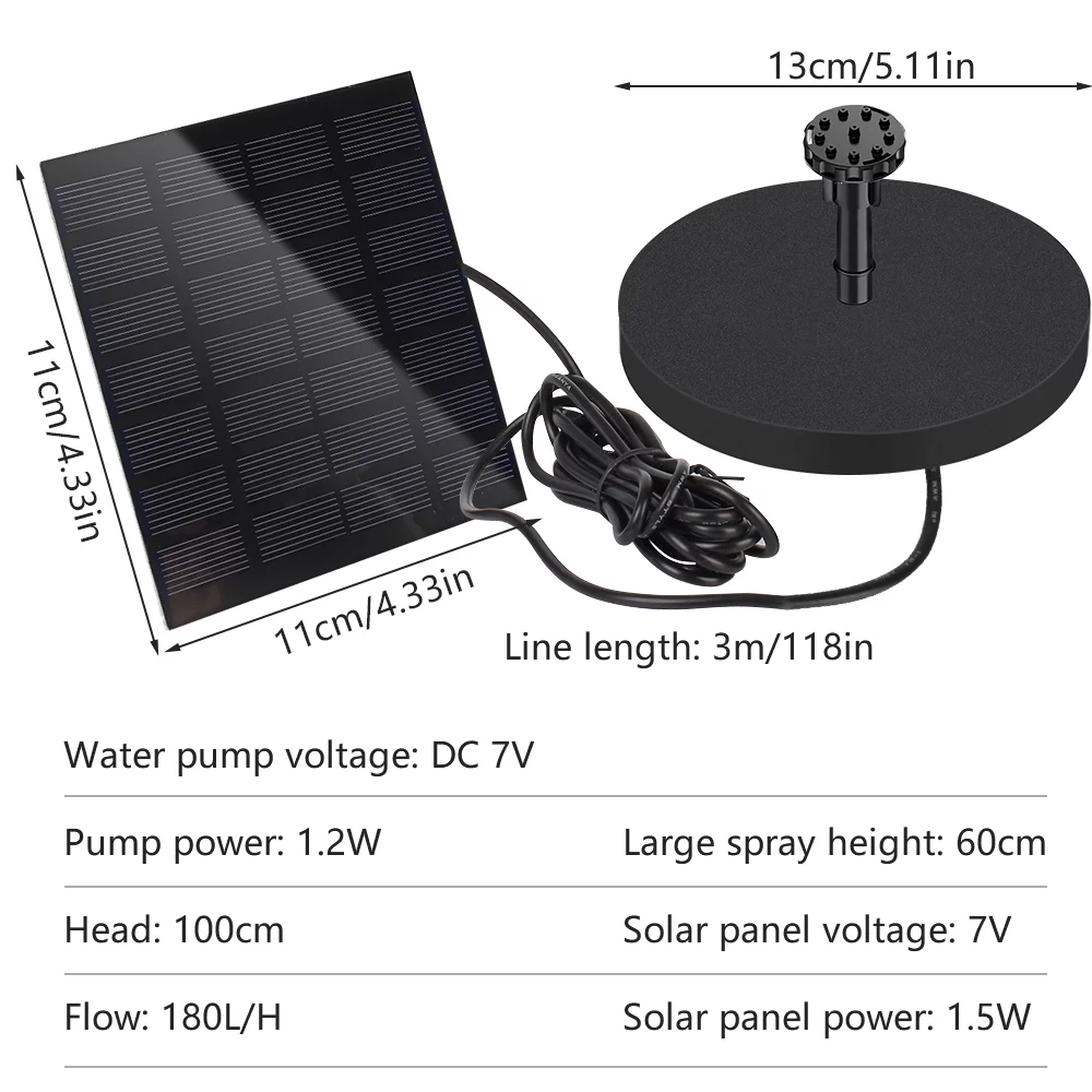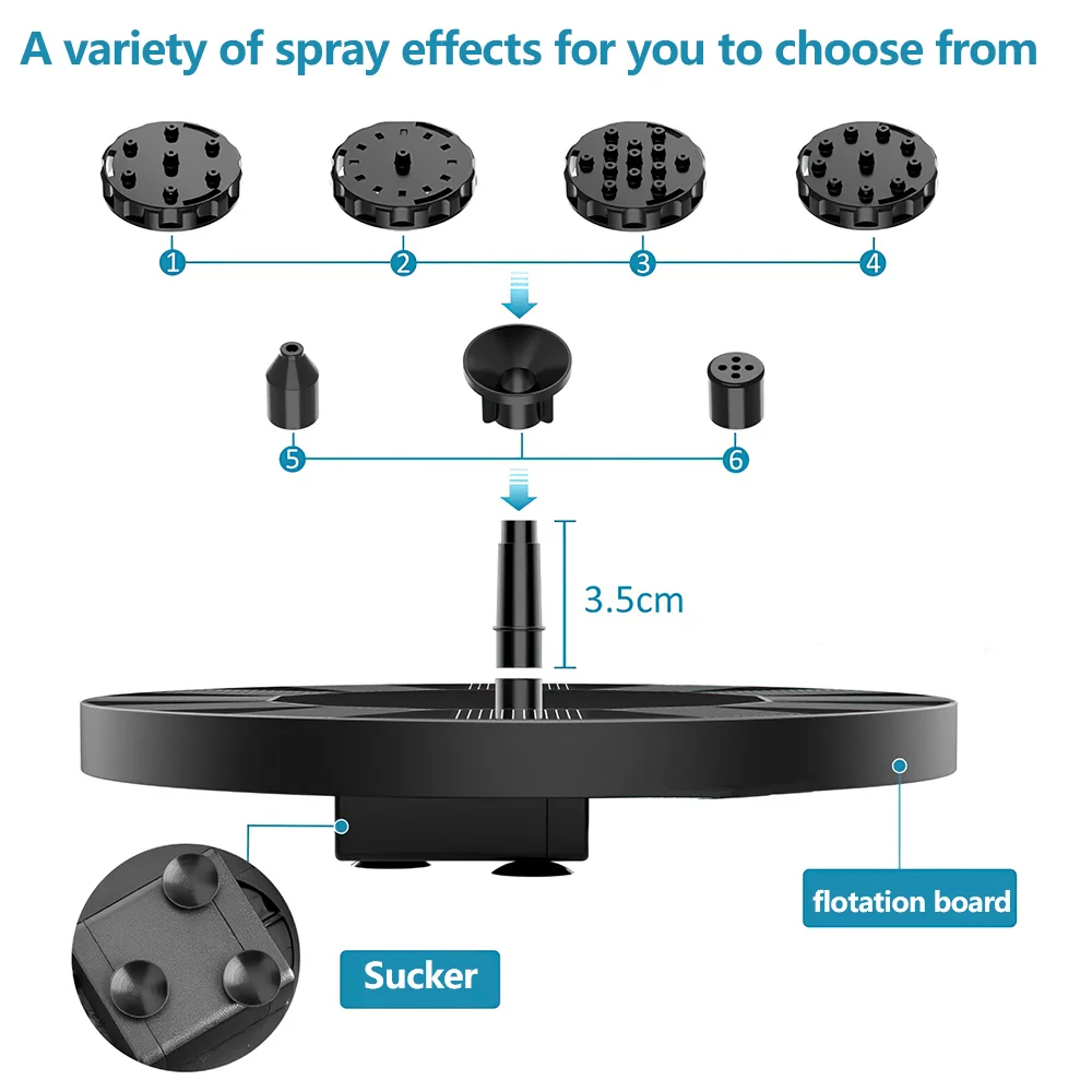 1.5W Solar Fountain Pump Kit,DFITO Outdoor Floating Water Pump with 6 Nozzles for Bird Bath Ponds Garden