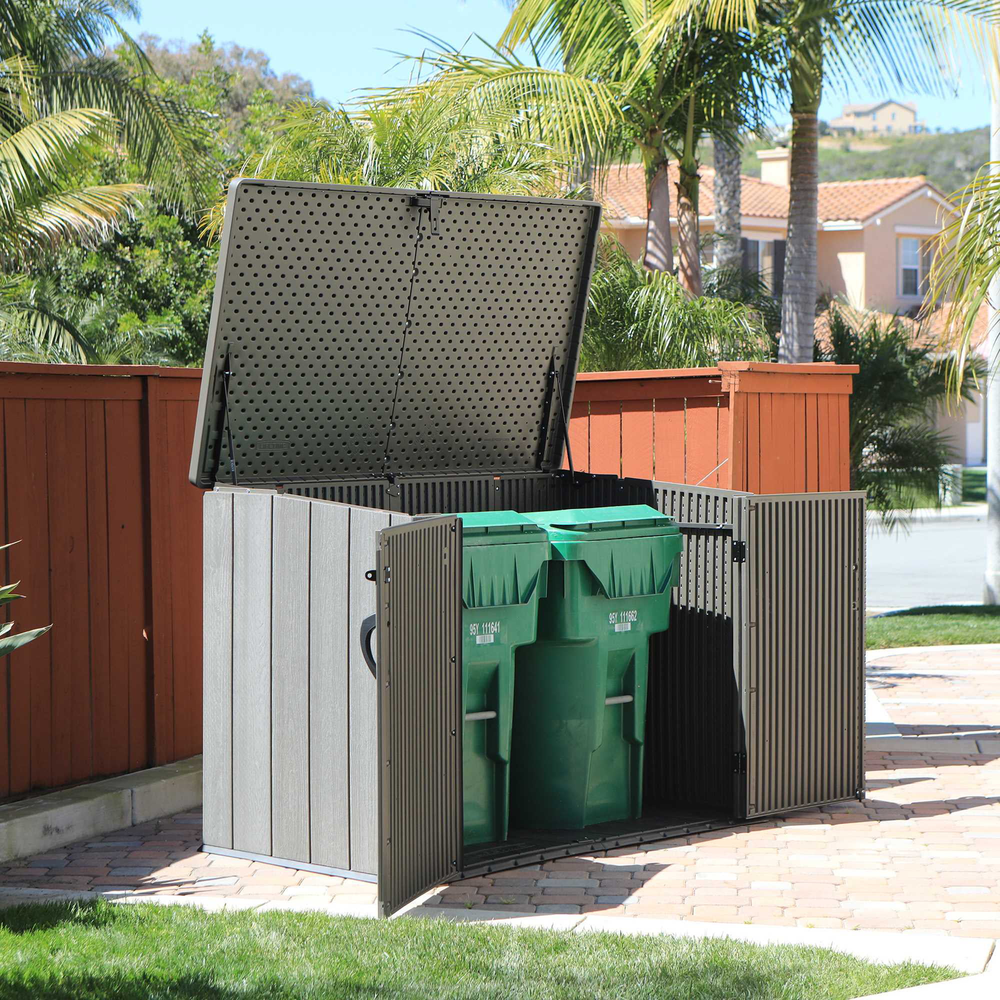 Lifetime 6.26 ft. x 3.5 ft. x 4.33 ft. Heavy Duty 75 cubic feet Vertical Plastic Storage Shed, Brown (60212)