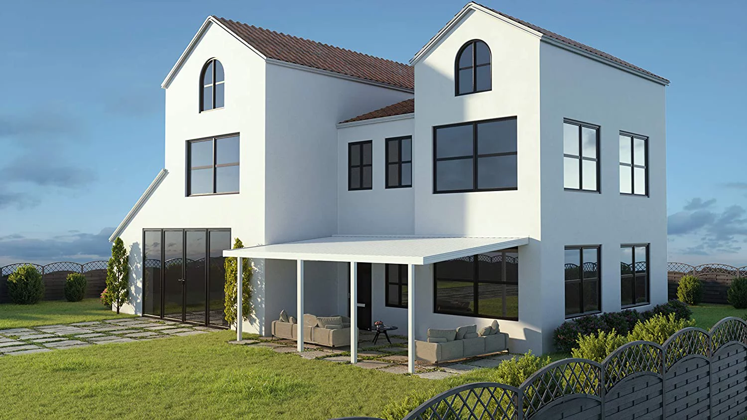 Four Seasons OLS Optima 22 ft wide x 12 ft deep Aluminum Patio Cover with 40lb Snowload & 4 Posts in White