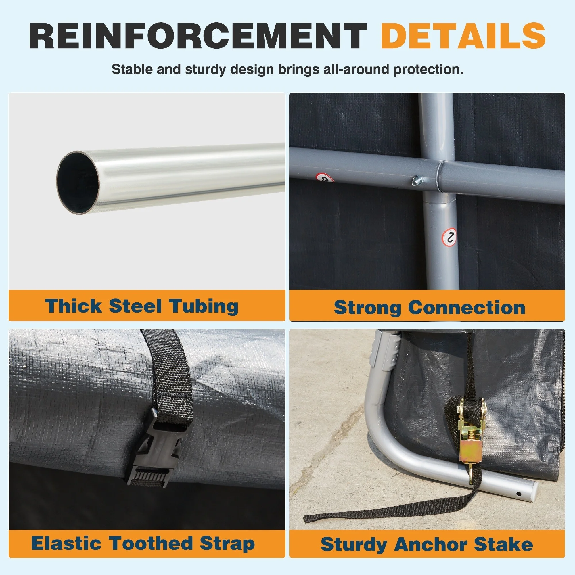 Erommy Portable Garage, Heavy Duty Carport with All-Steel Metal Frame and Round Style Roof 12' x 24' - Black
