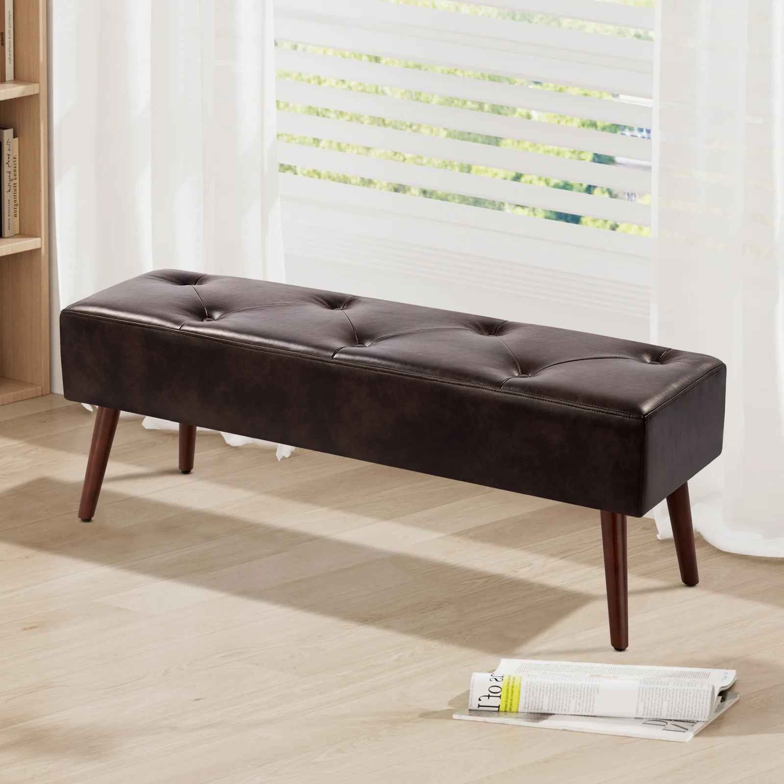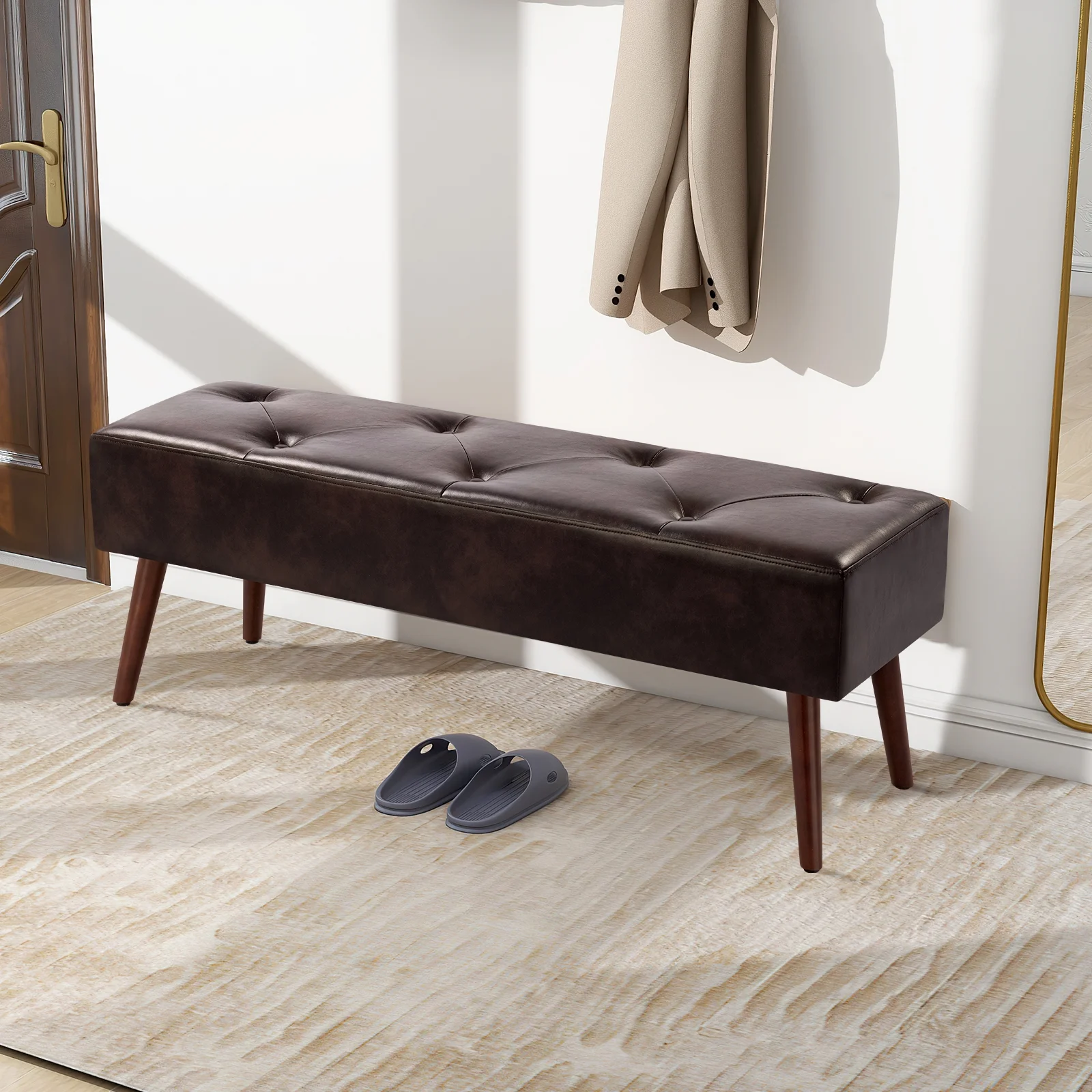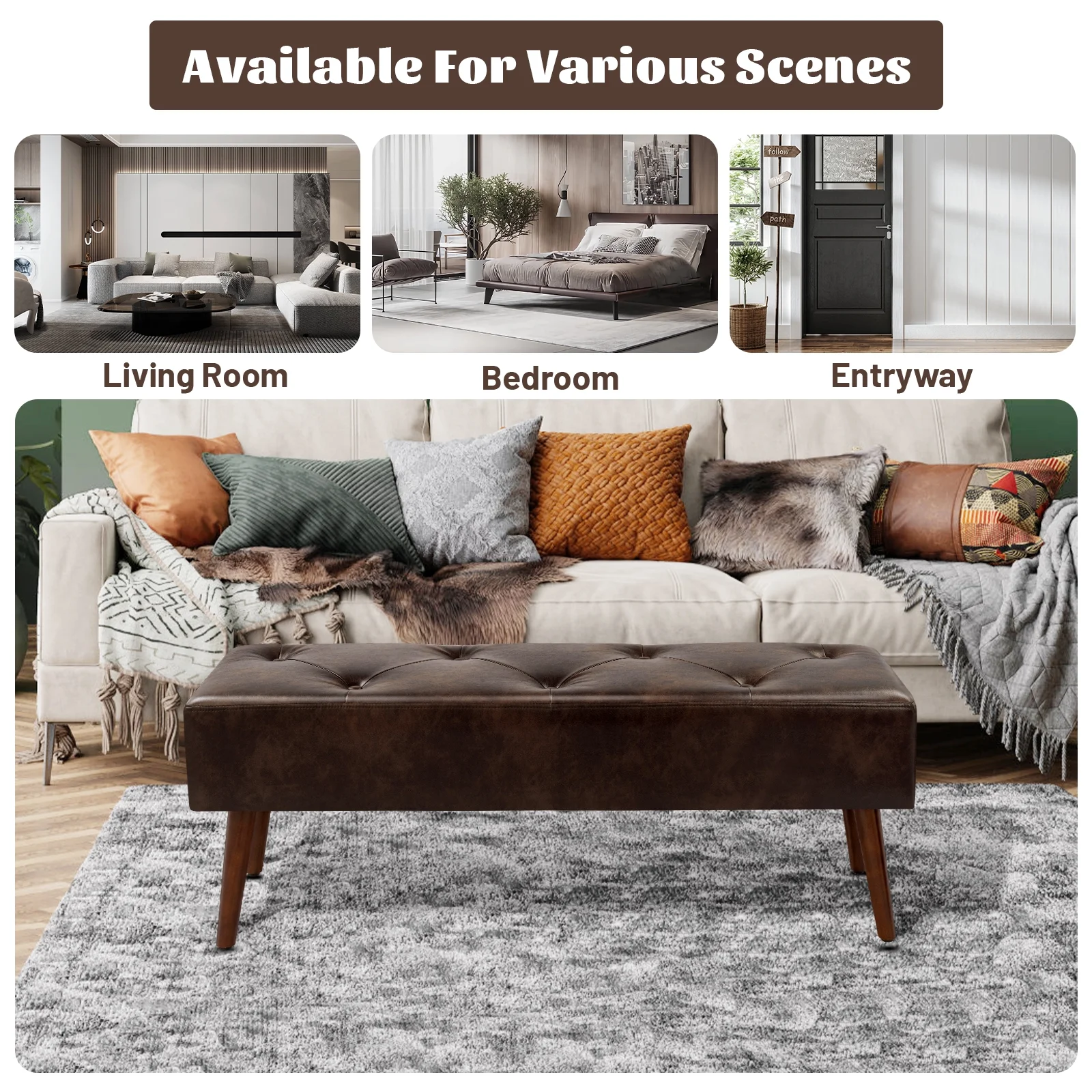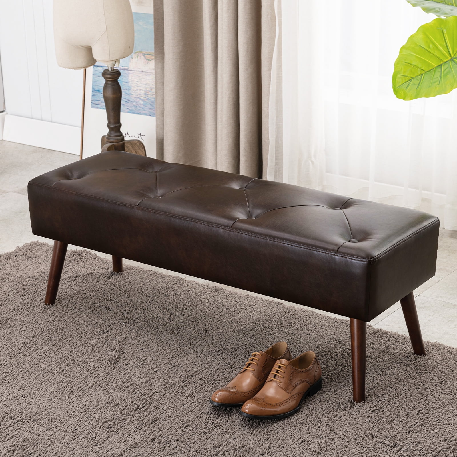 Furniliving Long Entryway Bench Frame Bedroom Ottoman Upholstered Bench,BlackBrown