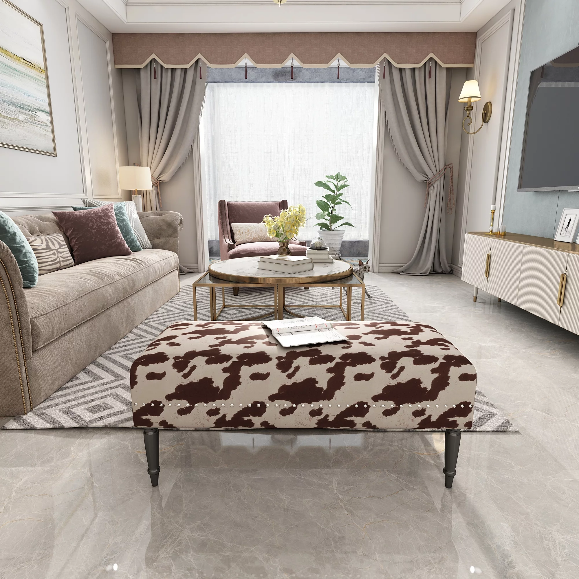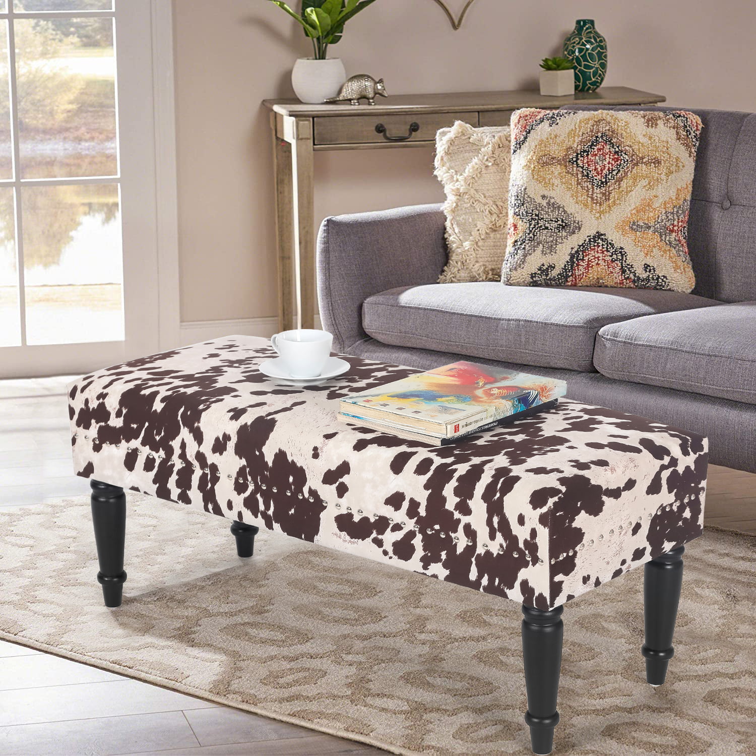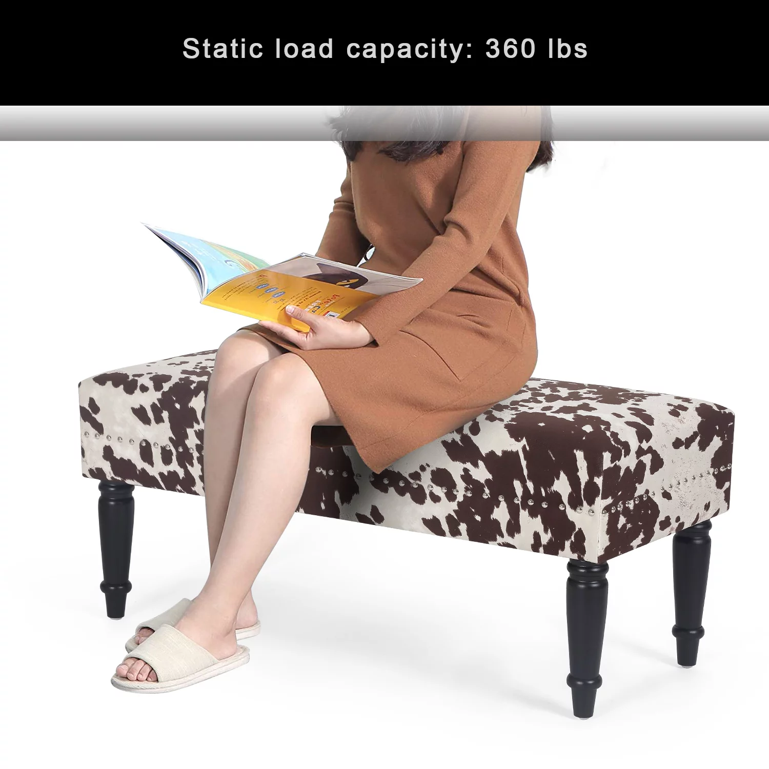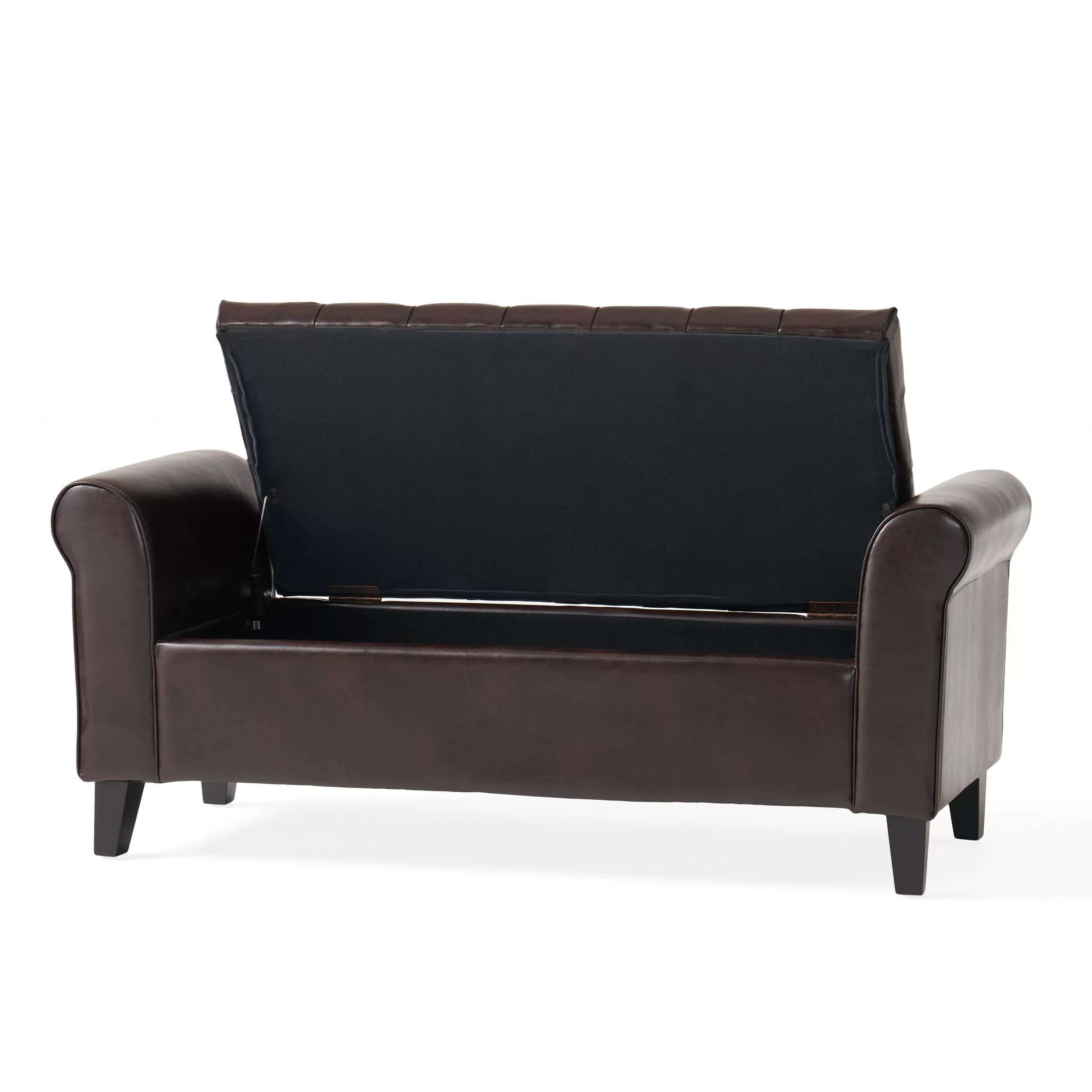 Furniliving Long Entryway Bench Frame Bedroom Ottoman Upholstered Bench,BlackBrown