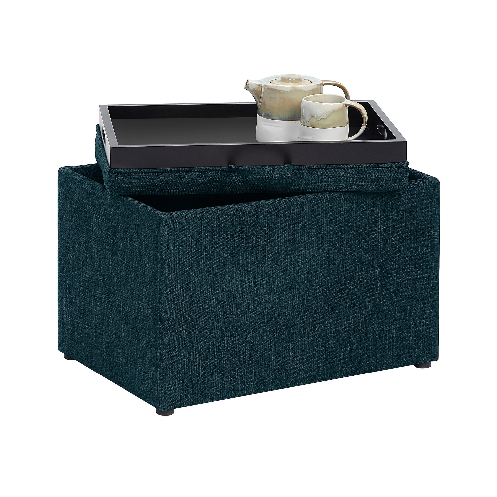 Convenience Concepts Designs4Comfort Accent Storage Ottoman with Reversible Tray, Dark Blue Fabric