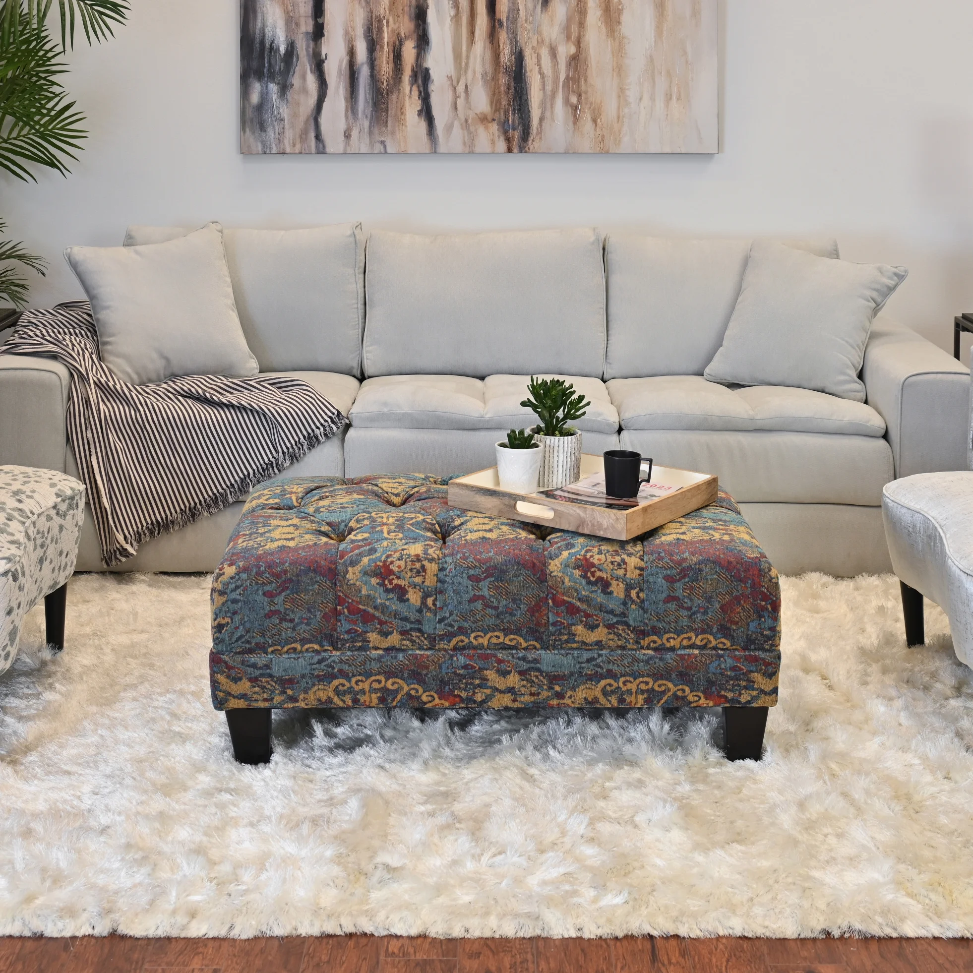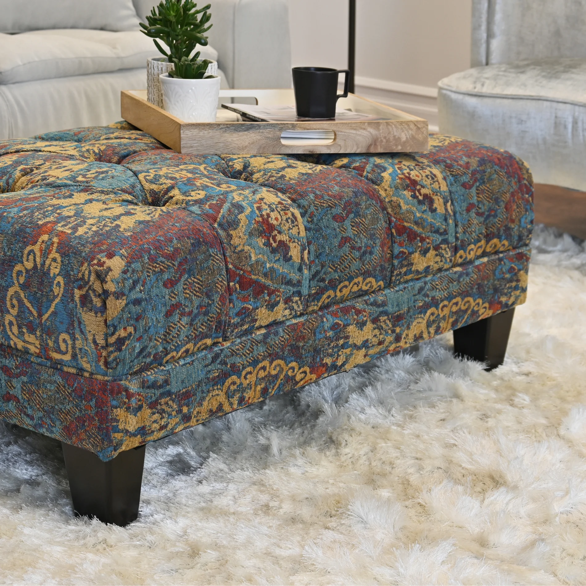 Roundhill Furniture Berliton Fabric Tufted Oversized Ottoman in Turkish Gemstone