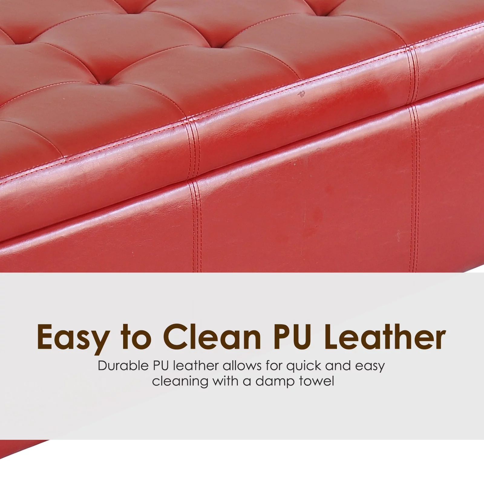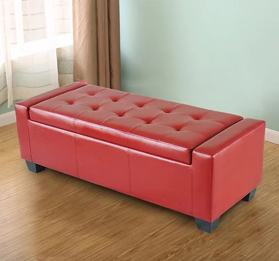 HomCom 51" Faux Leather Unique Tufted Storage Bench Ottoman - Bright Red