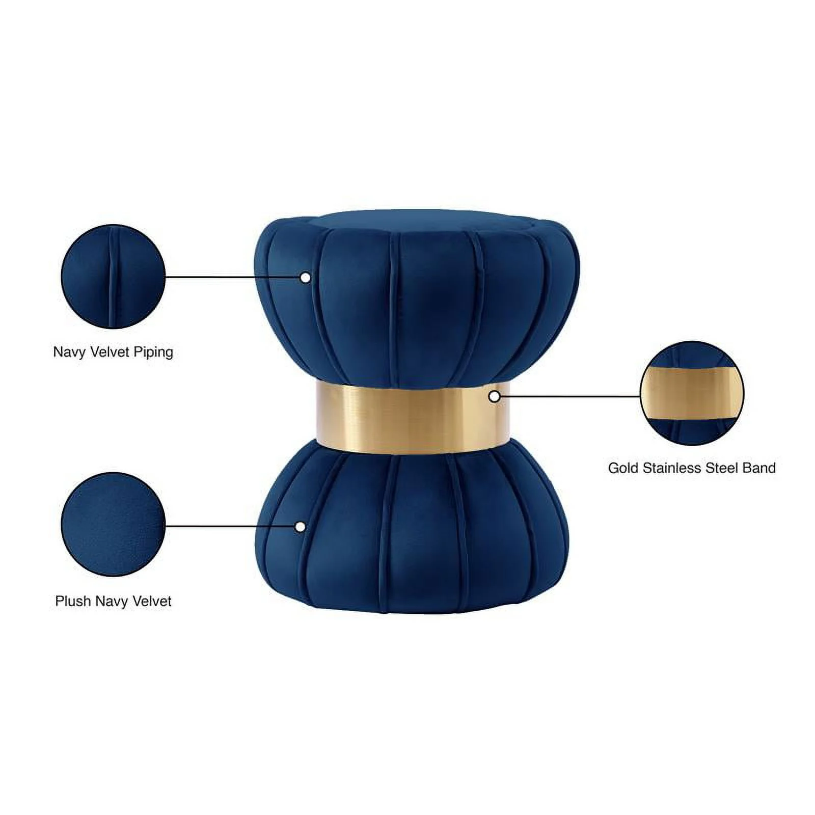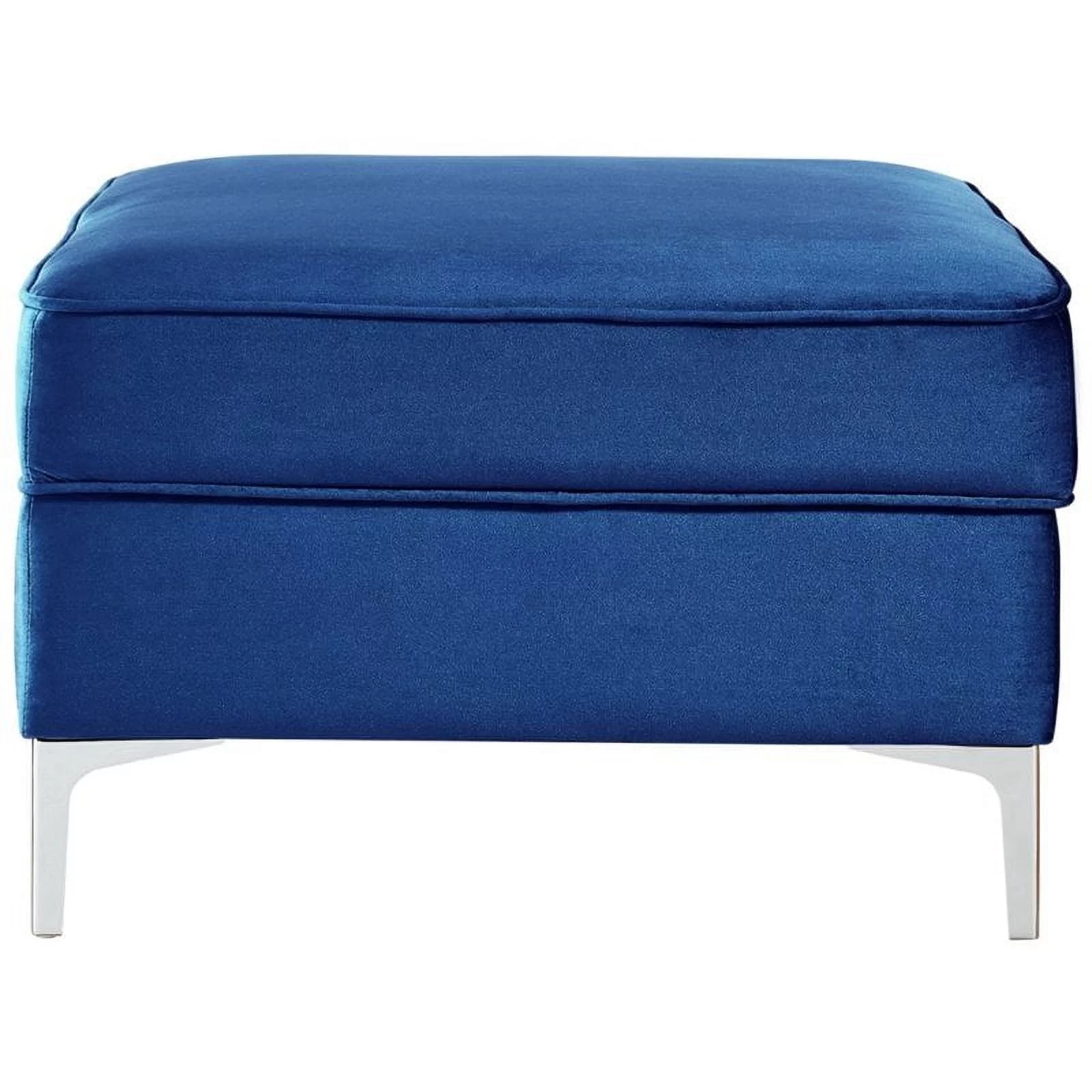 Posh Living Levi Tufted Velvet Storage Ottoman with Chrome Legs in Navy Blue