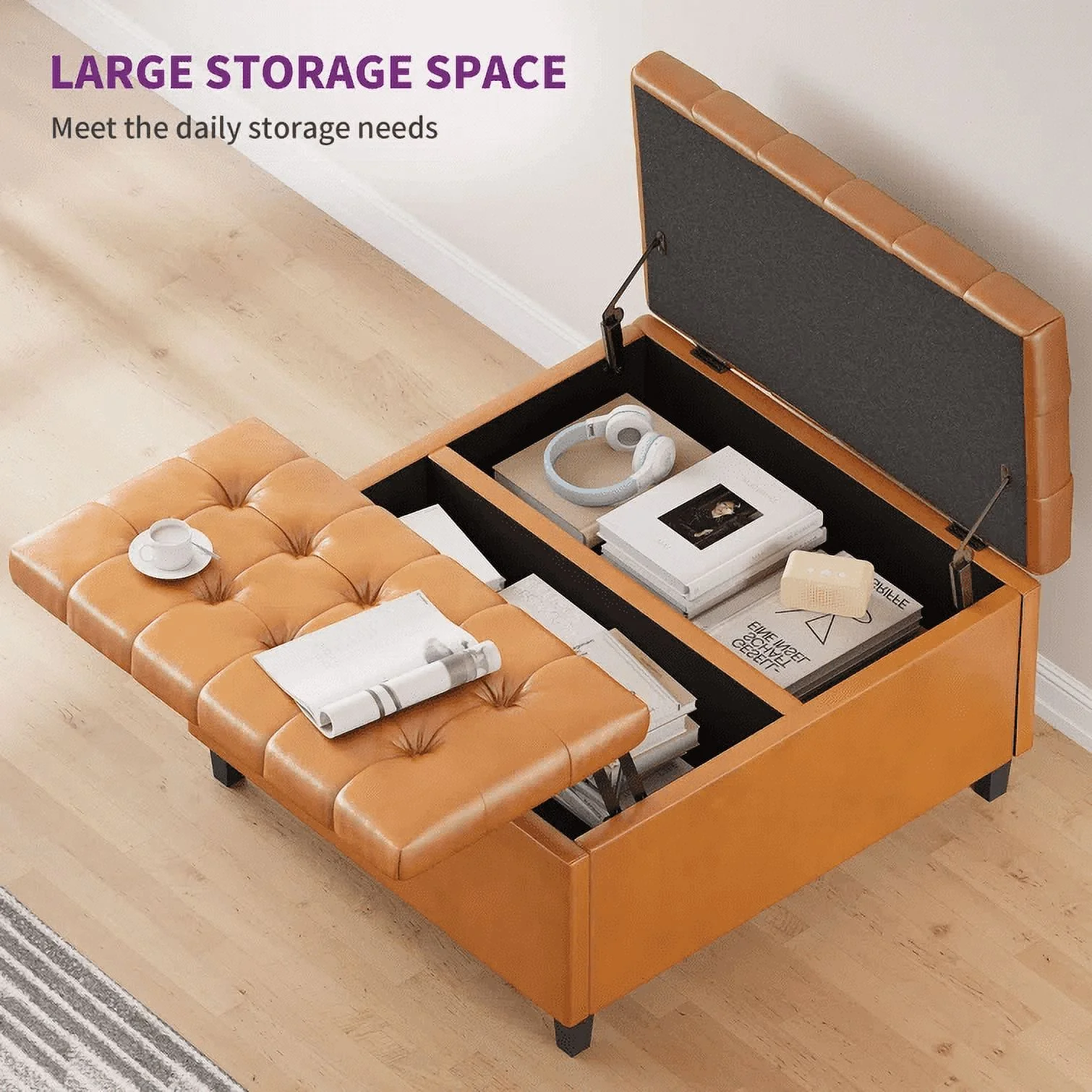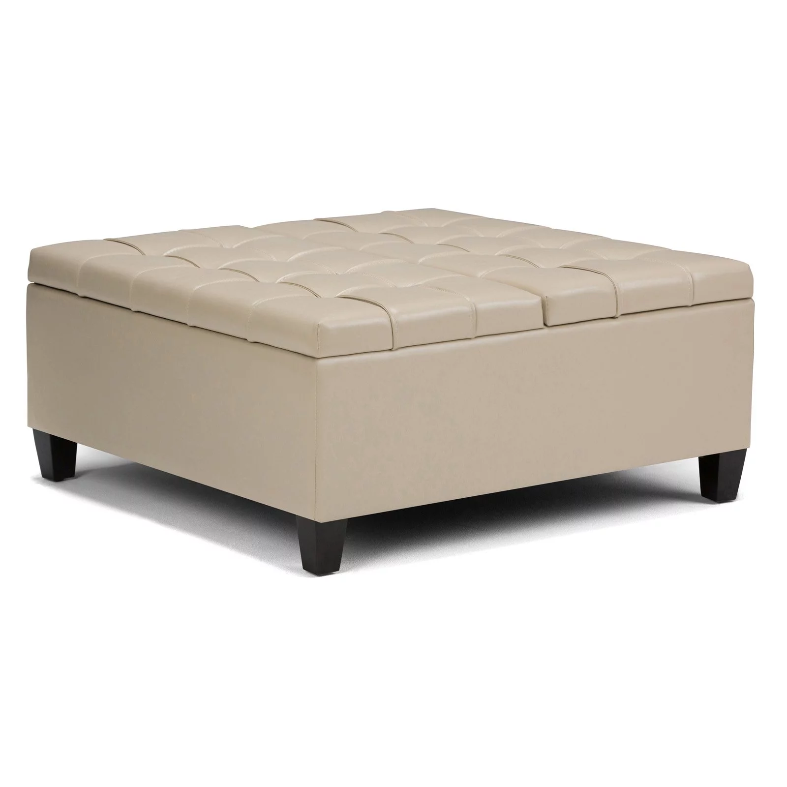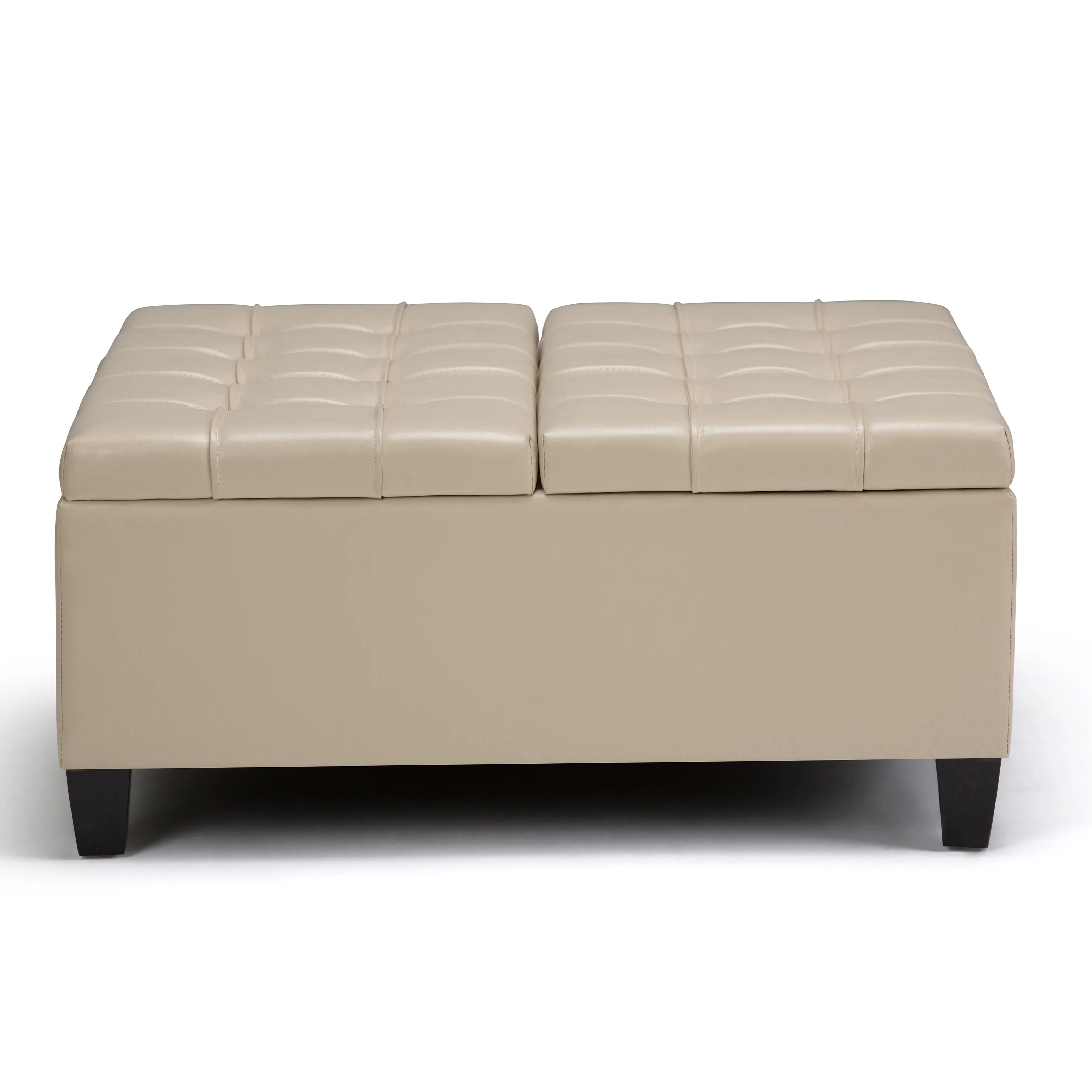 Dextrus 16.14''H Coffee Table Square Storage Ottoman, Brown Faux Leather