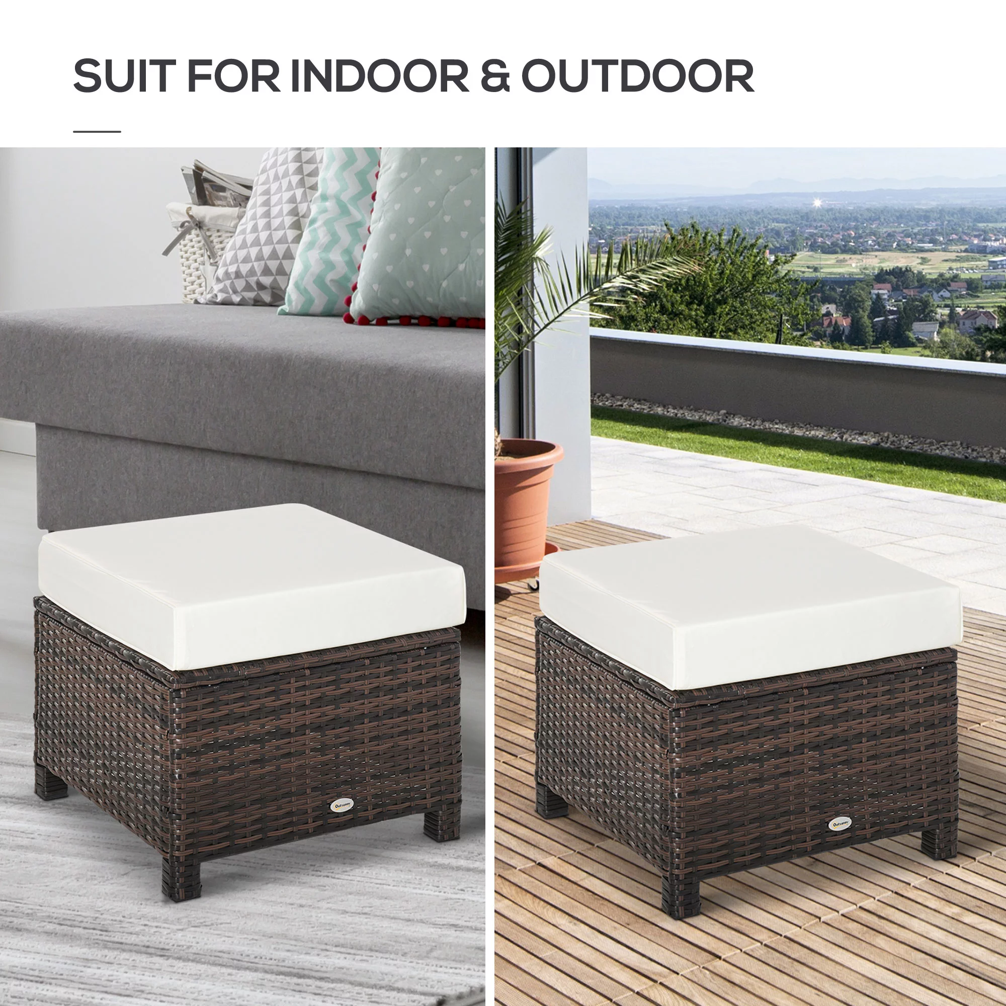 Homebeez Fabric Ottoman Square Footstool Padded Footrest Seat Sofa Footrest Extra Seating Orange