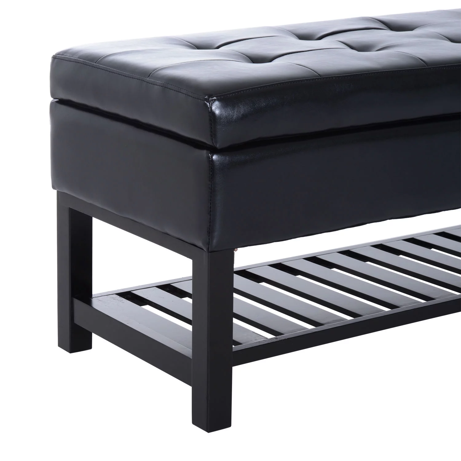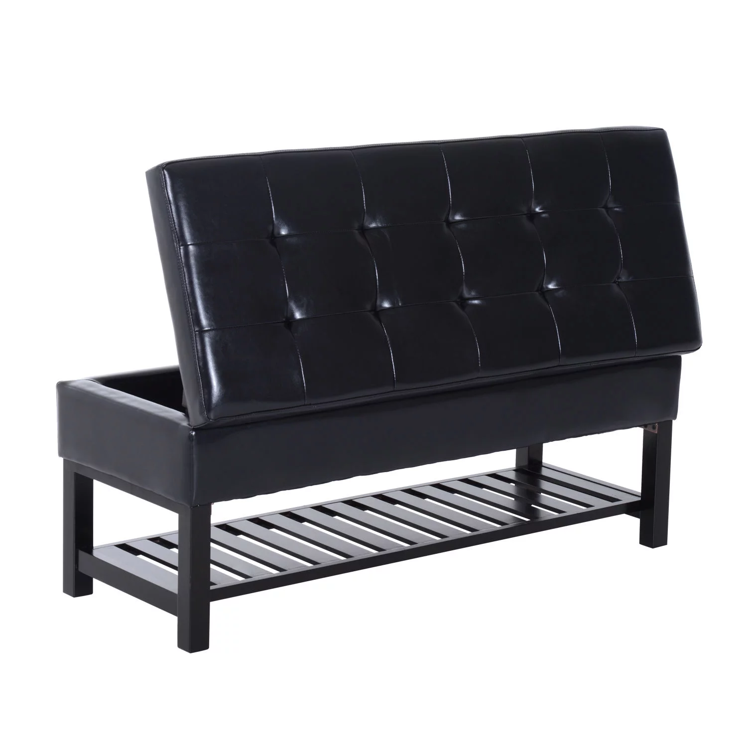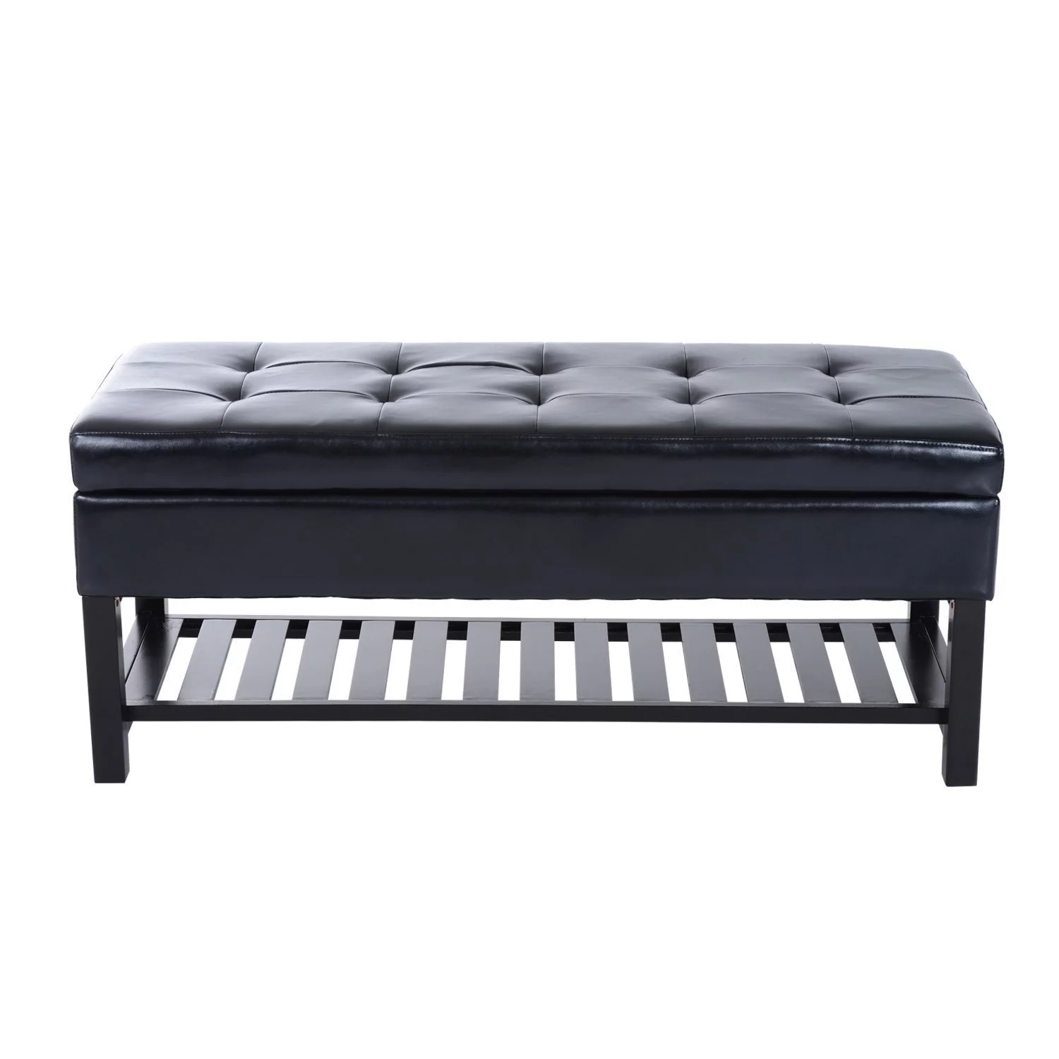 HomCom 44" Tufted Faux Leather Ottoman Storage Bench With Shoe Rack - Black