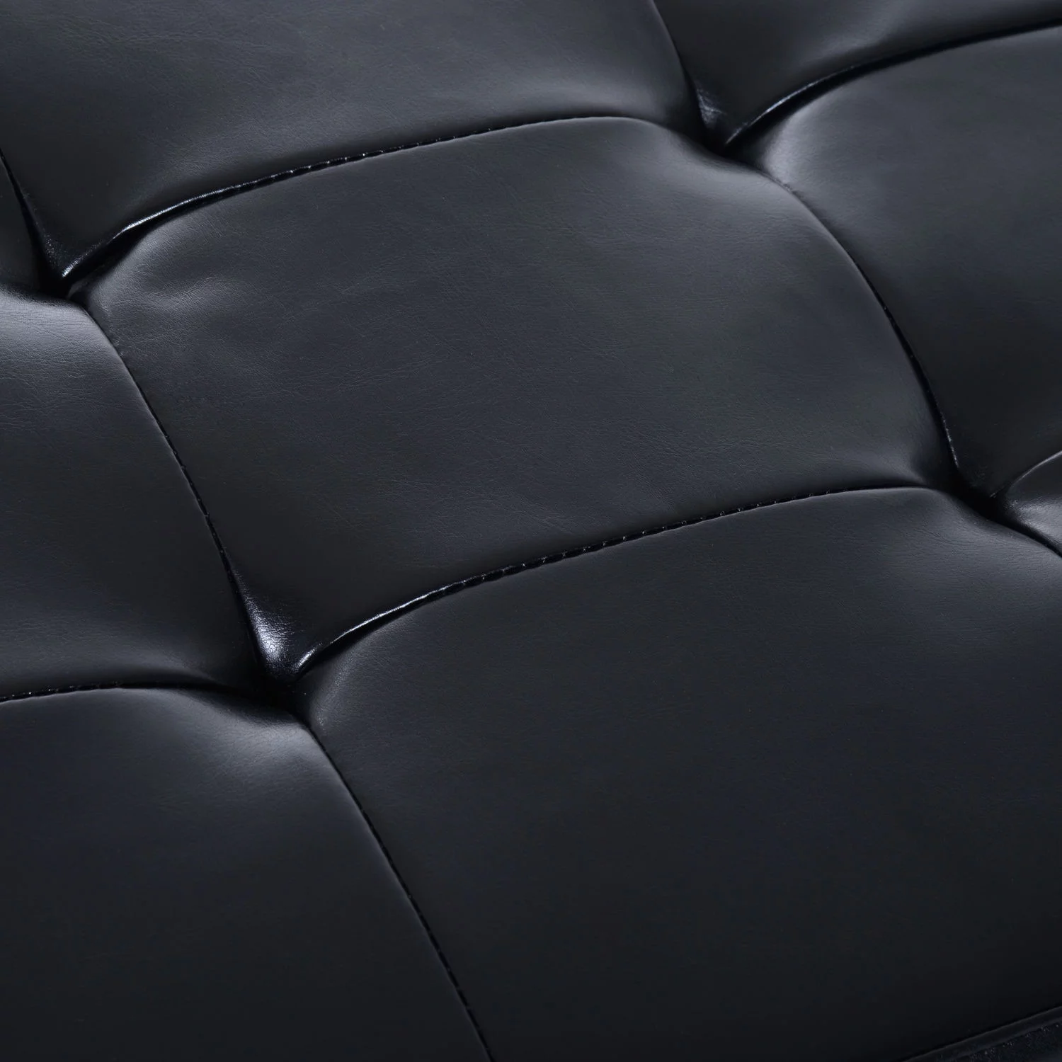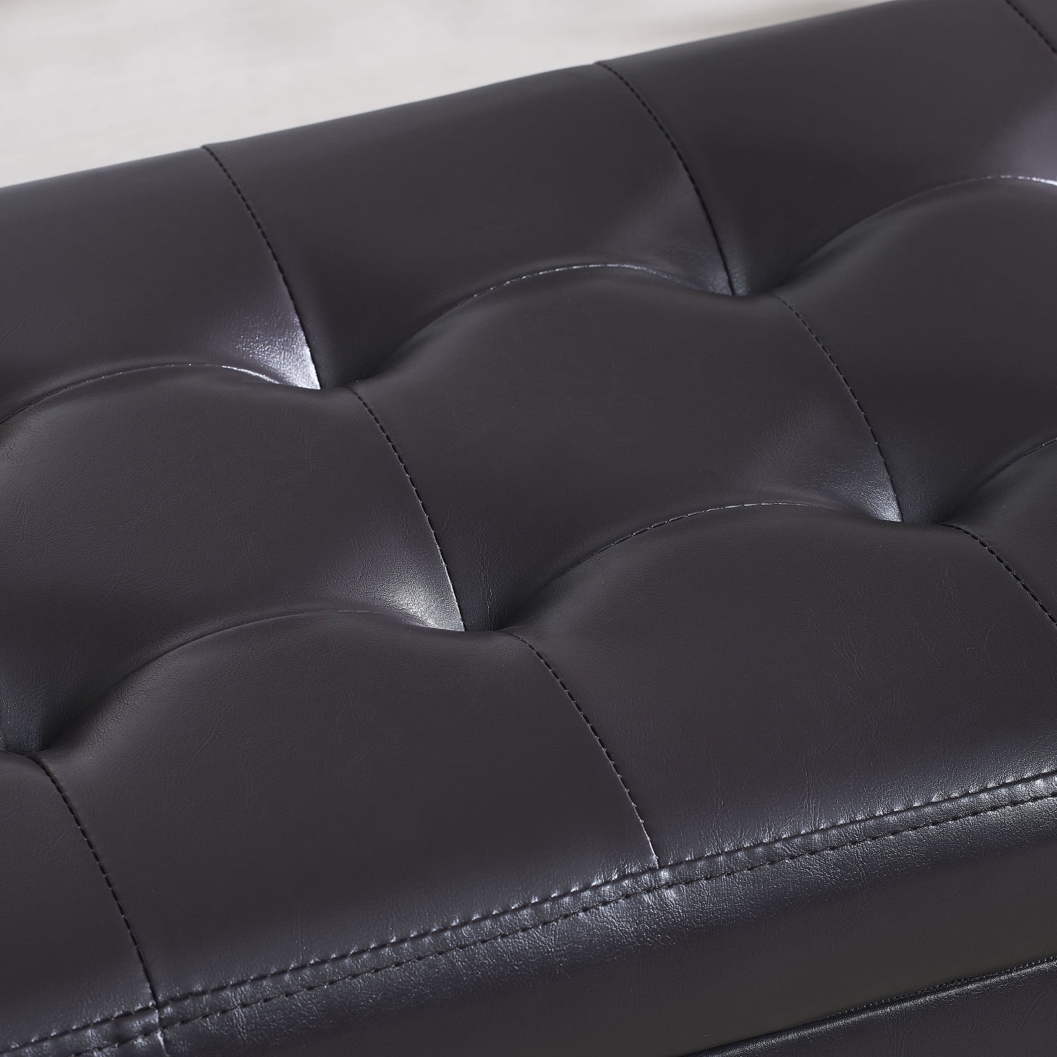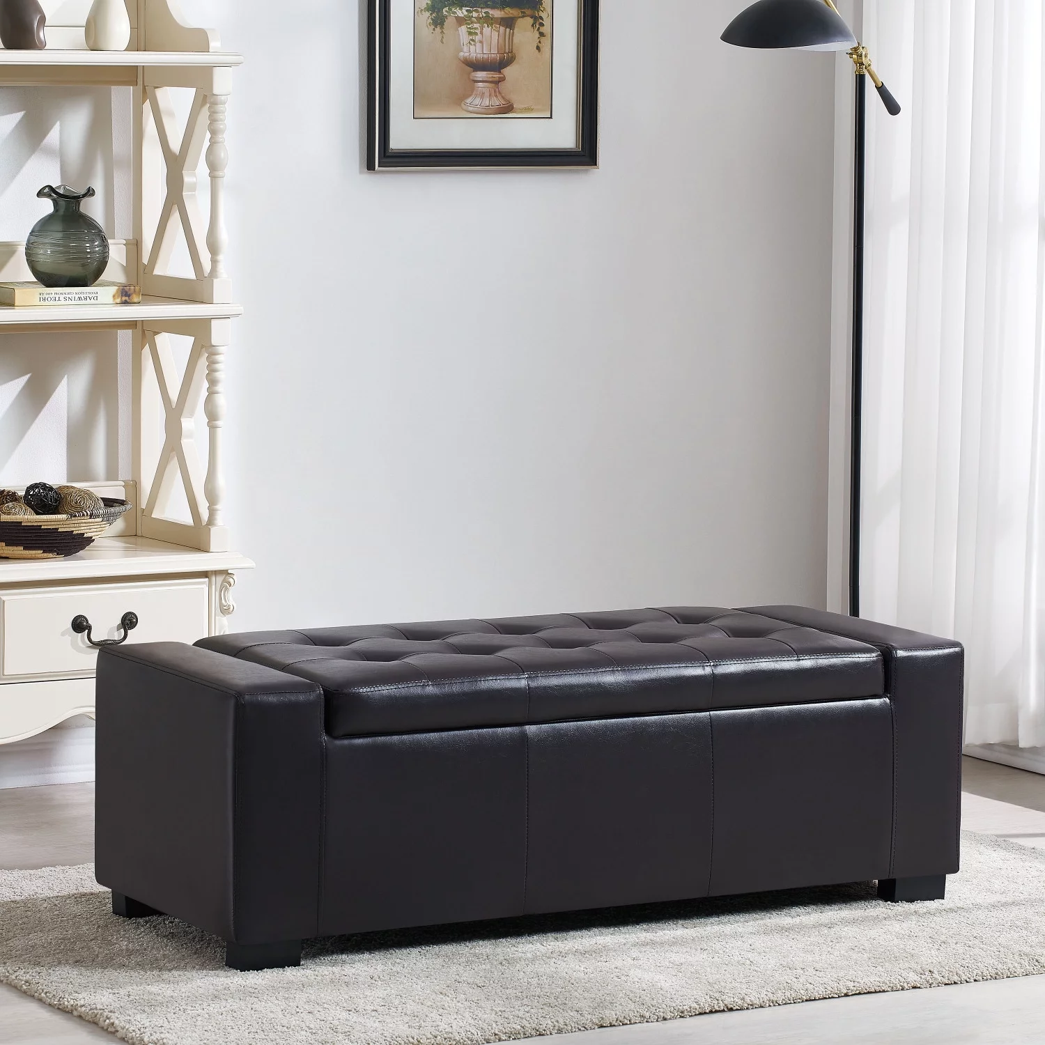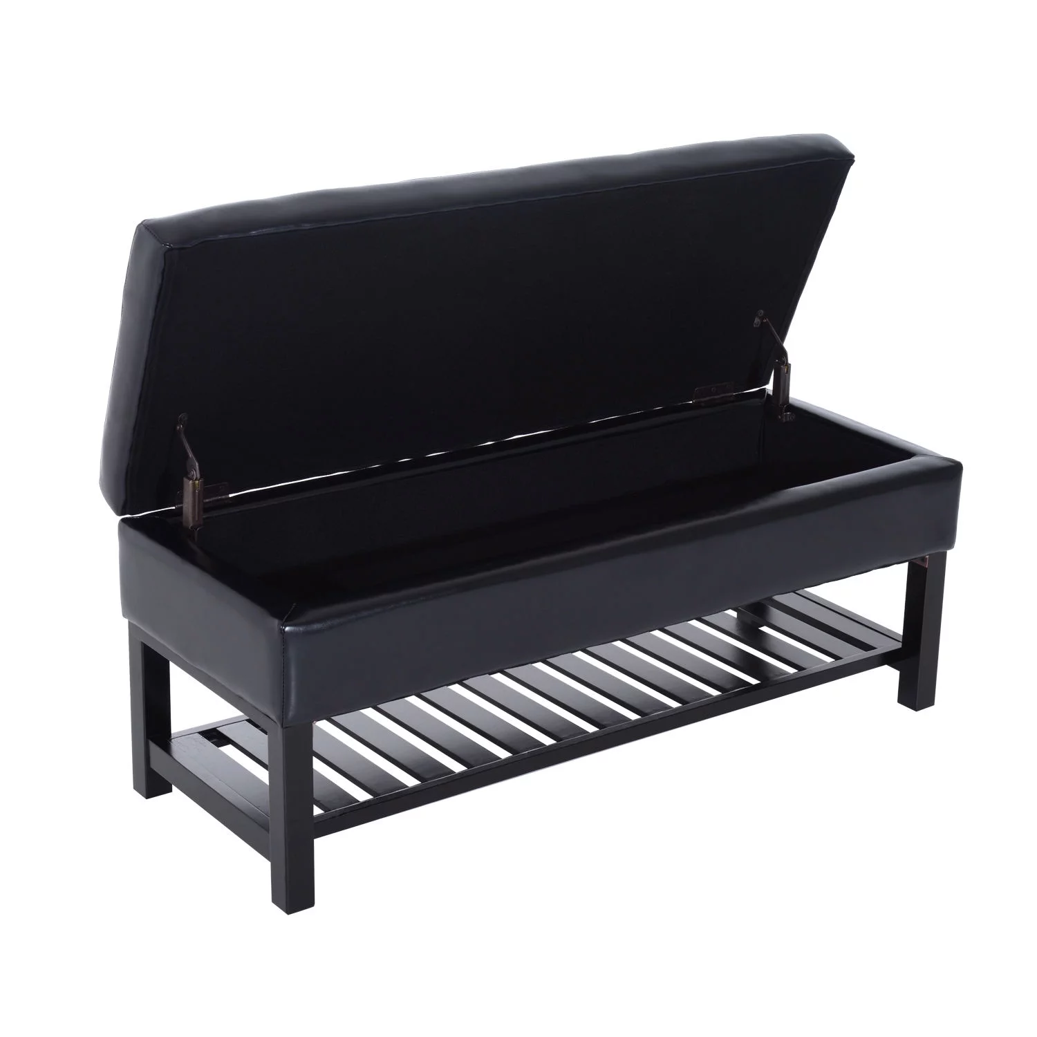 HomCom 44" Tufted Faux Leather Ottoman Storage Bench With Shoe Rack - Black