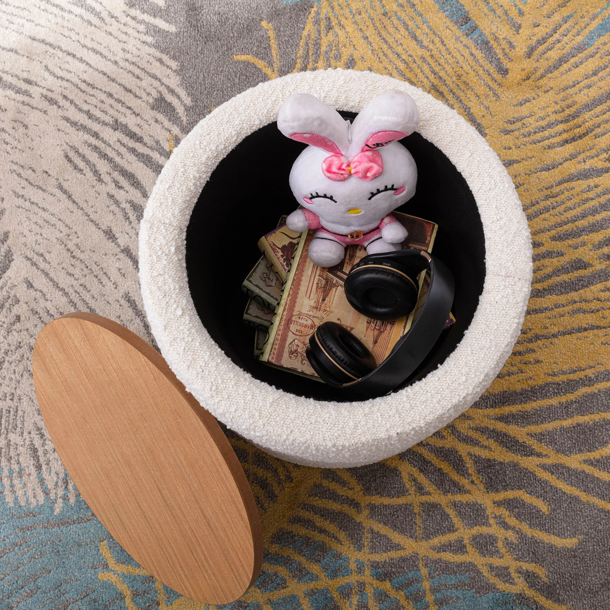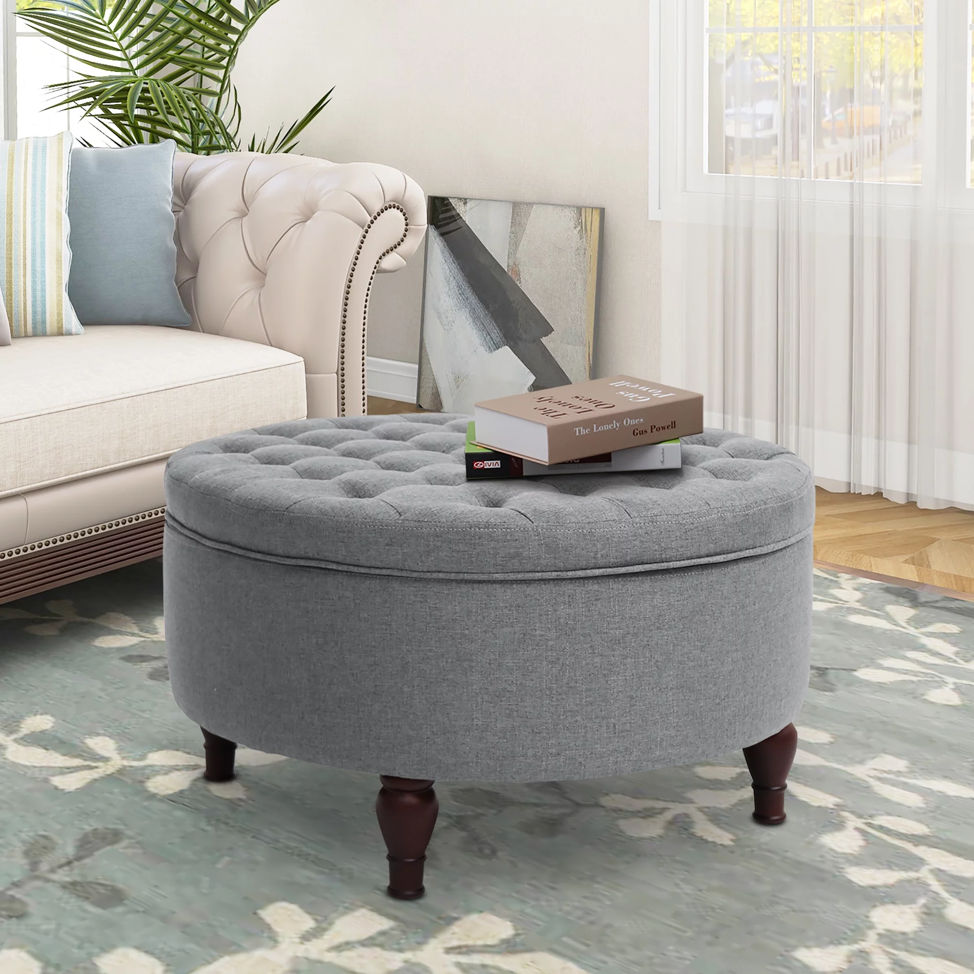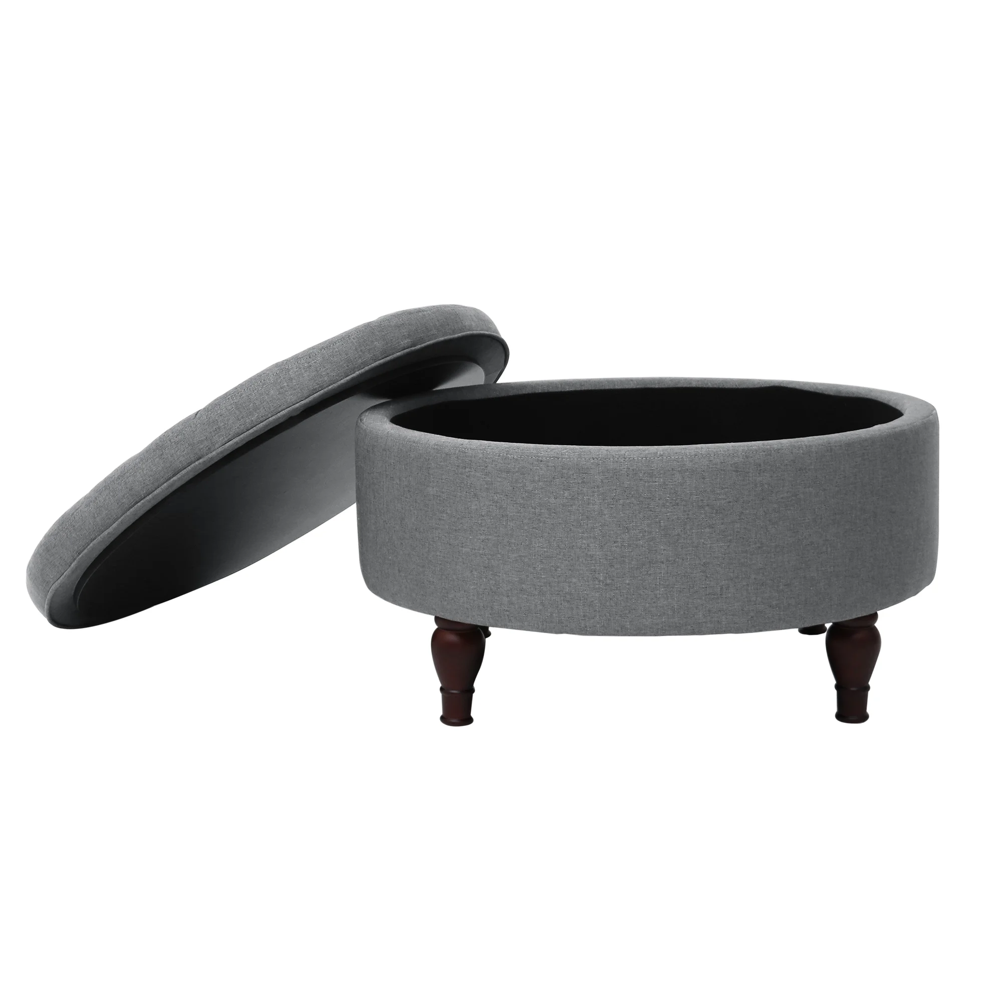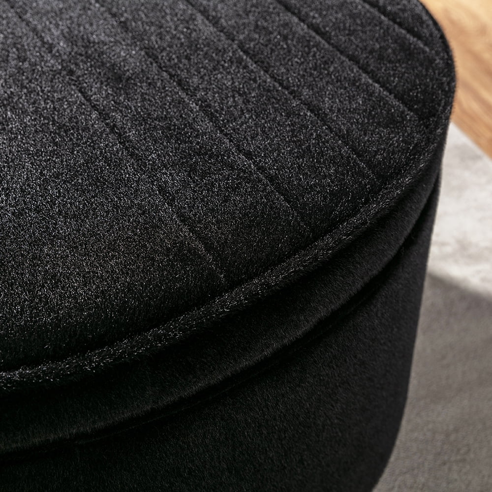 Homebeez Round Storage Ottoman Button Tufted Footrest Stool Coffee Table Children Sofa Stool,Black
