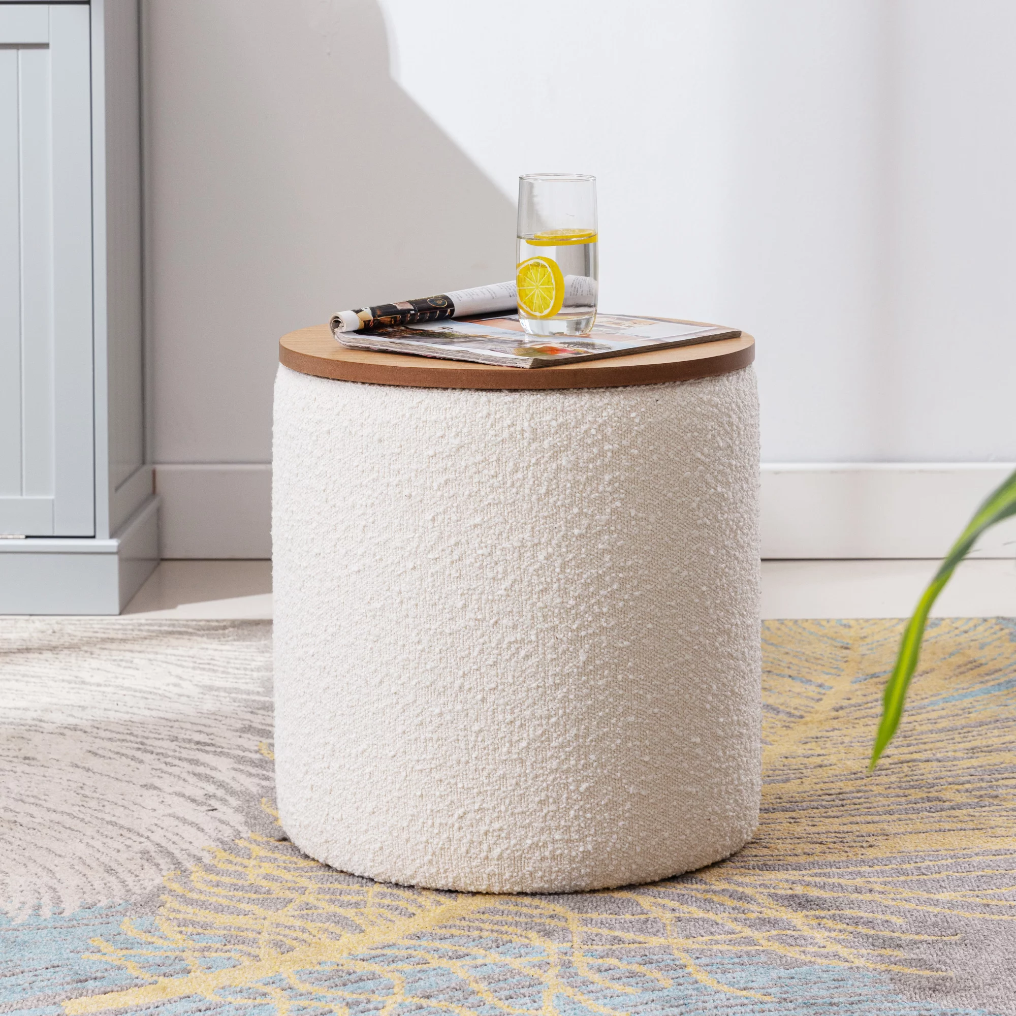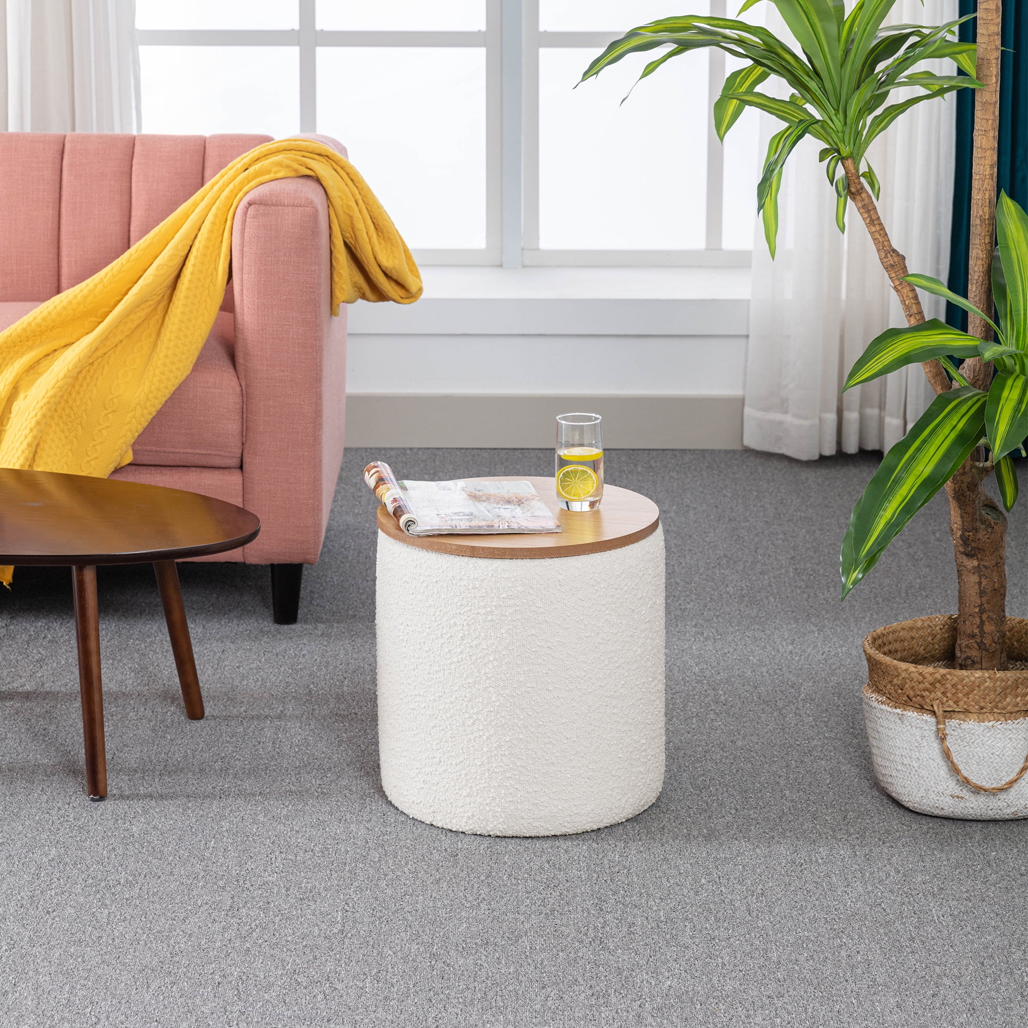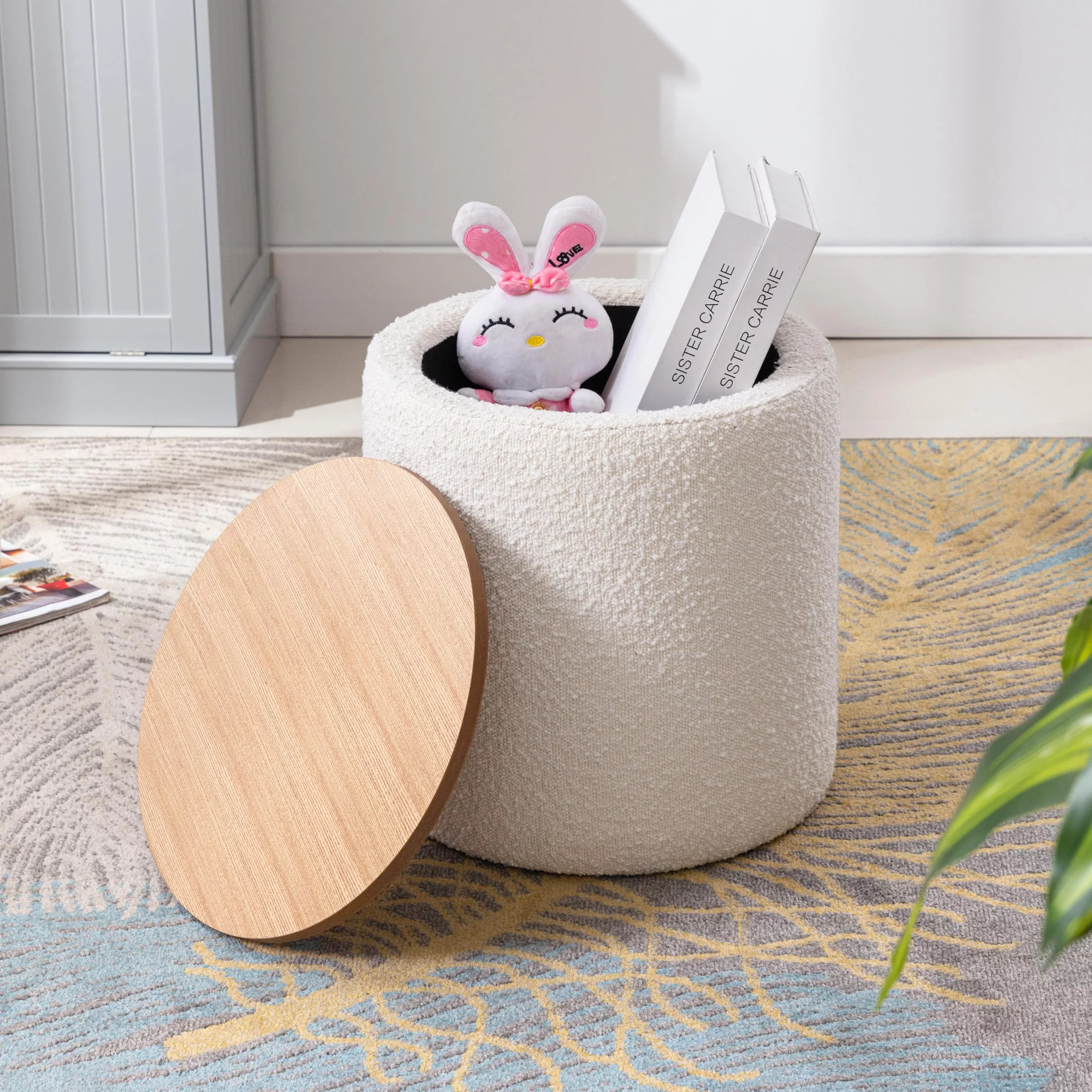 Homebeez Round Storage Ottoman Button Tufted Footrest Stool Coffee Table Children Sofa Stool,Black